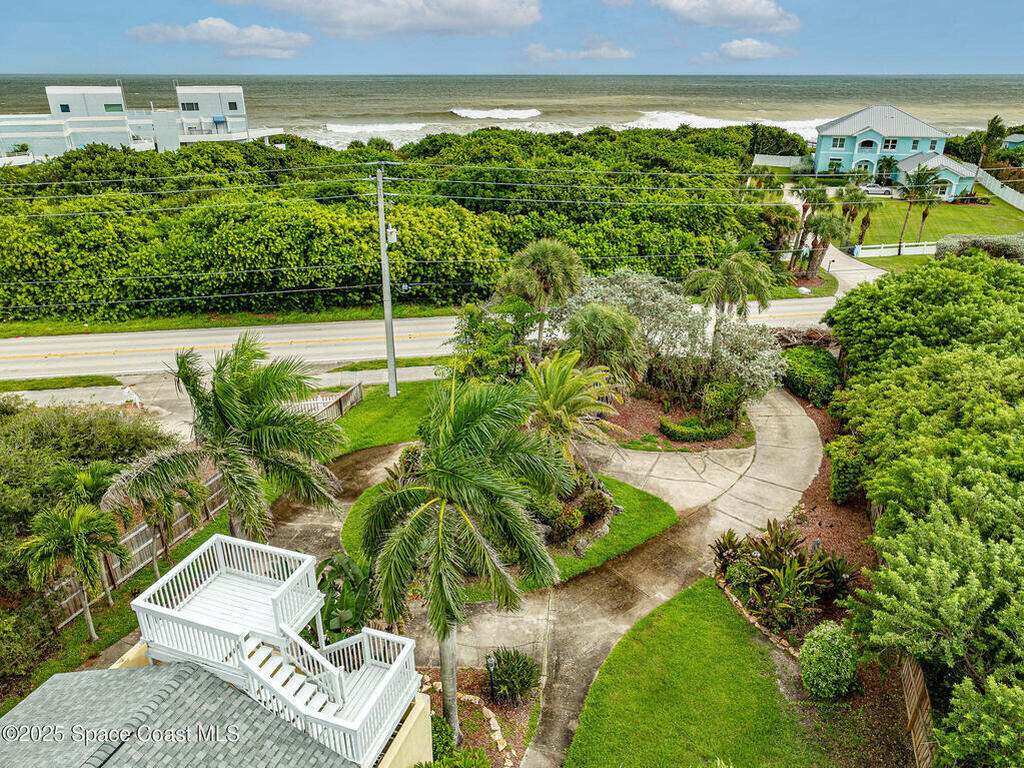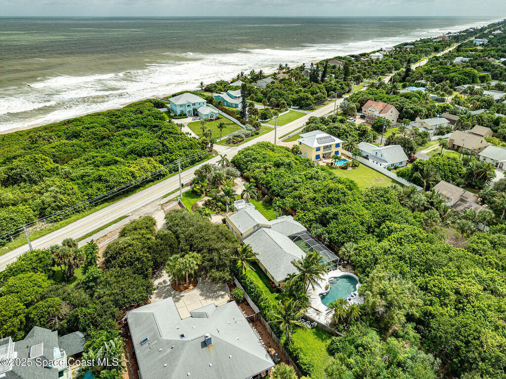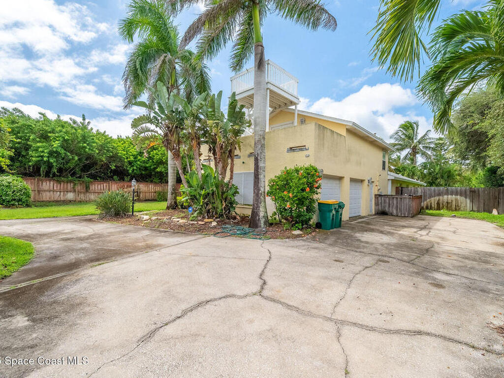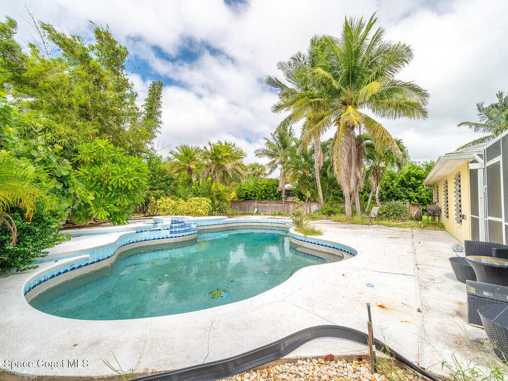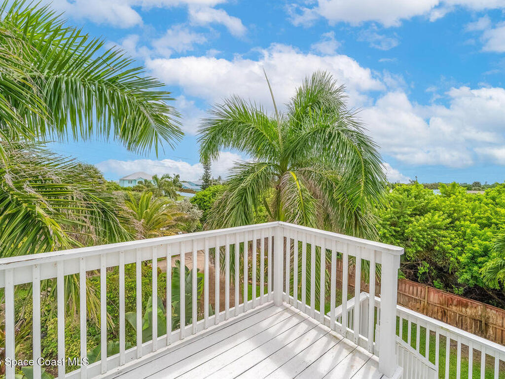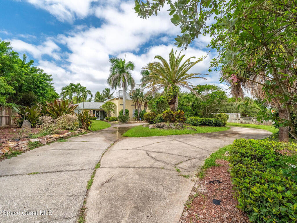 Steps from the Ocean--Bring Your Vision! This one-of-a-kind beachside property is a rare investment opportunity! Just steps from public beach access, this 4-bedroom, 3-bath home sits on nearly a half-acre (.47) lot with NO HOA, lush tropical landscaping for privacy. The open kitchen, dining, and great room layout offers excellent potential, while the crow's nest captures partial ocean view and stunning sunsets. Three bedrooms are on the first floor, including a separated guest/mother-in-law suite with lanai access. The oversized screened lanai features a built-in spa, and just beyond, a large pool with fenced yard. Upstairs, the spacious loft bedroom boasts extra closet space for all your storage needs. Whether you're an investor or a buyer with a vision, this home offers rare potential in a prime beachside location. Don't miss the chance to reimagine this property and make it your own!