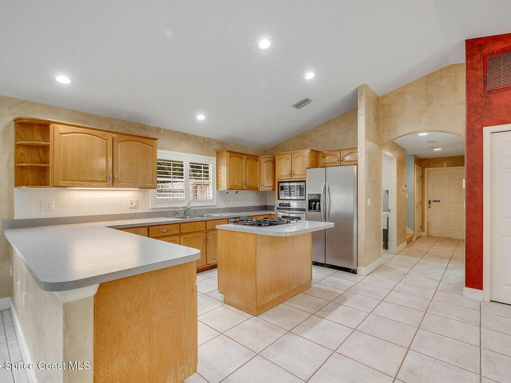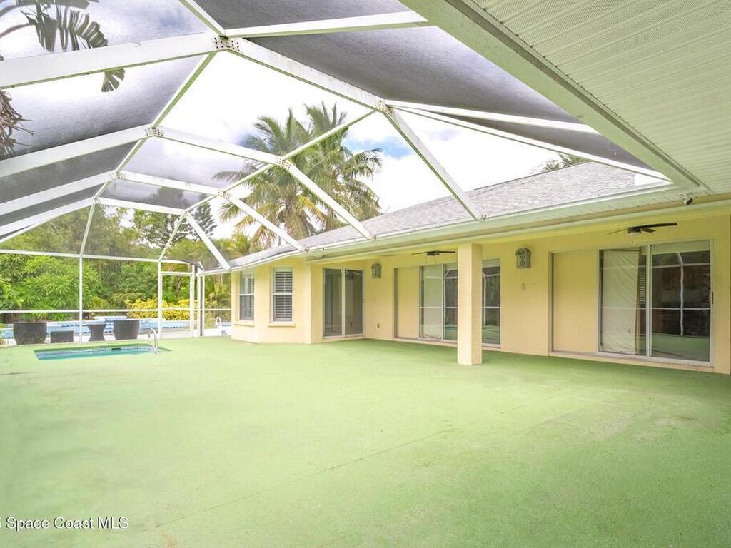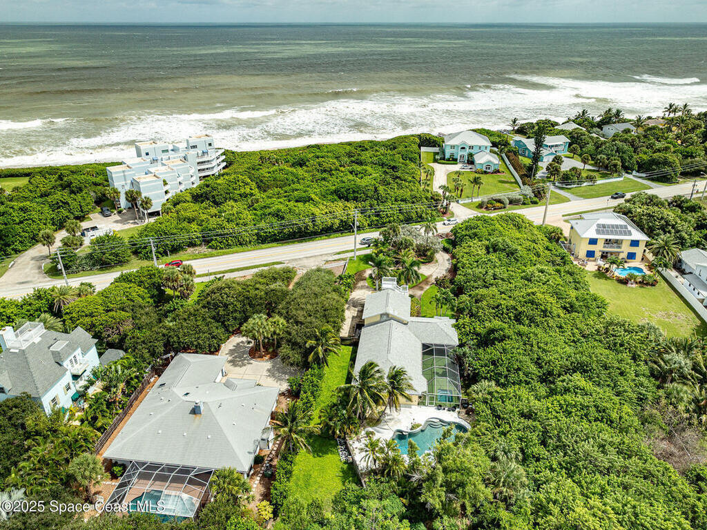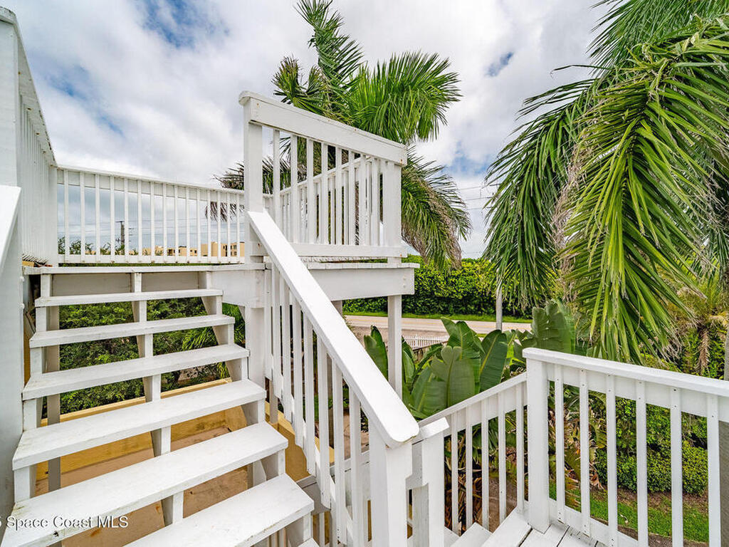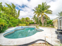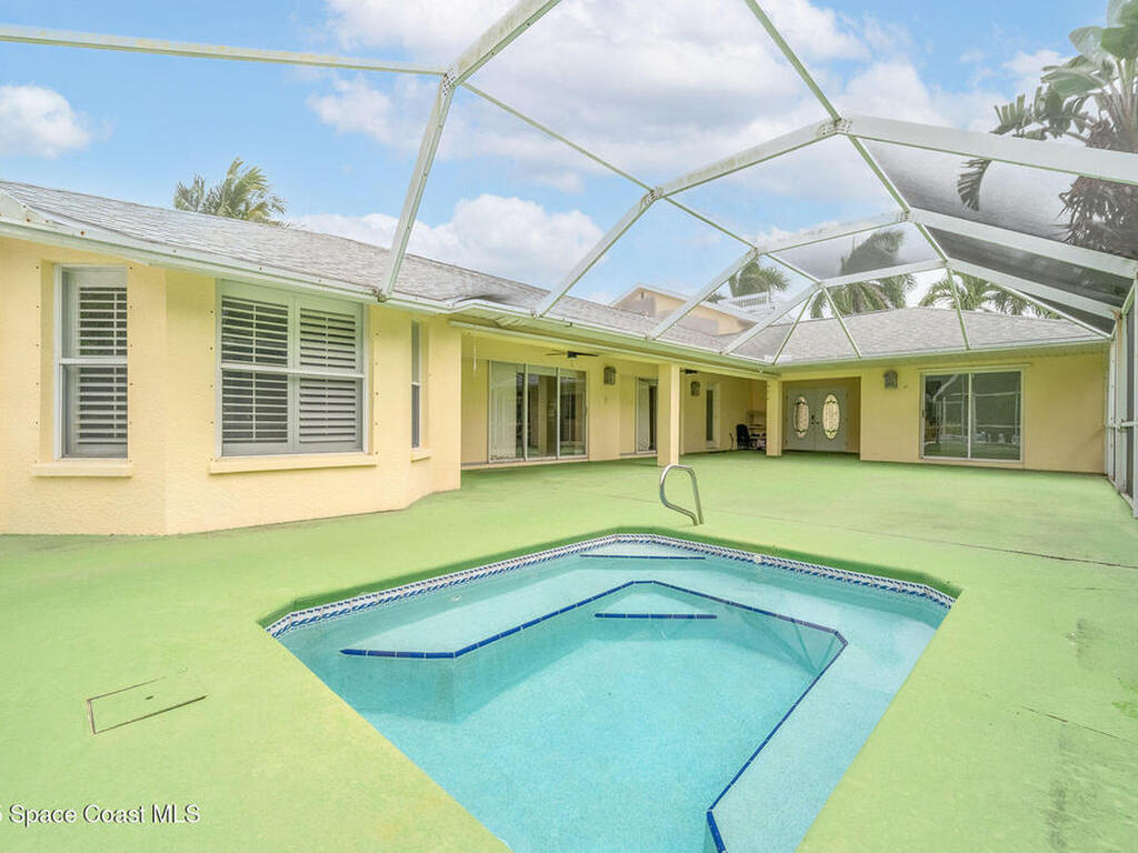 Steps from the Ocean--Bring Your Vision! This one-of-a-kind beachside property is a rare investment opportunity! Just steps from public beach access, this 4-bedroom, 3-bath home sits on nearly a half-acre (.47) lot with NO HOA, lush tropical landscaping for privacy. The open kitchen, dining, and great room layout offers excellent potential, while the crow's nest captures partial ocean view and stunning sunsets. Three bedrooms are on the first floor, including a separated guest/mother-in-law suite with lanai access. The oversized screened lanai features a built-in spa, and just beyond, a large pool with fenced yard. Upstairs, the spacious loft bedroom boasts extra closet space for all your storage needs. Whether you're an investor or a buyer with a vision, this home offers rare potential in a prime beachside location. Don't miss the chance to reimagine this property and make it your own!