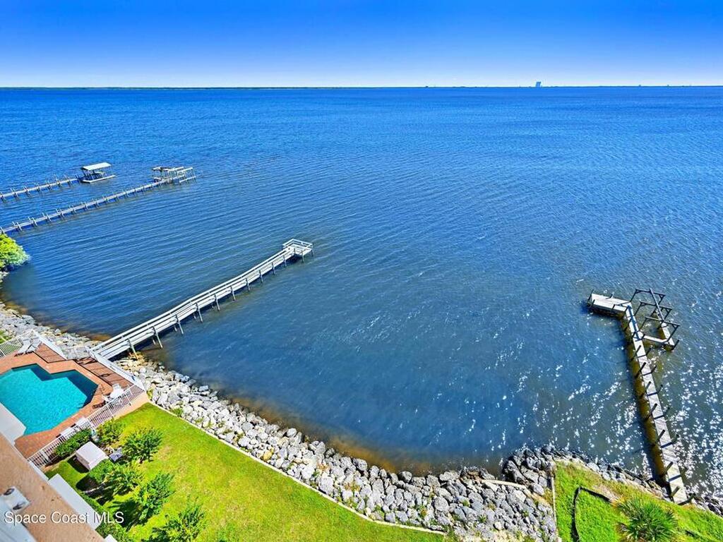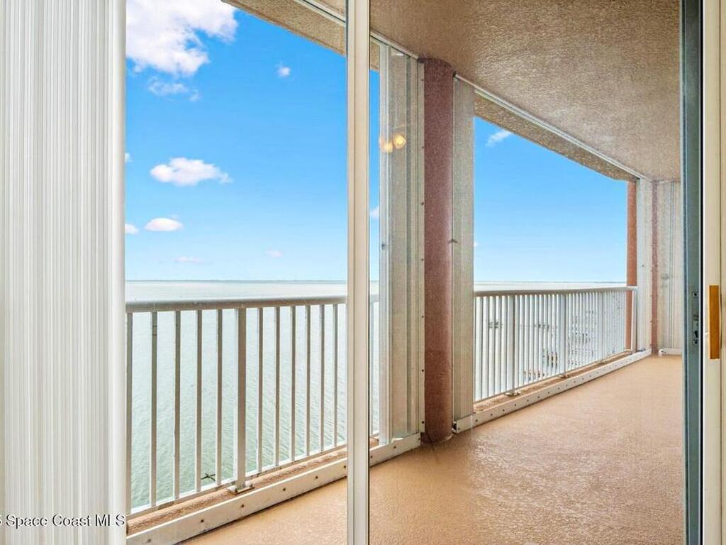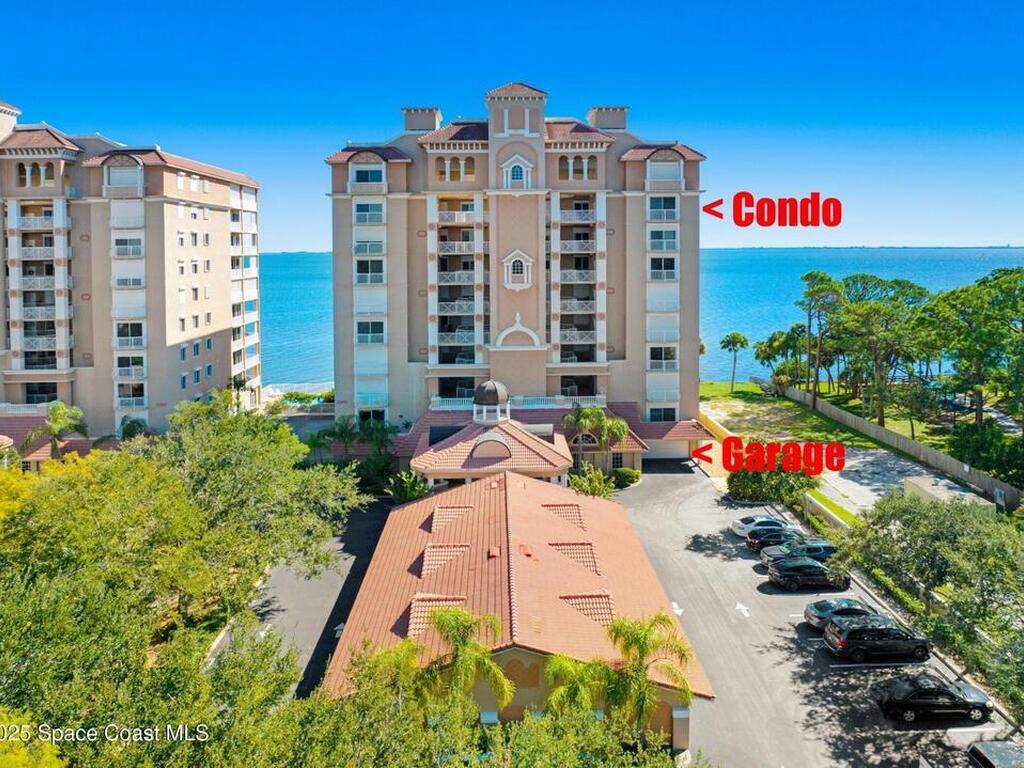 Over 3000 sq ft of living space! Unobstructed panoramic views East, South and West from every room of this 9th floor condo! 9 ft Ceilings! Water views from the living room, master bedroom, dining room, kitchen and Family Room! Large kitchen with Island and breakfast nook. New Stainless Steel double oven, microwave and dishwasher. Newer Fridge. 3 spacious bedrooms each with its own full bathroom! Large Primary Suite with views of the Indian River! Primary Bathroom with 2 vanities, Shower, Jetted Tub and linen closet! 2 walk-in Primary Closets! Half bathroom for guests in hallway. Large laundry room with utility sink and storage cabinets. Flex room at entry use as an office or Convert to a 4th Bedroom! Largest floor plan offered in the complex! 1 Car garage in the front of the building included! 2 new (2024) a/c units with UV Light and Smart Thermostat. Large Covered balcony to view SpaceX, Blue Origin and ULA rocket launches! Directly across from Kennedy Space Center and VAB Building.