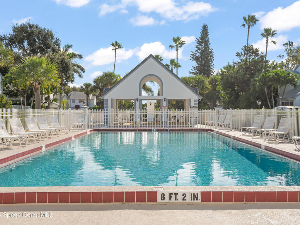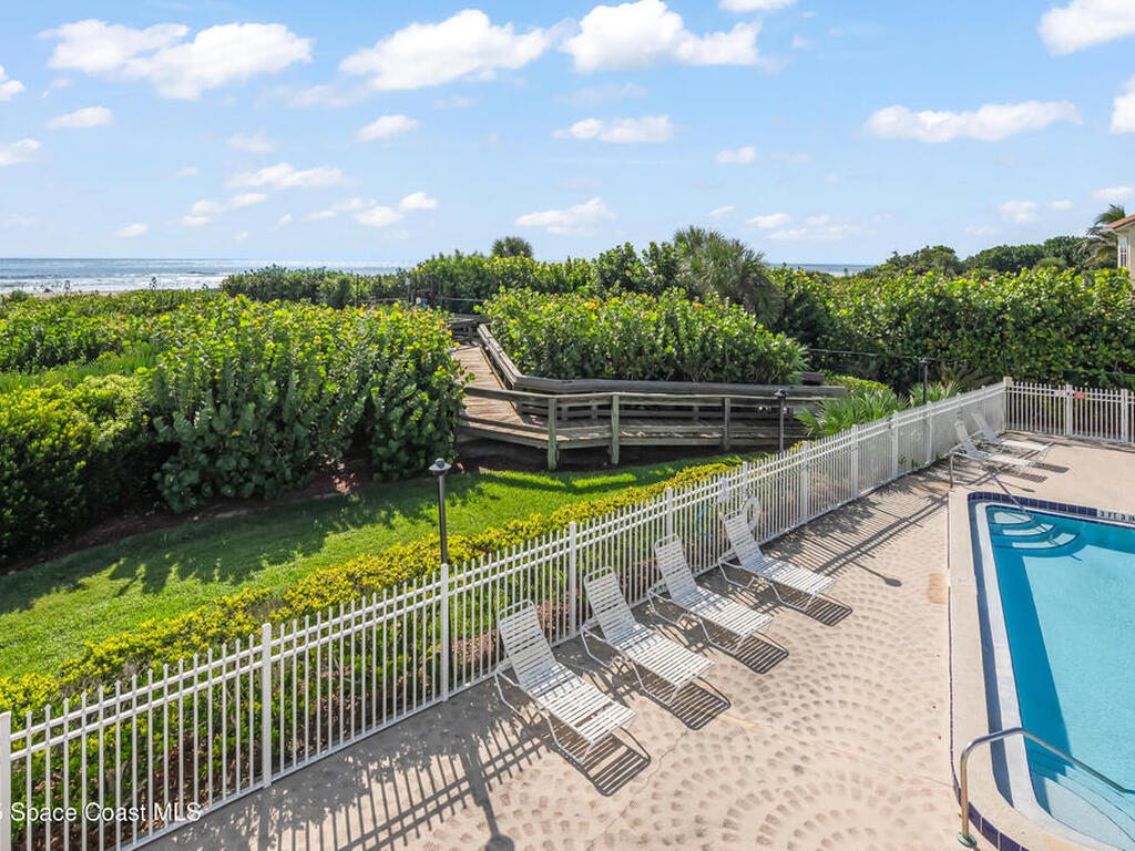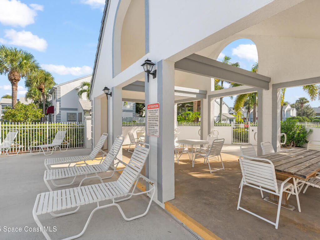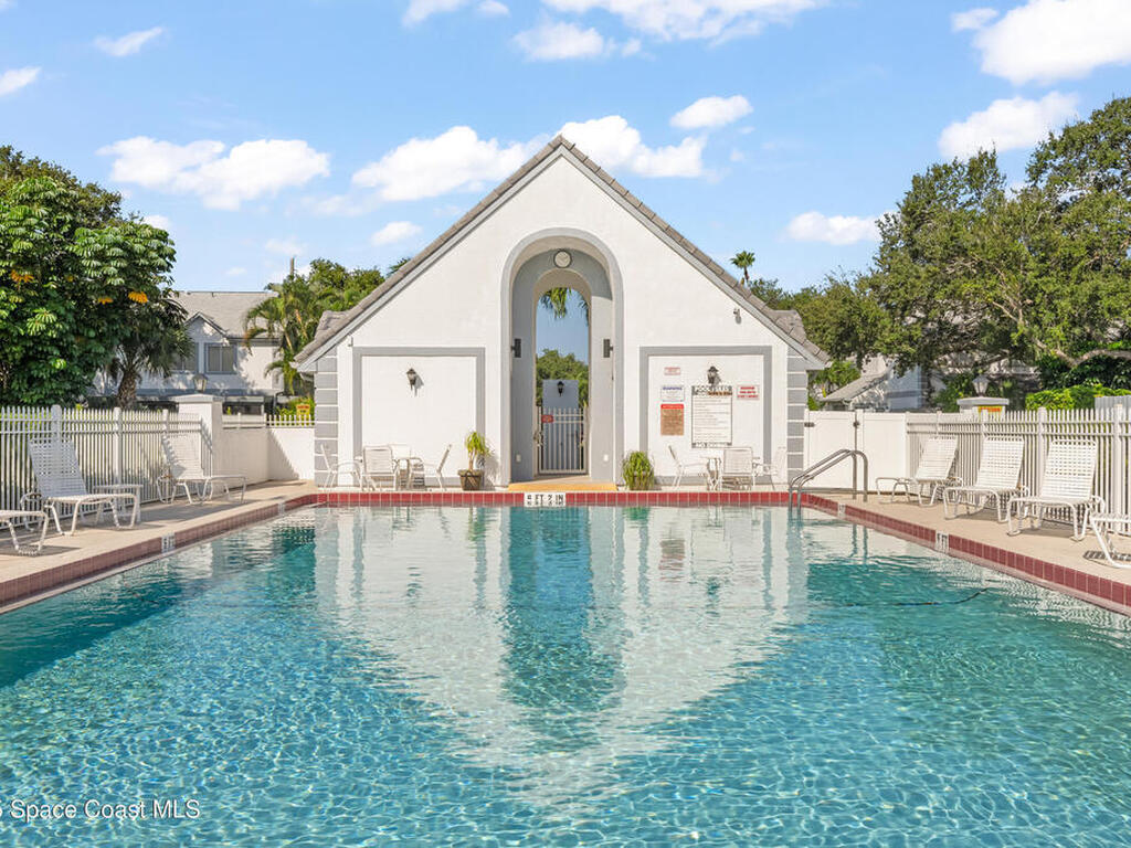 Set in a private cul-de-sac within one of Cape Canaveral's premier gated beachfront communities, this end-unit 2 bed 2.5 bath townhome features exclusivity with resort amenities. 1st floor offers two living areas with the kitchen in between, half bath, and laundry. The rear living room has a gas fireplace and opens to a private patio with tropical landscaping, 2 outdoor storage sheds, and rocket launch views directly from the back porch. Upstairs, both rooms have vaulted ceilings & en-suite baths. Recent updates include a new HVAC system (2023), fence (2024), carpet (2025), and roof (2025).Designed for resort-style living, the community offers 3 pools, fitness center, sauna, hot tub, clubhouse, tennis & pickleball courts, BBQ areas, car wash station and private beach access. HOA include cable, internet, water and trash. Conveniently located within minutes of Port Canaveral and downtown Cocoa Beach, this property is perfectly suited as a primary residence or investment opportunity