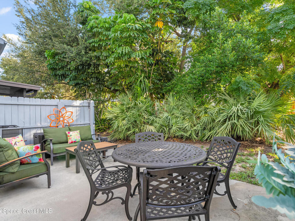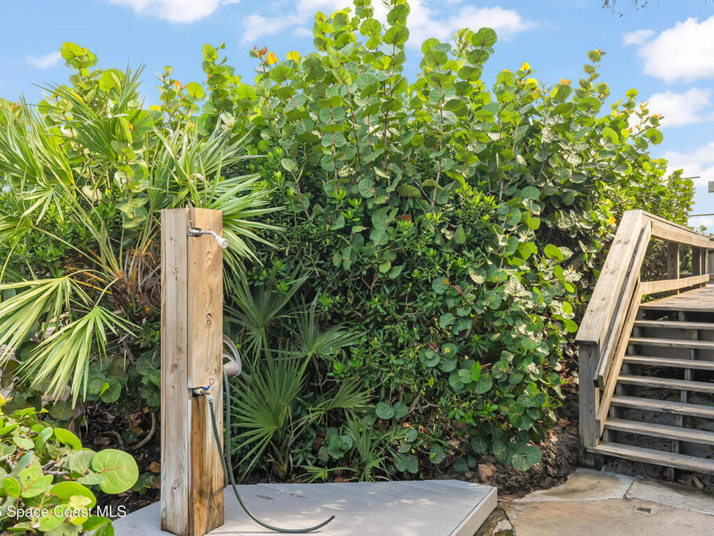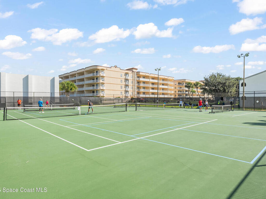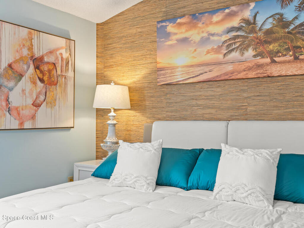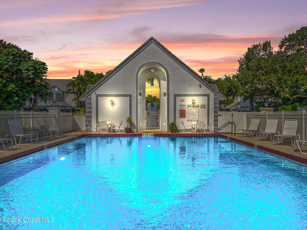 Set in a private cul-de-sac within one of Cape Canaveral's premier gated beachfront communities, this end-unit 2 bed 2.5 bath townhome features exclusivity with resort amenities. 1st floor offers two living areas with the kitchen in between, half bath, and laundry. The rear living room has a gas fireplace and opens to a private patio with tropical landscaping, 2 outdoor storage sheds, and rocket launch views directly from the back porch. Upstairs, both rooms have vaulted ceilings & en-suite baths. Recent updates include a new HVAC system (2023), fence (2024), carpet (2025), and roof (2025).Designed for resort-style living, the community offers 3 pools, fitness center, sauna, hot tub, clubhouse, tennis & pickleball courts, BBQ areas, car wash station and private beach access. HOA include cable, internet, water and trash. Conveniently located within minutes of Port Canaveral and downtown Cocoa Beach, this property is perfectly suited as a primary residence or investment opportunity