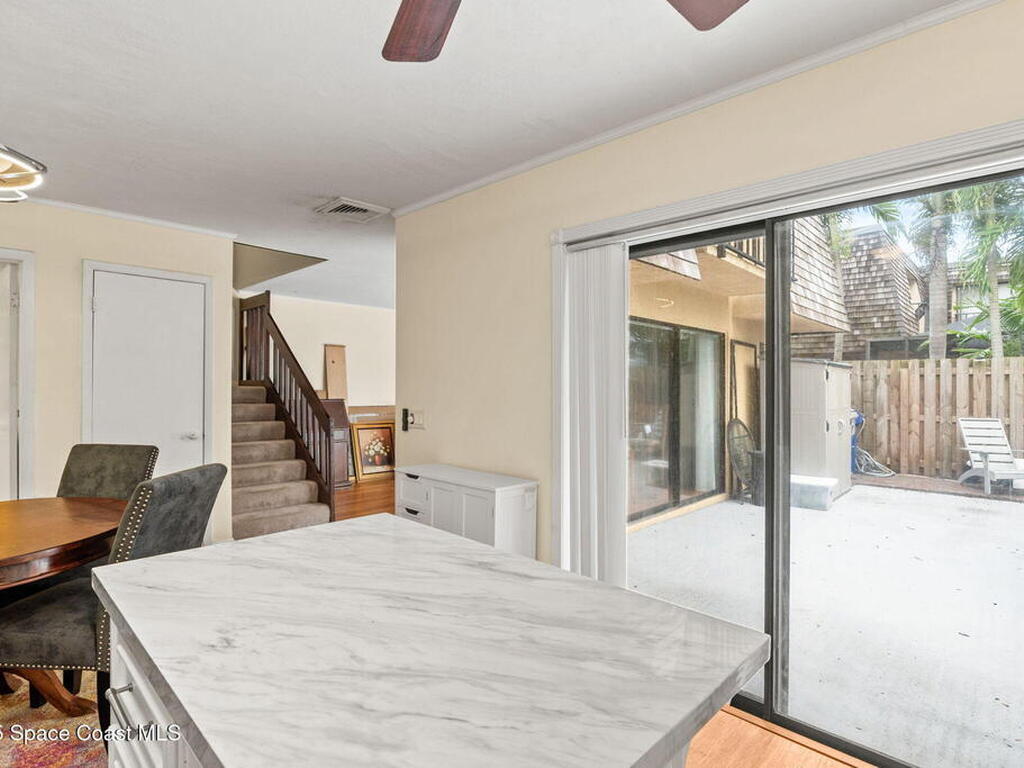 Beautifully maintained 2BR/2.5BA townhome featuring two primary suites w/ private fenced courtyard (2021). Interior highlights: bamboo flooring, crown molding, abundant natural light from dual sliders, & a kitchen w/ island, stainless steel appliances, & instant hot water faucet. Recent updates: REPIPE (2019), A/C (2023) located on ground level NOT roof, & whole-home water filtration system. Solid concrete construction provides peace of mind. Ideal for seasonal or year-round living w/ tropical landscaping, resort-style pool, plus dining, shopping, & entertainment nearby. Minutes to the beach!