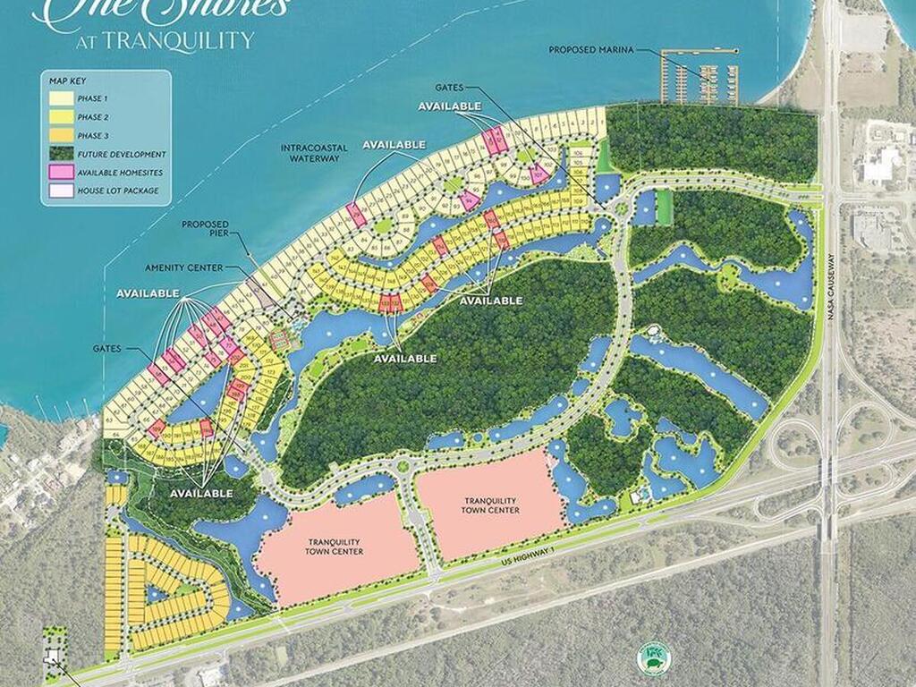 Build your dream home in The Shores at Tranquility, Titusville's premier gated waterfront community. This exclusive neighborhood offers a rare chance to secure a homesite along the Indian River Lagoon, just minutes from Kennedy Space Center and Canaveral National Seashore. Planned resort-style amenities include a clubhouse, pool, fitness center, tennis and pickleball courts, walking trails, and a dog park. Choose from approved luxury builders to create a coastal-inspired home that fits your lifestyle. Enjoy rocket launch views, riverfront activities, and a serene natural setting while being close to beaches, Orlando, shopping, and dining. Don't miss this opportunity to be part of one of the Space Coast's most sought-after new communities!