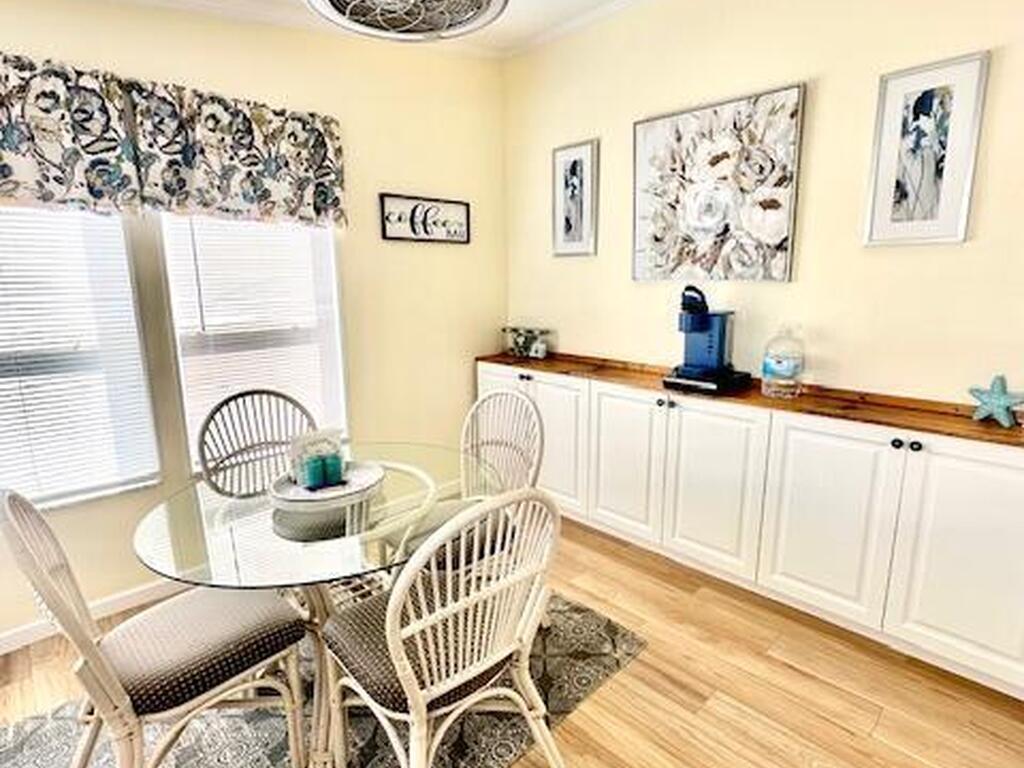 Here's one you Don't Want to Miss!Remodeled professionally in '21 now even more with new windows, doors, siding with wood underlayment & new vinyl and gutters with downspouts. Real pride of ownership here and it's sold partially furnished.Roof shingled'17, AC'20- 4pt done'24. You will not be disappointed in showing this home. It offers a lovely breakfast room, 3 bedrooms, a large open living and dining room, huge finished sunroom and a large shed. In the quiet Indian Section you'r a short walk or golf cart spin to all the activities. Tequesta pond offers a quiet park area with birds and other wildlife. Barefoot Bay offer amenities like nowhere else and you own you land! Golf, pickle ball, tennis, 3 pools, lounges, restaurants, and MORE it's all here! Annual fee of $1001.17 included in taxes. One time new buyer fee of $1605 at closing.