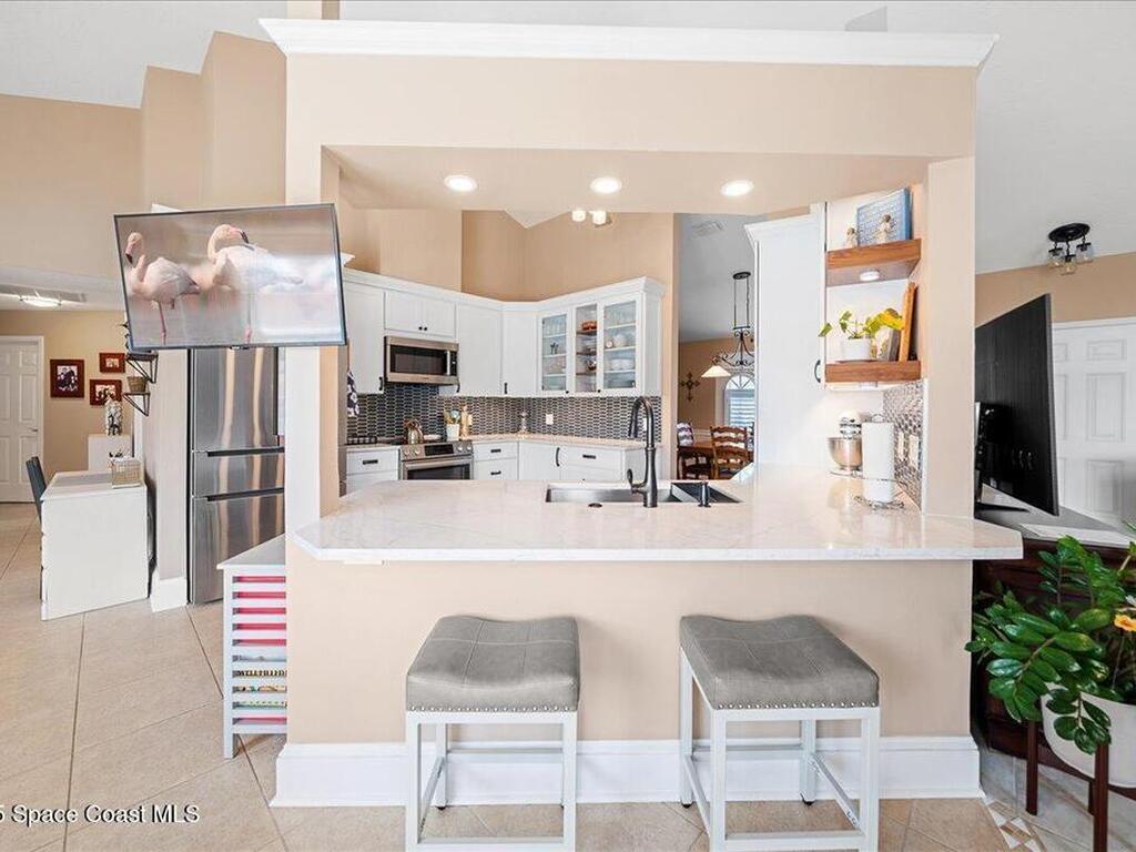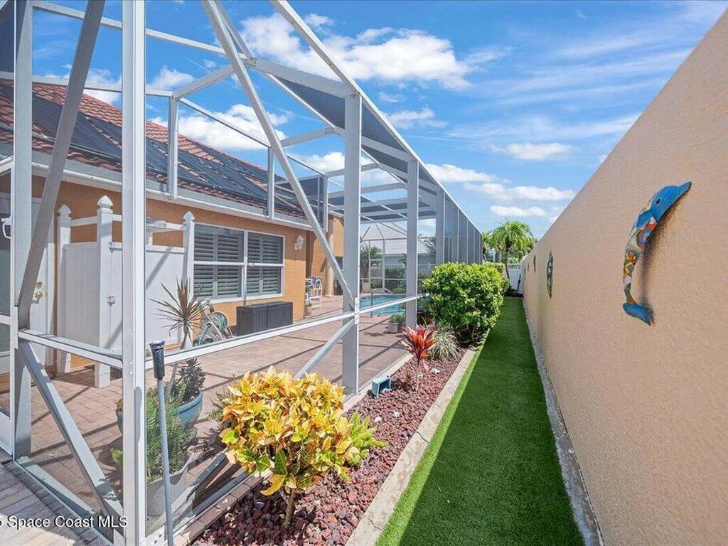 Salt air, sea breezes, and endless sunshine are right outside your door with private community beach access just steps away. This home was made for easy living, with a new tile roof, impact windows, and a newly resurfaced solar-heated pool, you'll never want to leave! Rinse off in the outdoor shower, fire up the grill, and enjoy a low-maintenance backyard designed for more relaxation and less work. Inside, vaulted ceilings and a split floor plan create a bright, open feel. The kitchen has been fully renovated with Bosch appliances, the bathrooms refreshed, and tile throughout. With both living and family rooms, plus a breakfast nook and dining space, there's room to gather, relax, and make every day feel like a vacation! So many updates and improvements, please ask for the full feature list! Most notable: Roof - 2023. Water heater - 2022. AC - 2023. Inside breaker box and outside electrical connection box - 2023