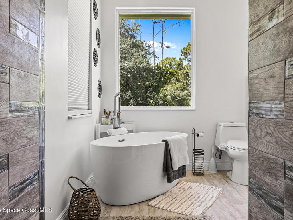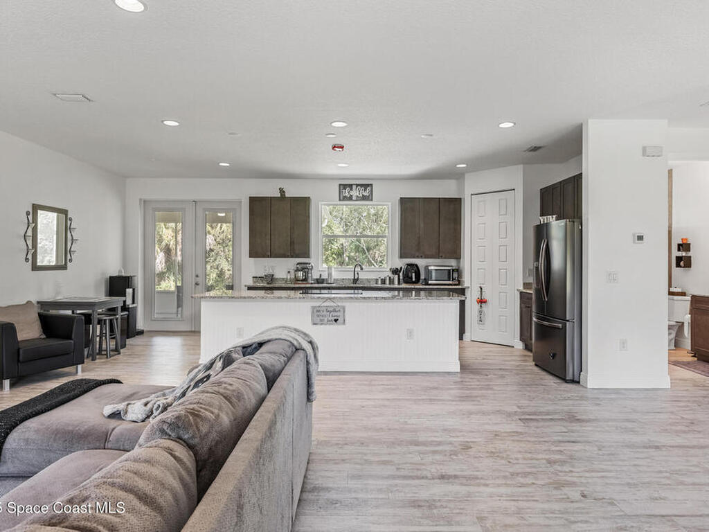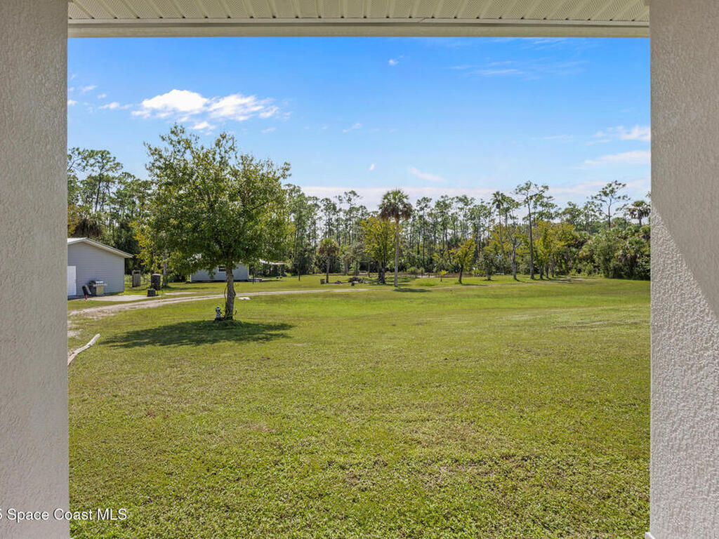 Custom-built in 2020, this 3 bed 2 bath home sits on 3.97 acres. An artesian-fed pond, a finished cabin with electricity for guests or office use, and a 900 sq ft workshop with a hydraulic car lift give the property real utility. The interior delivers an open layout with 9.5 ft ceilings, Italian tile throughout, granite counters, Tuscan black appliances, and impact-rated windows. The primary suite features an oversized tiled shower and a freestanding tub. Outdoor living includes a 480 sq ft front porch and a 336 sq ft screened in back porch under truss, plus space for a pool. Enjoy scenic trails, 360 degree privacy, quick access to I-95, US-1, Valkaria Airport, The Habitat Golf Course, Grant Valkaria Community Park, nearby boat ramps at Christenson's, Jorgenson's and Main St Sebastian, and minutes to waterfront restaurants along the Indian River in Sebastian and Melbourne.