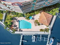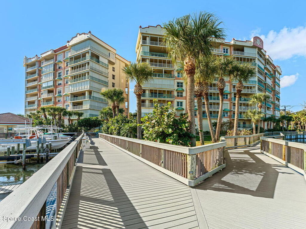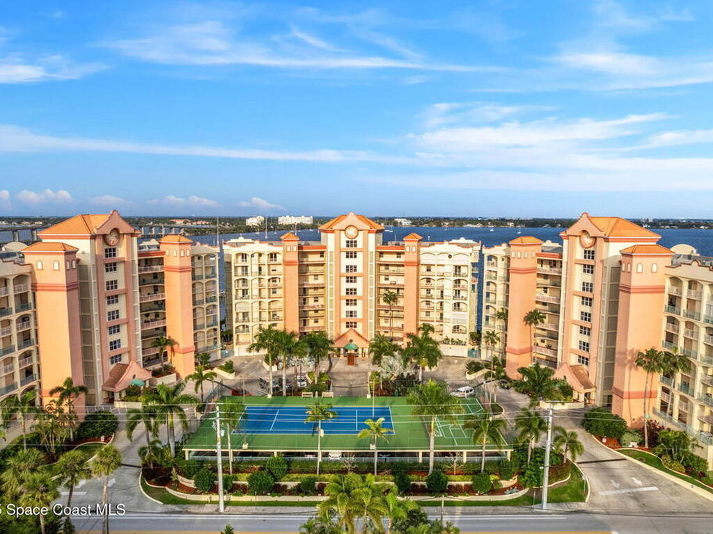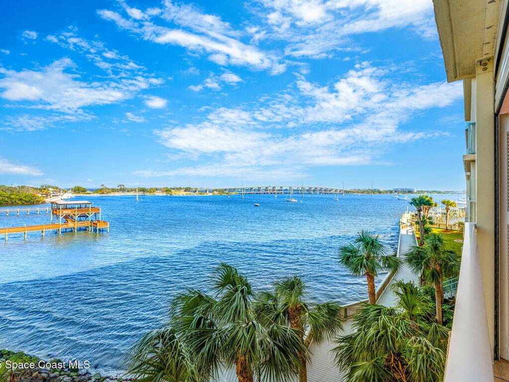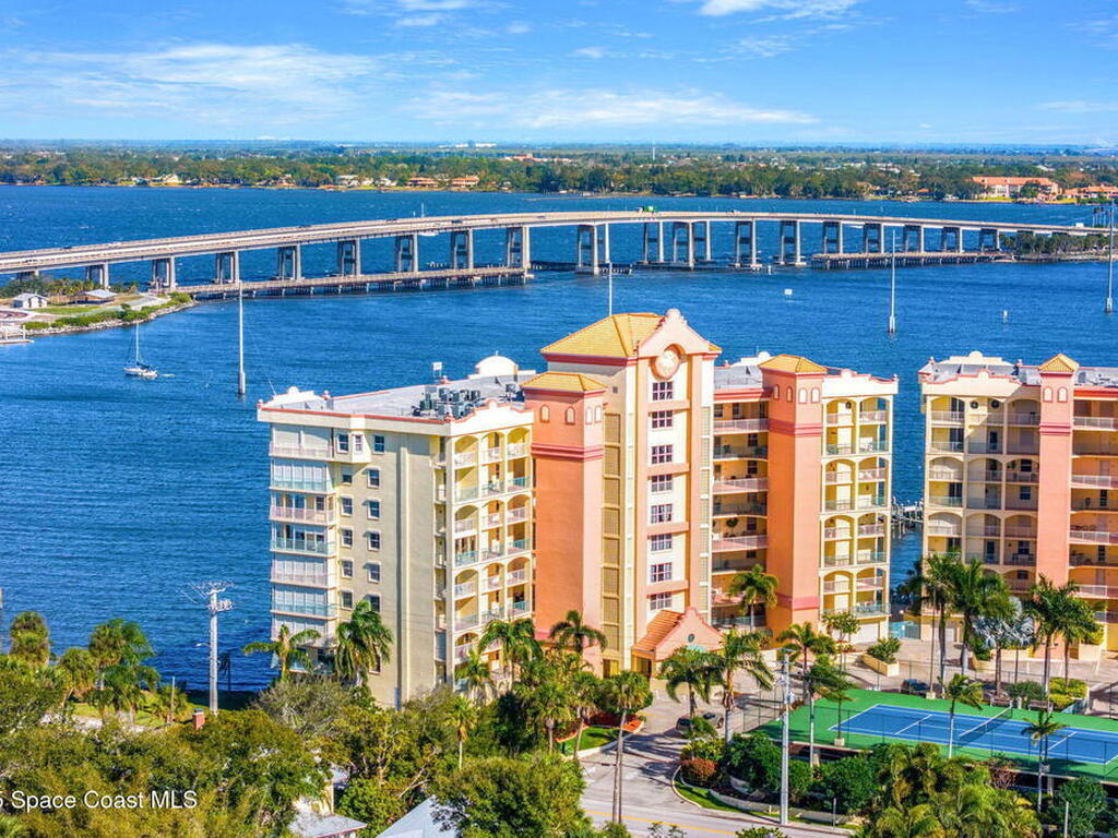 Experience resort-style living in this stunning 3BR/3BA end unit with panoramic water views and front-row seats to rocket launches, Fireworks, and Boat parades. Elegant details include hardwood floors, a custom-built-in bookcase, crown molding, plantation shutters & a built-in speaker system. The updated kitchen showcases custom cabinetry, granite counters & an island with a breakfast bar--perfect for entertaining. Relax in your spacious primary suite with a spa-like bath featuring dual vanities, a jetted tub & a separate walk-in shower. Two balconies with electric roll-down shutters invite you to soak in breathtaking views! Enjoy the convenience of a large, climate-controlled private storage unit, secure garage parking, slips available & endless amenities--pool, spa, boat sauna, gym, clubhouse, tennis, pickleball & more! Walk to Cocoa Village festivals, concerts & dining--or drive minutes to world-famous Cocoa Beach. Live where every day feels like a vacation!
