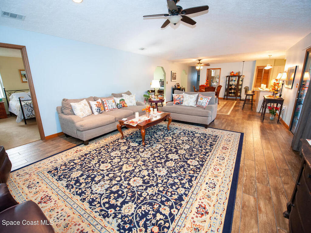 Welcome home! This lovely property offers the highly desired combination of a great location and NO HOA restrictions, giving you the freedom to truly make it your own. This spacious home features 3 Bedrooms, 2 full Baths, and a 2 Car Garage with almost 2000 living sq ft. HVAC 2020. Roof 2017. The open floor plan and huge kitchen are perfectly designed for comfortable living and entertaining. Step outside to enjoy the Florida breeze of the Indian River from your private screened porch, or gather in the fully fenced yard--the perfect spot to watch the incredible, world-famous rocket launches!You'll be joining a wonderful community with great neighbors, all while being centrally located along the Space Coast...Just minutes from the Beachline-528, 520, I95, Port Canaveral, Beaches, Shopping, Fishing, Restaurants & more! Close proximity to Patrick Space Force Base, Space X, Blue Origin, and Kennedy Space Center. Easy drive to all the Orlando attractions and the MCO Airport too.
