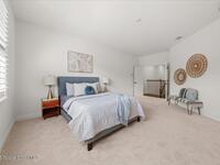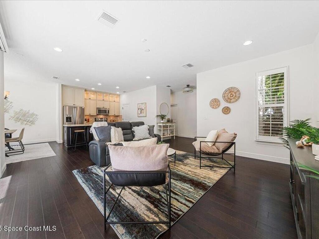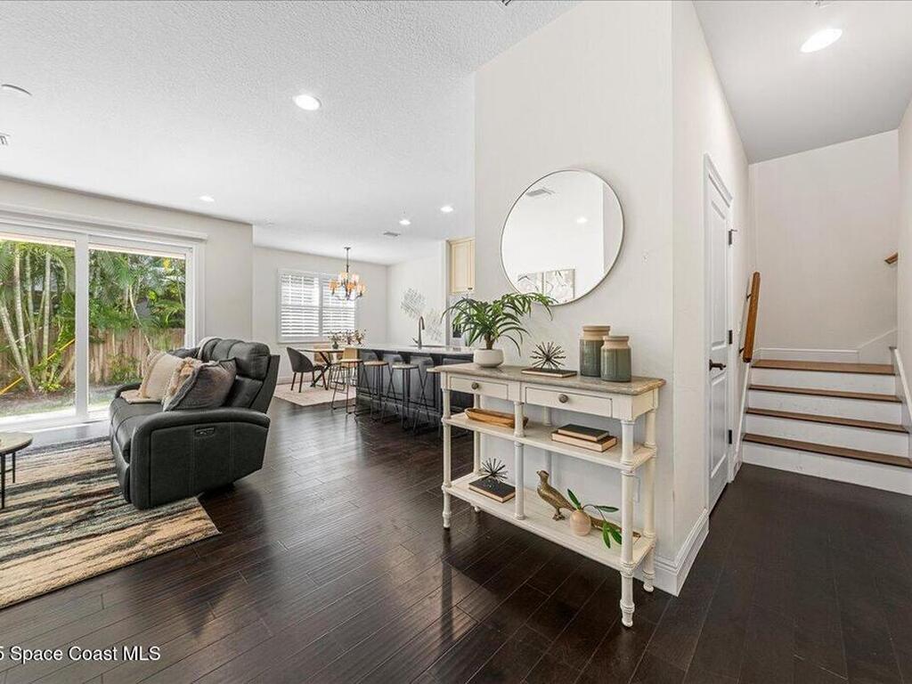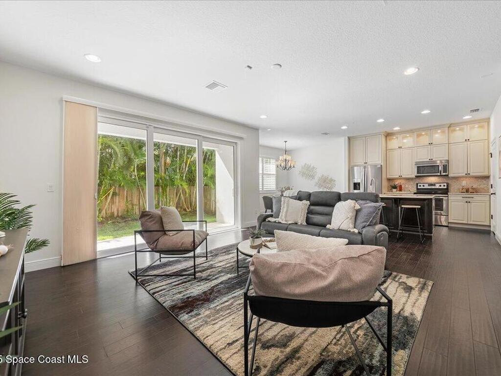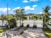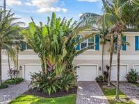 Amazing location! This immaculate townhome is just three minutes from the ocean and a short stroll to the shops and restaurants of 5th Avenue, this West Indies-style townhome blends modern comfort with coastal convenience. Built in 2015 with solid CBS construction, this home offers lasting quality, along with a two-bay garage, paver driveway, and a durable Entegra tile roof. Impact-rated, insulated low-E windows and doors provide energy efficiency and peace of mind during storm season. Inside, scraped hardwood floors and high ceilings create a warm, open feel on the main level. The gourmet kitchen is designed for both function and style, featuring granite countertops, stainless steel appliances, a spacious pantry, and custom cabinetry. Sliding glass doors open to a covered porch and private fenced-in backyard, perfect for outdoor dining or quiet relaxation. Upstairs, the bright and spacious master suite is thoughtfully designed as a private retreat. The en-suite bathroom features dual