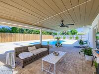 Truly Beach Style Living. This updated 3 Bedrooms 2 Baths Home is well appointed with many upgraded features in the Kitchen, Bathrooms and throughout. The inviting Private Pool has a Beach theme that has a clean look with very low maintenance. Fenced in Rear Exterior makes Privacy grand; Covered Patio is great for entertaining or just sitting with a pool view. Excellent location with a short walk to the Beach. Home Warranty is included to make the Home even more attractive.