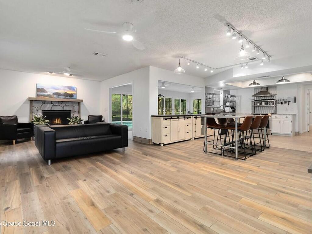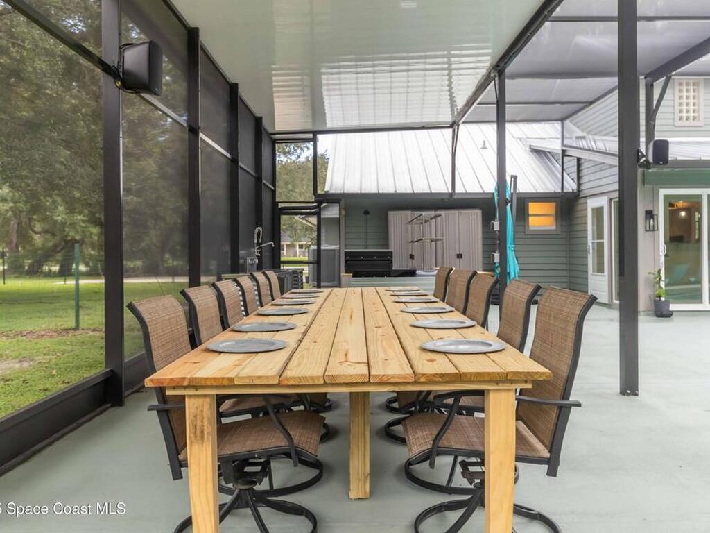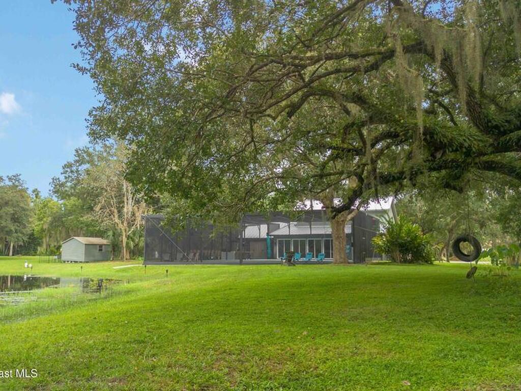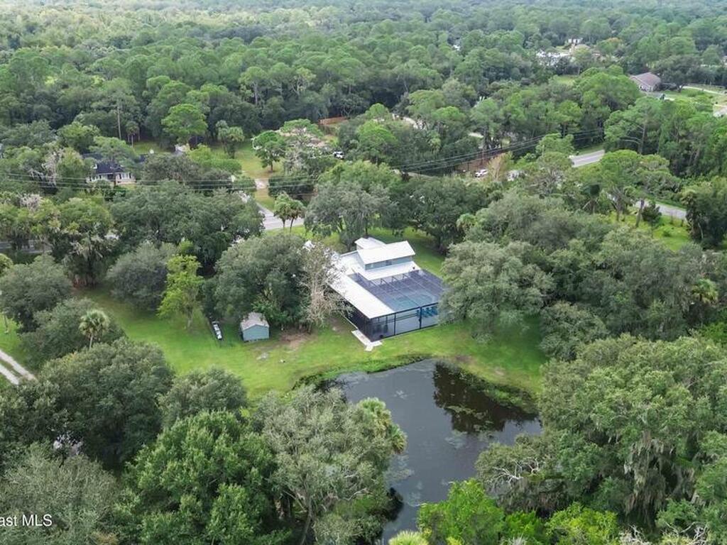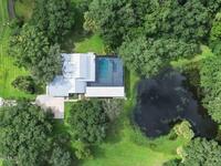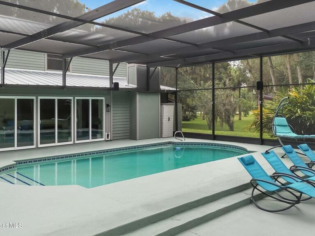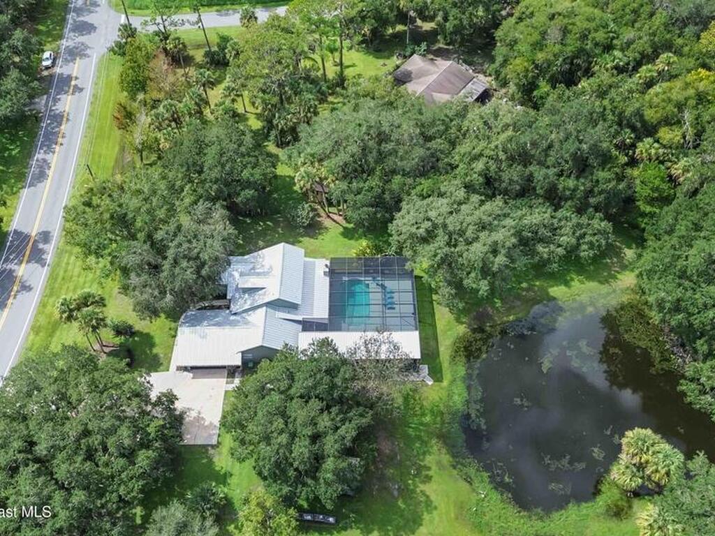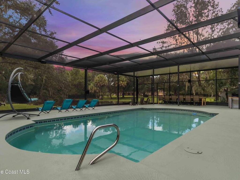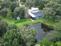 An oasis of calm...just 5-10 minutes from shops & restaurants! This spectacular pool home with private pond is adjacent to a 500 acre bird sanctuary (see photos). The screen-enclosed pool area is perfect for both relaxing and entertaining, featuring an outdoor kitchen, dining & sunning areas, ''smokeless'' fire pit & a Dolby Atmos(r) outdoor movie theater & surround sound system. Listen to your favorite music or watch movies under the stars! Inside, a cook's kitchen features stainless steel appliances & the living area offers cozy evenings by a wood-burning fireplace. Owner's suite & guest baths have been beautifully upgraded, adding modern style & comfort. With a newer metal roof, fresh paint inside & out and a host of upgrades, this beautifully maintained home will provide you with peace of mind for years to come. With no HOA, full RV hookup overlooking the pond & plenty of room to park your RV and boats, this property truly has it all!