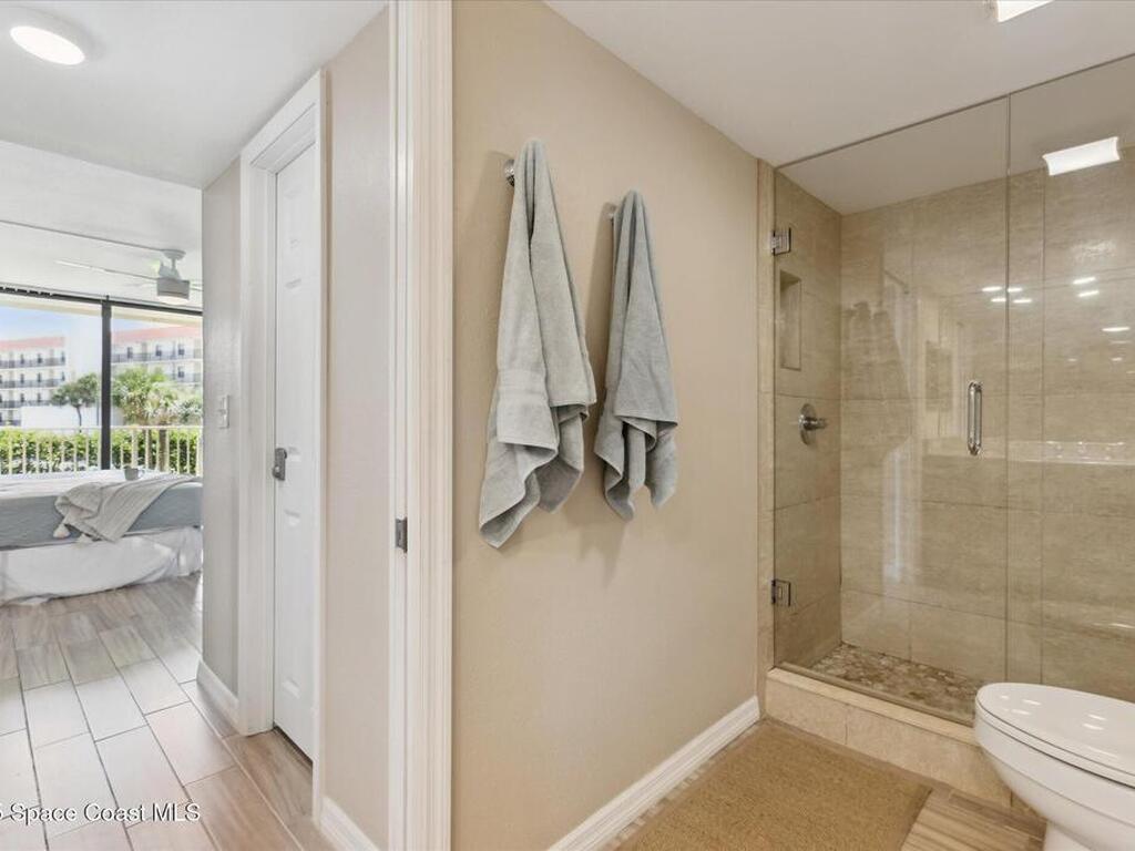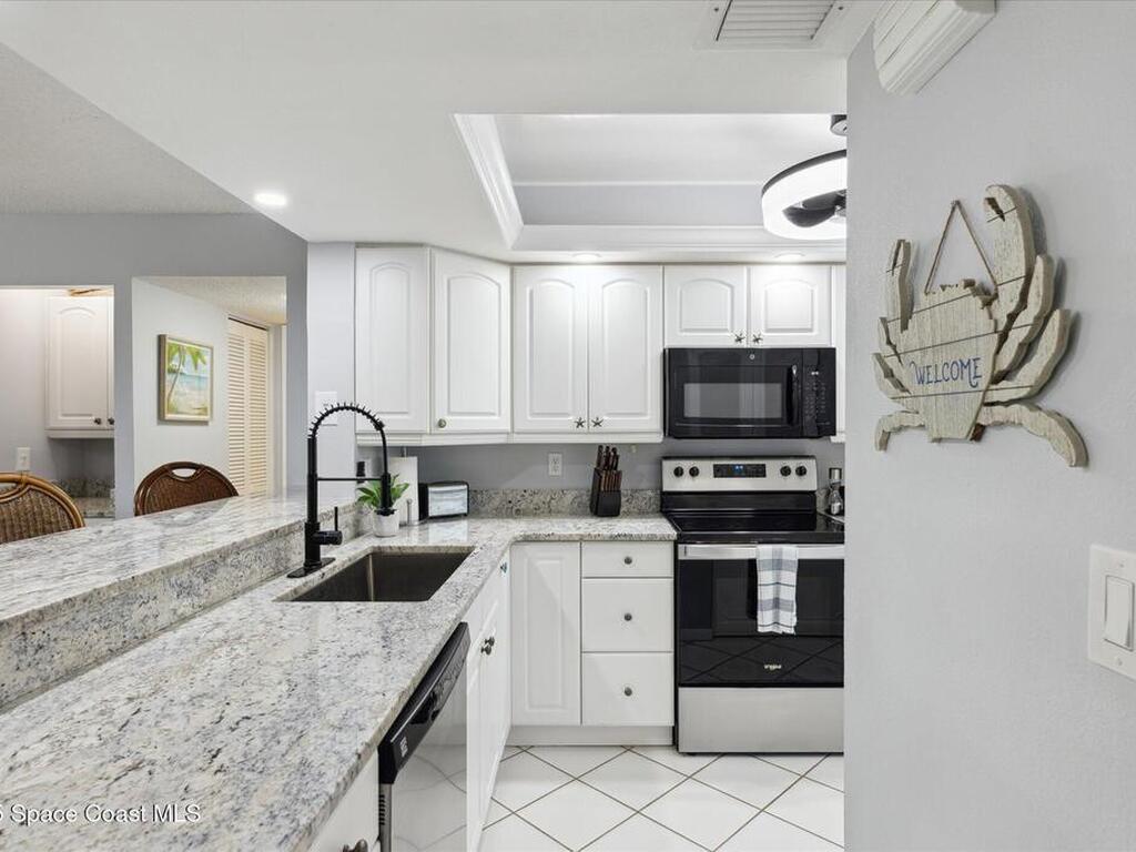 Welcome to your slice of paradise on Florida's Space Coast with this 3/2 condo located in a guard gated community! Nestled within the exclusive Stonewood Towers, this oceanfront complex offers the perfect blend of coastal living, resort‑style amenities, and a prime location. Imagine waking up to the sound of the waves and stepping out onto your balcony to watch the sunrise or rocket launches. This unit is designed for comfort and coastal elegance. The open floor plan and thoughtfully renovated kitchen and baths create a seamless flow of indoor/outdoor living. Step outside to enjoy 13 acres of resort-like grounds, complete with a heated sea-front pool, hot tub, fitness center, tennis, basketball & pickleball courts, shuffleboard, putting green, private beach access and a deeded garage space offers secure parking and storage for all the beach toys. Ideally located, you're just a short walk or bike ride from downtown shops/dining and about an hour from Orlando airport and attraction.