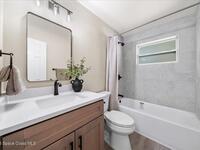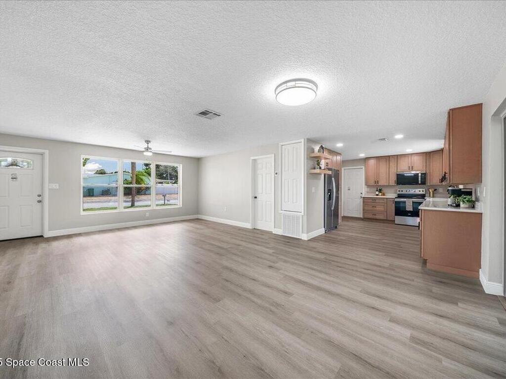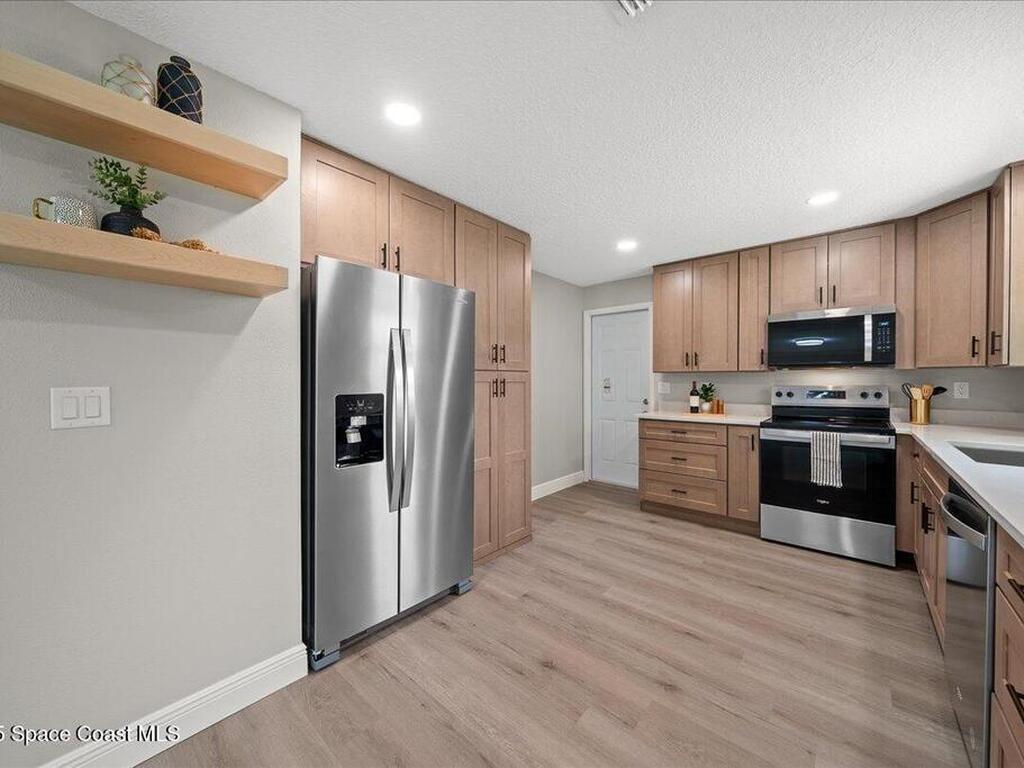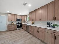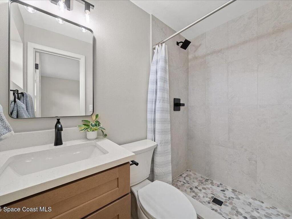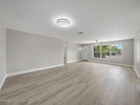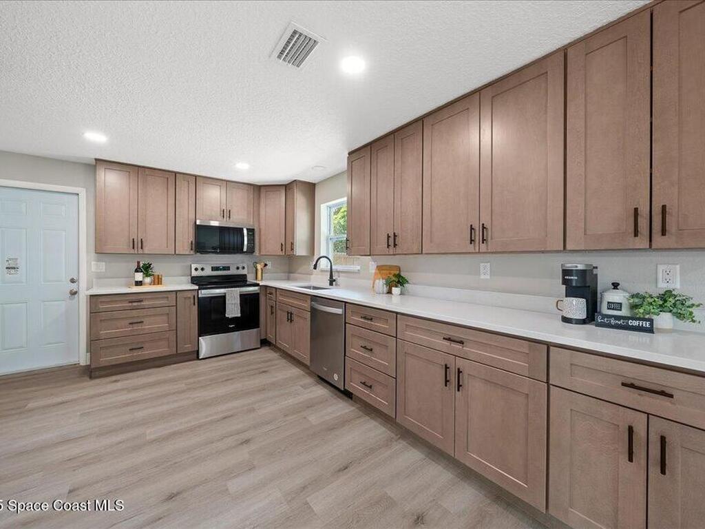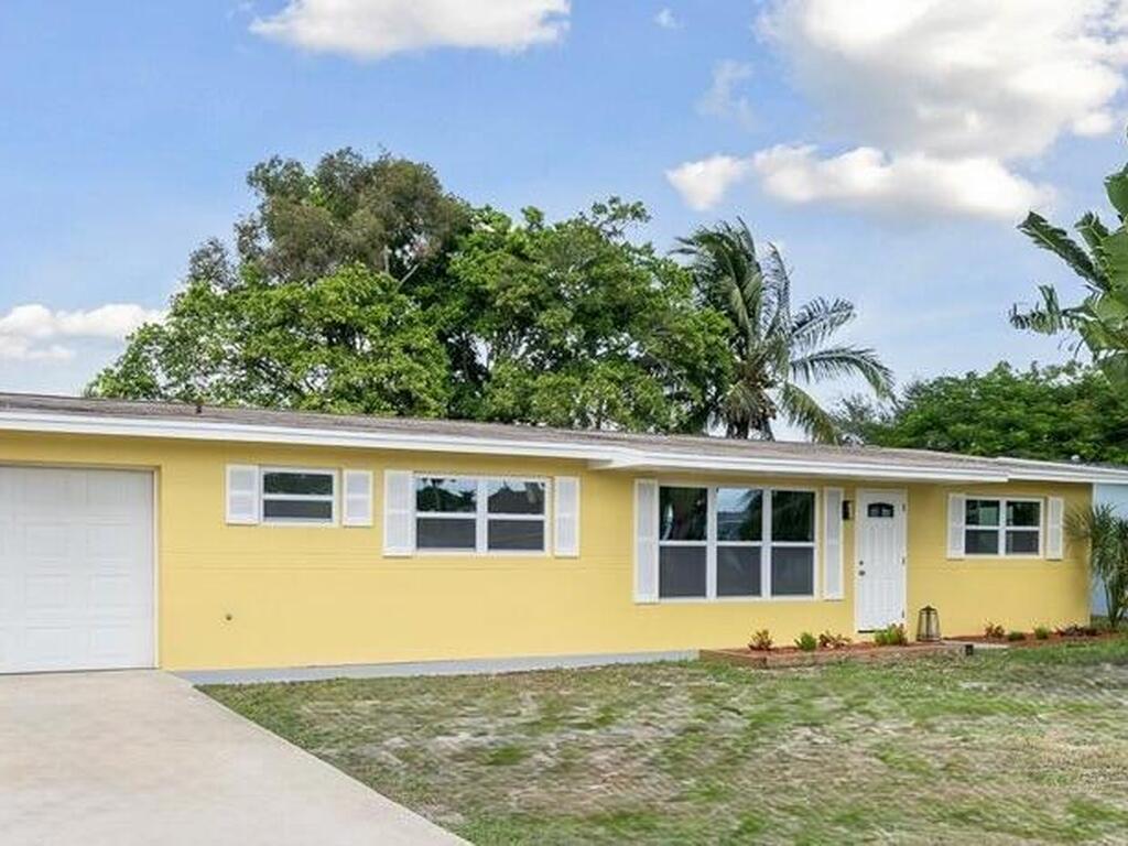 Nestled conveniently between the Atlantic Ocean and the Indian River, you'll find this beautifully remodeled 3 bedroom, 2 bath saltwater cottage, just minutes from both! With updated electrical, plumbing, (pex for incoming and NO CAST IRON for sewer lines), new HVAC system (with new lineset between), new gas water heater, new impact windows, slider and doors, you have years of piece of mind. The open floor plan, neutral color palette and natural light sets off the gorgeous all NEW reconfigured kitchen that is equipped with shaker cabinets with soft close hardware and 42'' uppers! The wood cabinets and quartz countertops are accented by new Whirlpool stainless steel appliances. The wood look vinyl plank flooring, new baseboards, doors, new paint inside & out, knockdown ceilings, and fixtures run throughout the home for nice cohesion. Both bathrooms have the same cabinetry for vanities, a walk in tiled shower in master and new tub/shower combo for the guest bath.