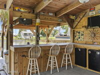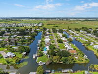 Waterfront Luxury Meets Coastal Lifestyle! Newer 2021 Custom-Built Home. Deep Freshwater Canal - On An Oversized Corner Lot. Easy access to Lake Okeechobee and direct access to both the Atlantic and Gulf Coast. Cruise to the Bahamas or Florida Keys in just 1-2 days by boat. No HOA. Bring your boats and RVs! Store 3-4 large boats. Property features: 3 Docks, a Boat Lift, Tiki Bar, and 2 RV Hookups with power and water. A detached workshop with full bath is ready to convert into a mother-in-law suite. Built to the highest hurricane standards with Cement Block (1/2 filled), Durable Metal Roof, and Impact Doors & Windows. Foam attic insulation enhances efficiency. On City Water & City Sewer. Underground gutters and a wraparound porch. Inside, enjoy 9' vaulted ceilings, solid doors, plantation shutters, and life-proof flooring. All kitchen appliances, stackable washer/dryer, and mounted TVs included.