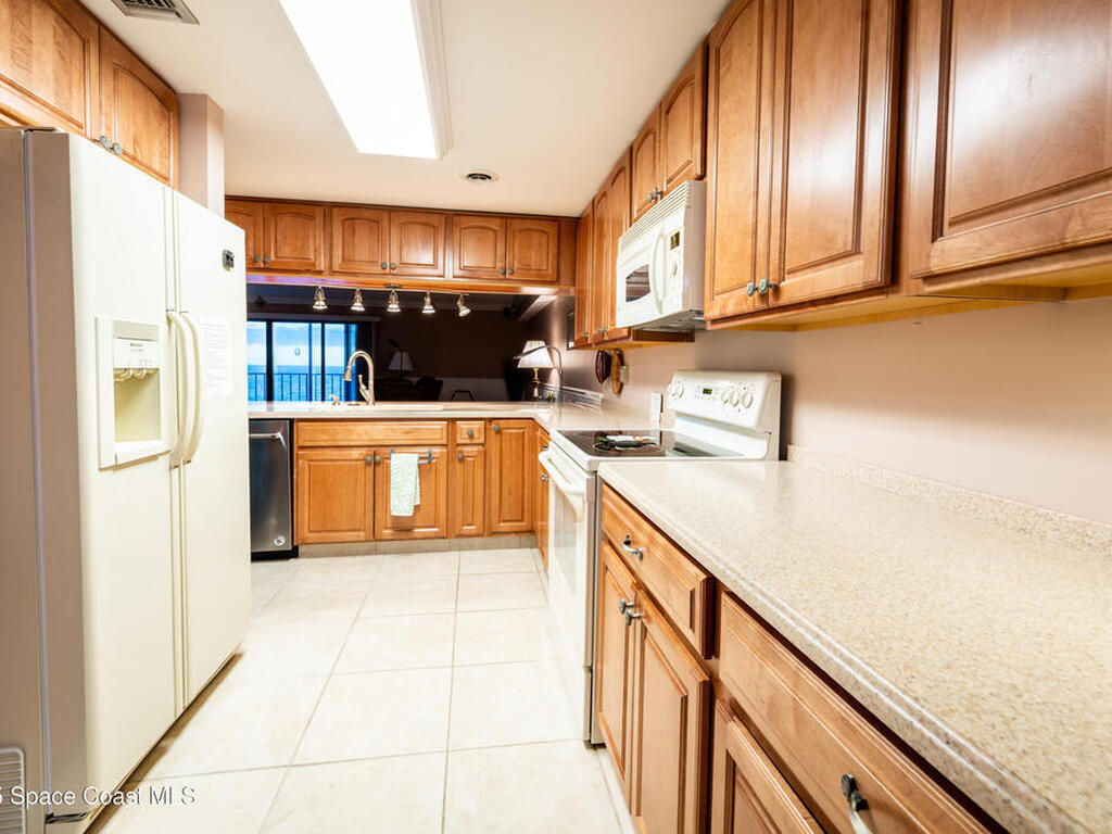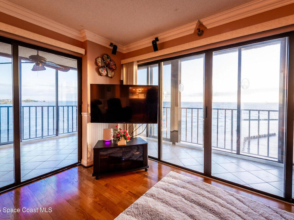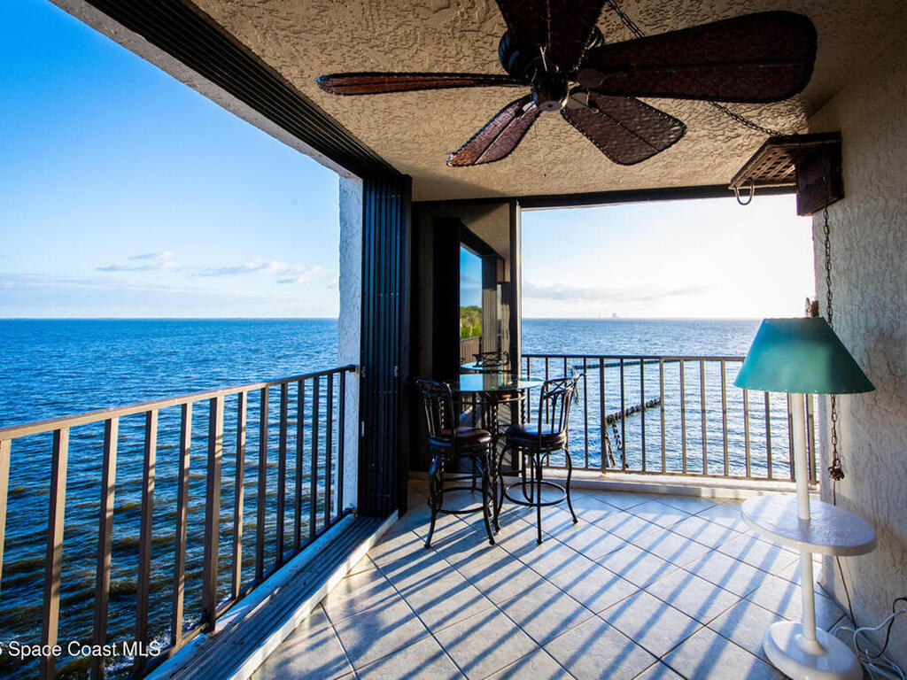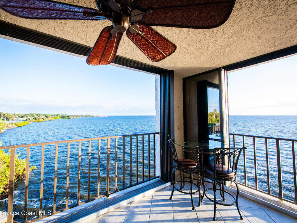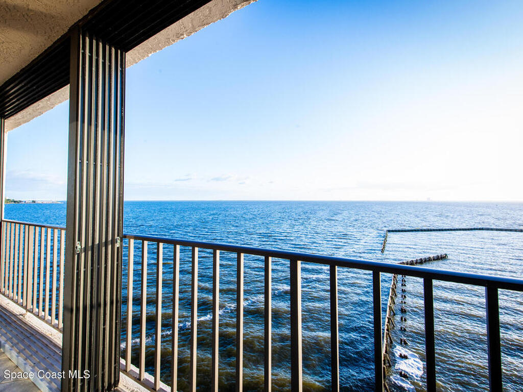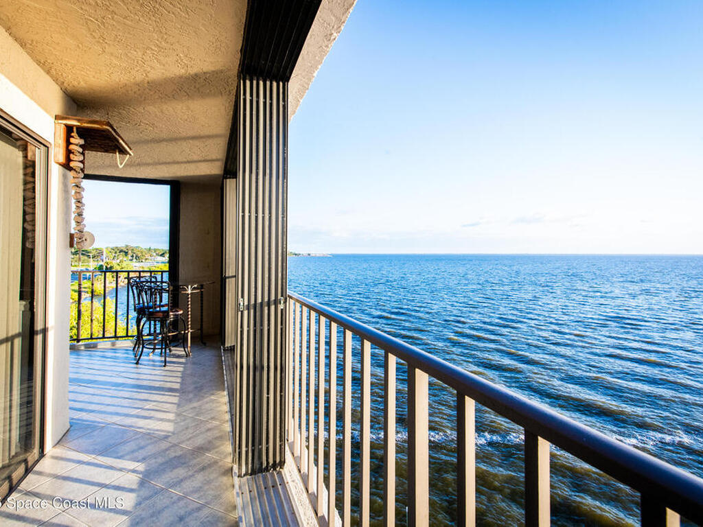 Check out this gorgeous waterfront condo! Experience relaxing, waterfront living in this beautifully updated 3 bedroom, 2 bathroom condo on the 4th floor, offering panoramic views of the Indian River and direct front row seats to rocket launches from the Space Center just across the water. This fully furnished North end unit features a spacious layout, modern finishes. Front Bedroom has a Murphy Bed that pulls out to a Queen. The glass hurricane proof sliding doors allow you to enclose/air-condition the balcony; perfect for year-round comfort and enjoying the view. Ideally located just off US-1 with quick access to I-95, you're only minutes from Cocoa Beach and local amenities. Whether you're looking for a primary residence or vacation home this move in ready gem offers the best of Florida's Space Coast lifestyle.***New roof about to be completed, 2022 A/C, updated electrical panel