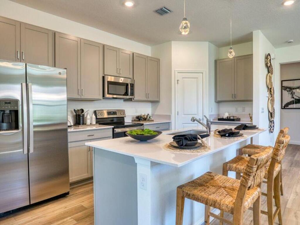 Exclusive to active adults 55+ and better, this new single-story twin home is a modern take on a classic design. Its open-plan layout connects the well-equipped kitchen, intimate dining room and Great Room together to prioritize ease of living. Glass sliders lead to an attached lanai. Nearby is the owner's suite with a full-sized bathroom and walk-in closet, while on the opposite side of the home are the remaining two bedrooms and a flex space.Prices, dimensions and features may vary and are subject to change. Photos are for illustrative purposes only.