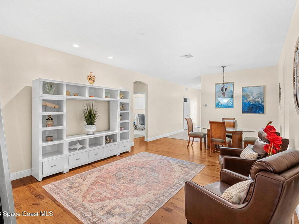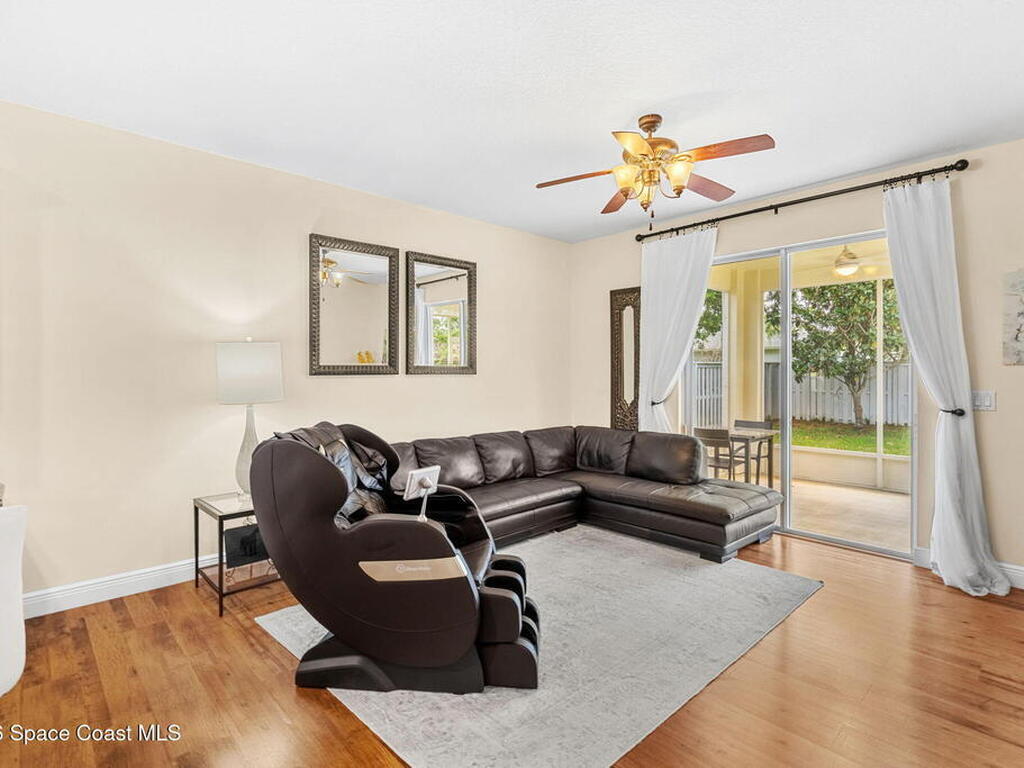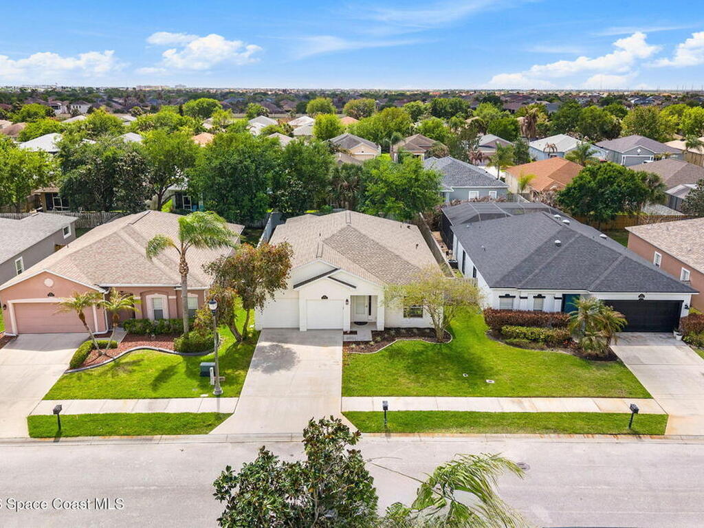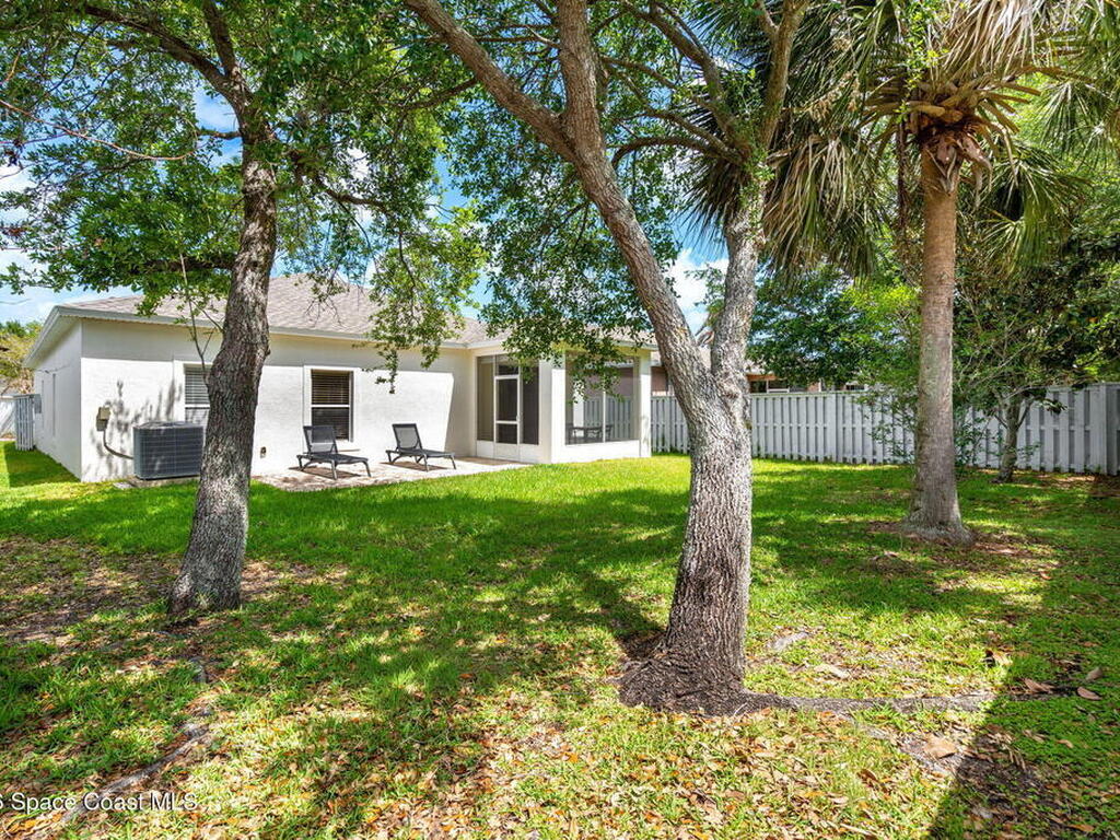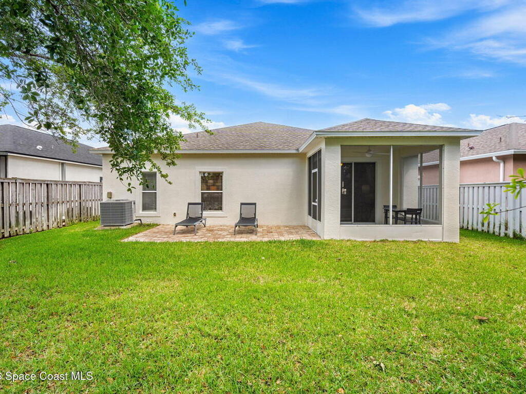 Welcome Home to this beautiful 4BD & 2BA residence in highly sought-after Viera, just minutes from shopping, dining & highly rated schools. A very special gem. This home features a new roof (2024), AC (2017), exterior painted (2022), and upgraded wide baseboards. Inside, enjoy large tile & luxury vinyl plank floors, no carpet! The updated kitchen boasts granite countertops, tall solid-wood cabinets with stylish hardware, & extended cabinetry. The primary suite offers a remodeled shower with beautiful tile, and the laundry room includes extra cabinetry, countertop space for ample storage.Step outside to a screened lanai & paver patio in your fully fenced backyard, perfect for relaxing or entertaining. Located in one of Viera's premier master-planned communities residents enjoy access to a community pool, clubhouse, tennis & basketball courts. A very special find.