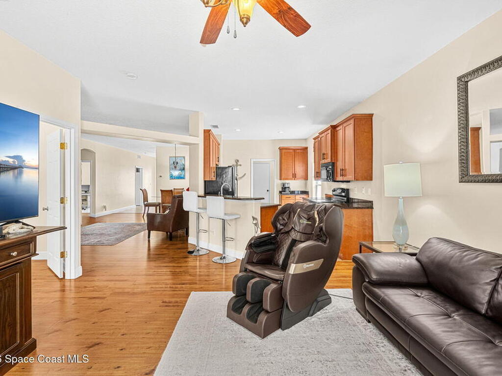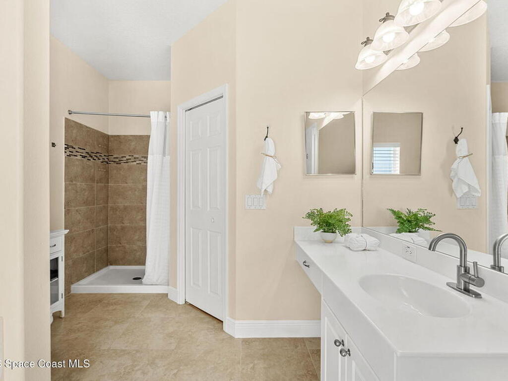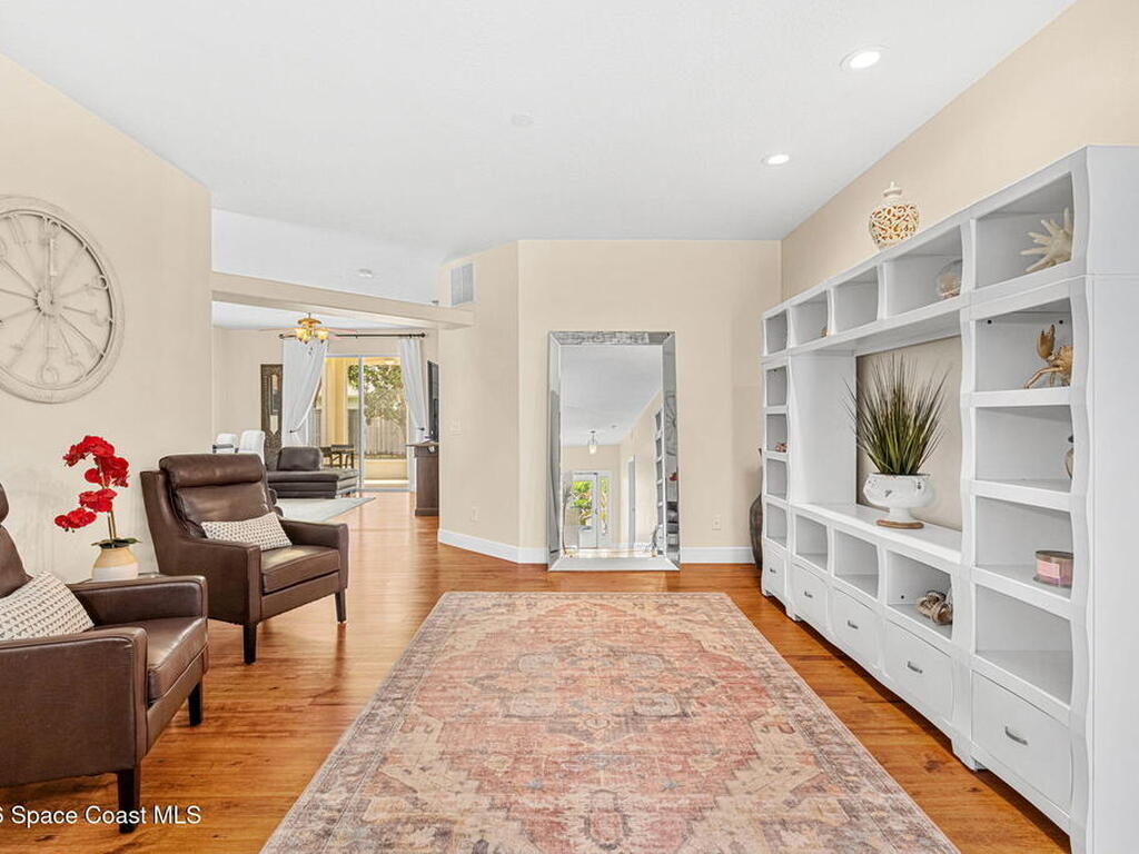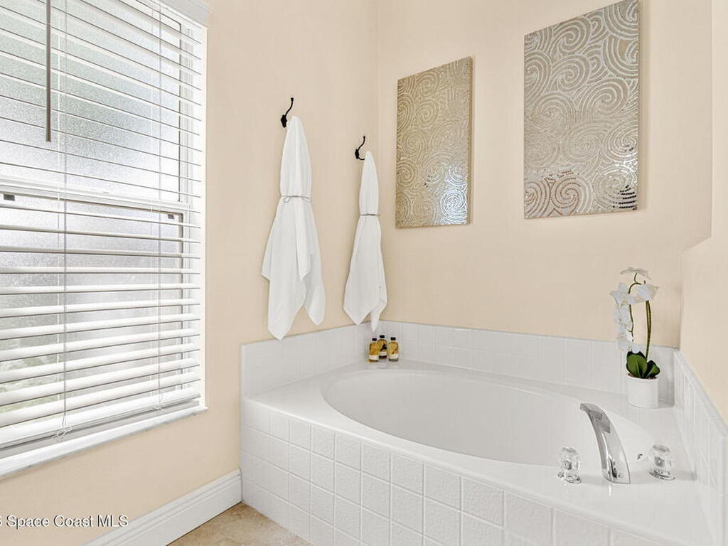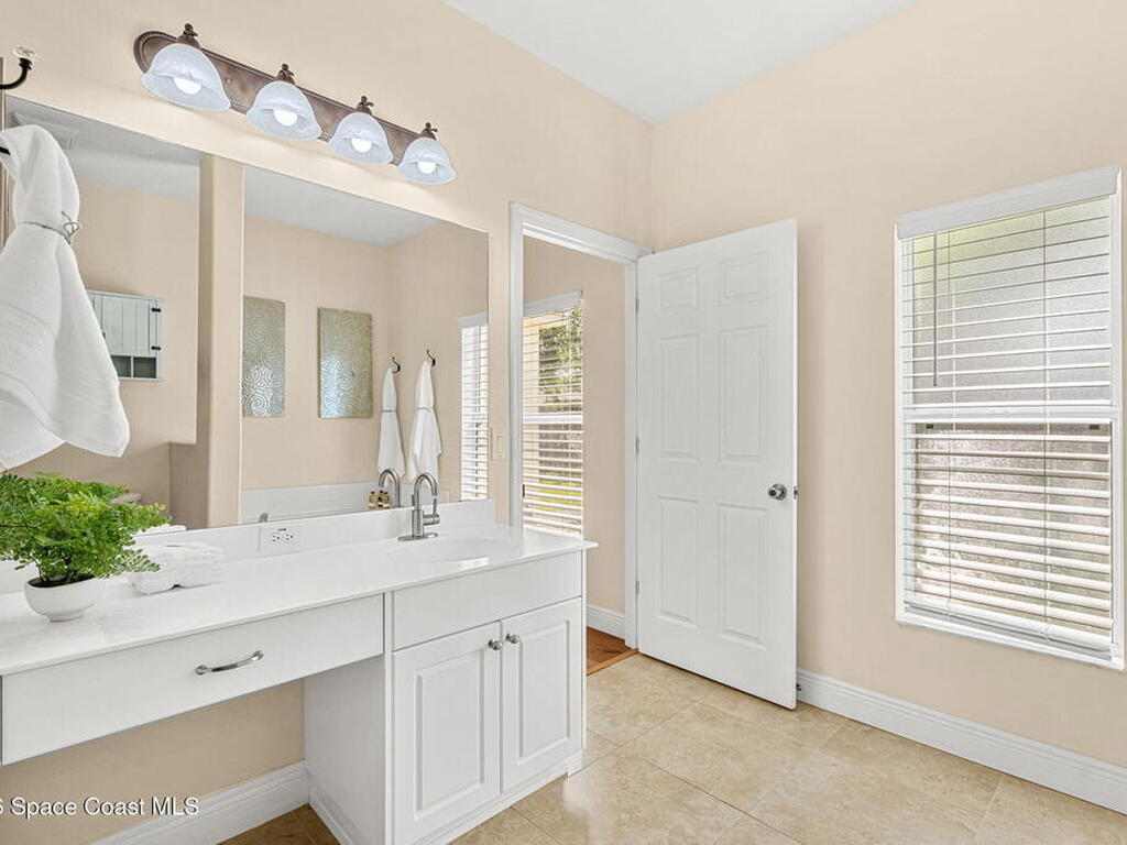 Welcome Home to this beautiful 4BD & 2BA residence in highly sought-after Viera, just minutes from shopping, dining & highly rated schools. A very special gem. This home features a new roof (2024), AC (2017), exterior painted (2022), and upgraded wide baseboards. Inside, enjoy large tile & luxury vinyl plank floors, no carpet! The updated kitchen boasts granite countertops, tall solid-wood cabinets with stylish hardware, & extended cabinetry. The primary suite offers a remodeled shower with beautiful tile, and the laundry room includes extra cabinetry, countertop space for ample storage.Step outside to a screened lanai & paver patio in your fully fenced backyard, perfect for relaxing or entertaining. Located in one of Viera's premier master-planned communities residents enjoy access to a community pool, clubhouse, tennis & basketball courts. A very special find.