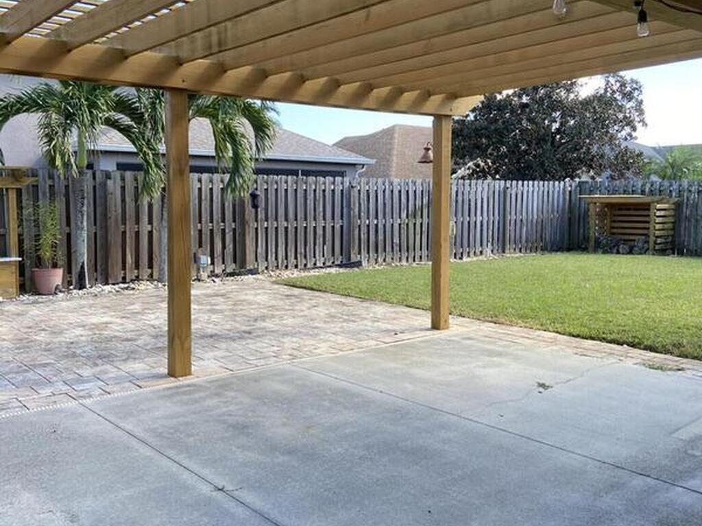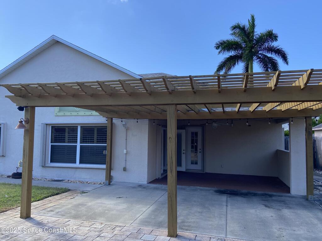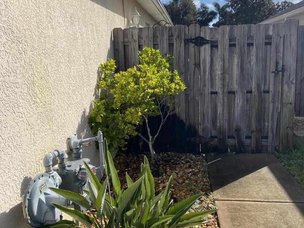 Beautiful 3-bedroom, 2 bath 2 car garage home in Copperfield subdivision in central Merritt Island with quick commute to Space Center, Port Canaveral, and easy access to 528 Beachline with less than an hour to Orlando airport and attractions. Attractively updated and well maintained and move in ready. Privacy fenced backyard, complete with extended pergola covered patio, natural gas fire pit, water feature and nice landscaping. Spacious primary suite w/walk in closet, soaking tub, separate shower & double sinks. Front entrance opens to living and dining areas. Eat in kitchen, plantation shutters throughout, tile and engineered wood floors, indoor laundry room w/large laundry sink and storage. Newer water heater and appliances. Washer and dryer included but not guaranteed. New roof to be scheduled soon.