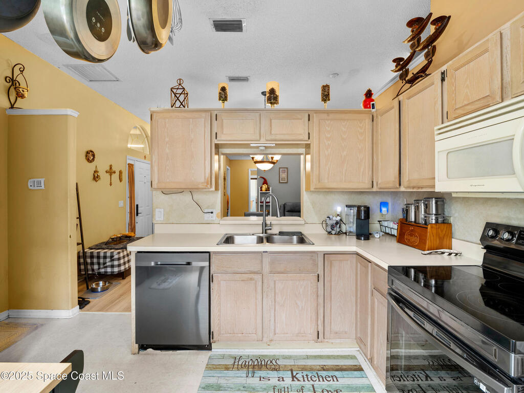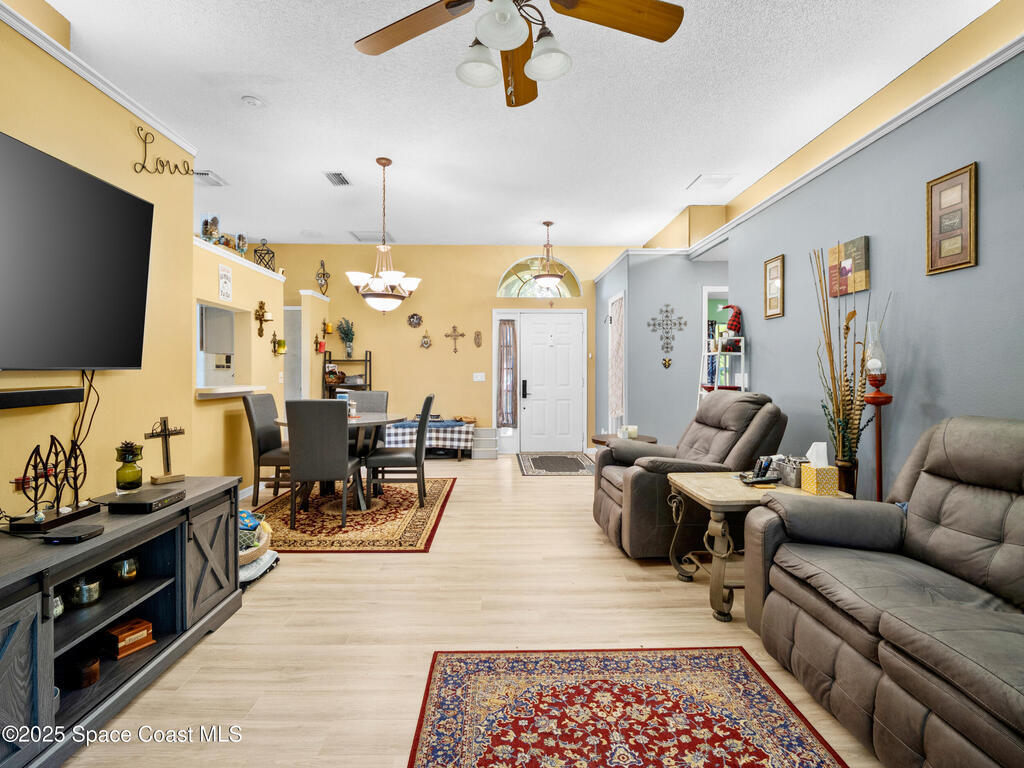 This home can be purchased with NO INCOME VERIFICATION needed! Discover a rare blend of comfort, charm, and peace of mind just minutes from Valencia East Campus. Nestled in a tranquil neighborhood lined with majestic oaks, wide roads, and winding sidewalks, this home feels like a true sanctuary. Inside, luxury vinyl plank flooring, soaring ceilings, and a thoughtful split floor plan create a warm, open atmosphere designed for both connection and privacy. The kitchen, anchored at the heart of the home, features all-new Samsung stainless steel appliances and flows seamlessly into the living and dining spaces. Step through sliding doors to your screened patio--perfect for morning coffee or watching golden sunsets. Major updates include a brand-new roof (2024), newer AC & ductwork (2019), and fresh appliances for true move-in confidence. More than an investment, this is a home where comfort, quality, and peace come together beautifully.