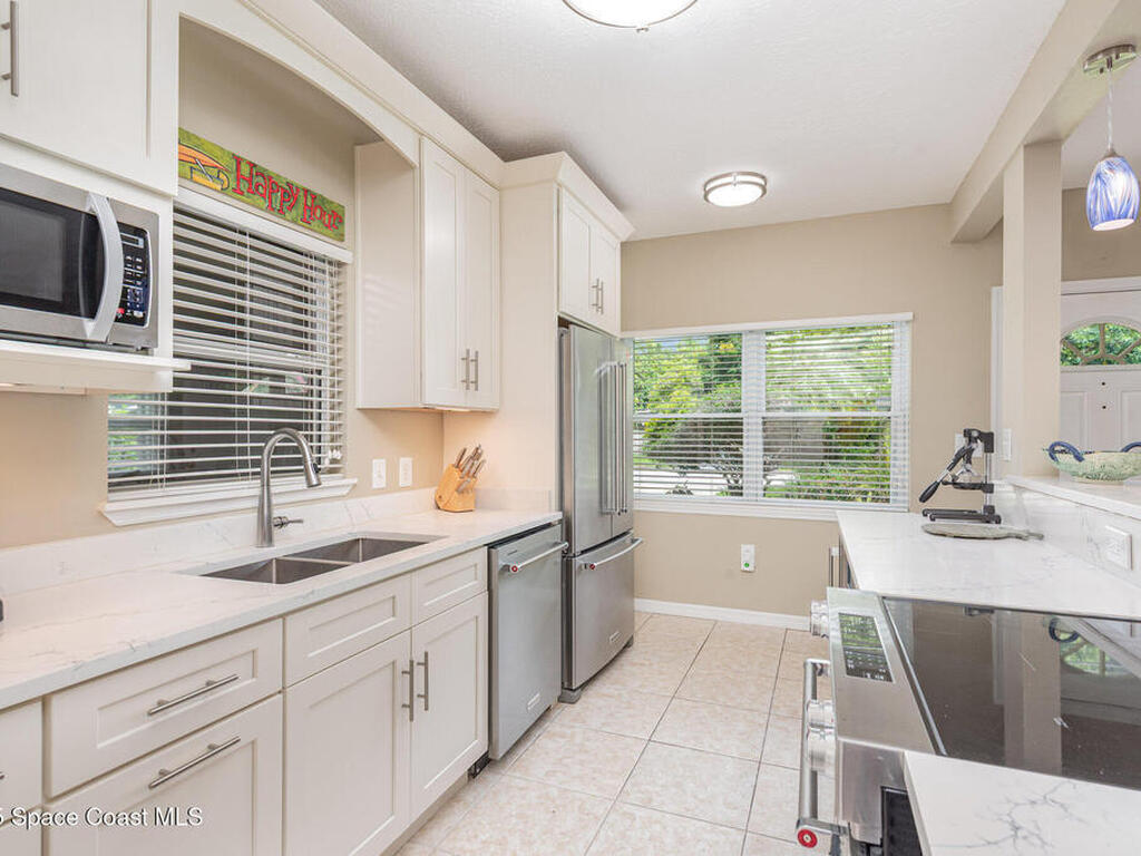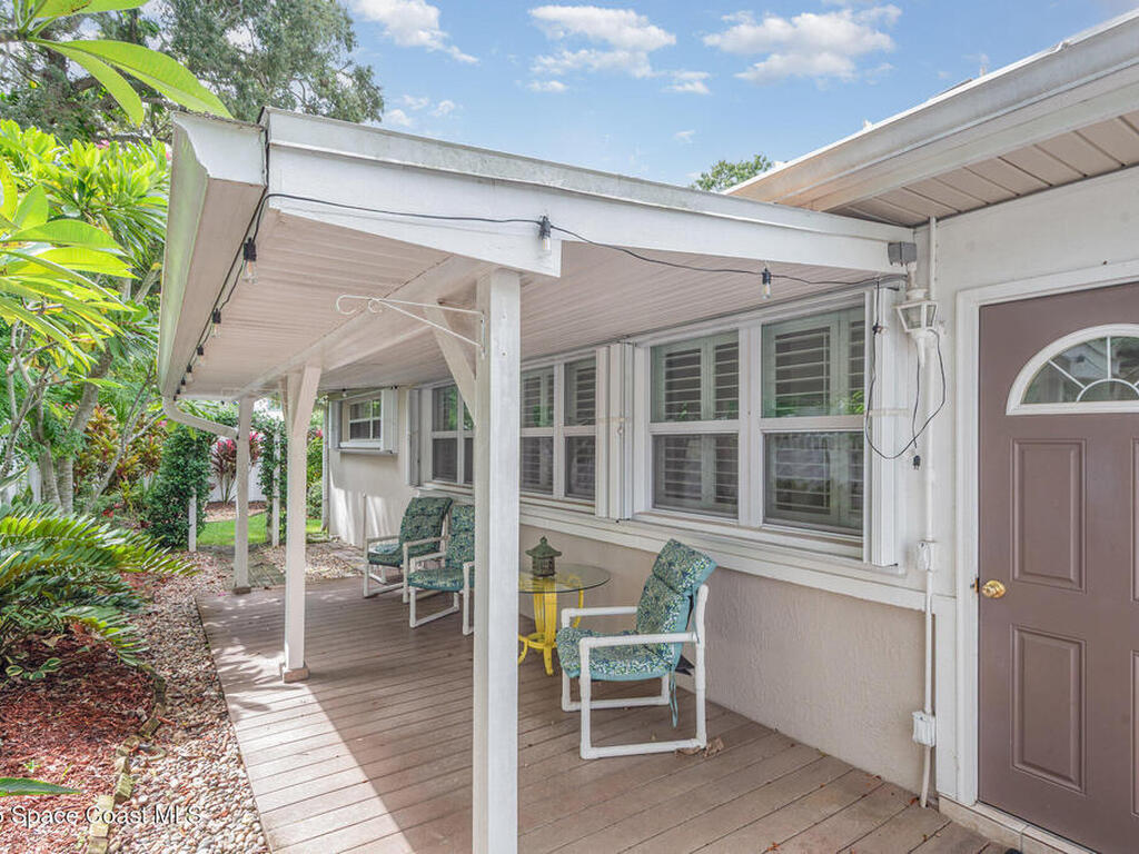 This beautiful 3-bedroom, 2-bathroom home in the historic Rockledge District is a stunning blend of classic charm and modern updates. The property has been meticulously maintained and recently upgraded, offering a truly turn-key experience. Inside, you'll find a light-filled, open space with 8'6'' ceilings. The custom-designed kitchen is a highlight, featuring new KitchenAid appliances, soft-pull cabinetry, and elegant Cambria quartz countertops. It also includes a built-in, two-zone wine refrigerator, perfect for entertaining. This home's infrastructure has been completely updated for peace of mind, with newer plumbing, electrical, and HVAC systems. The double-membrane metal roof, double-paned windows, and hurricane accordion shutters on all windows provide excellent storm protection, complemented by a whole-house Generac generator. The interior features fresh paint, luxury vinyl plank and tile flooring, and quality window treatments throughout.