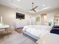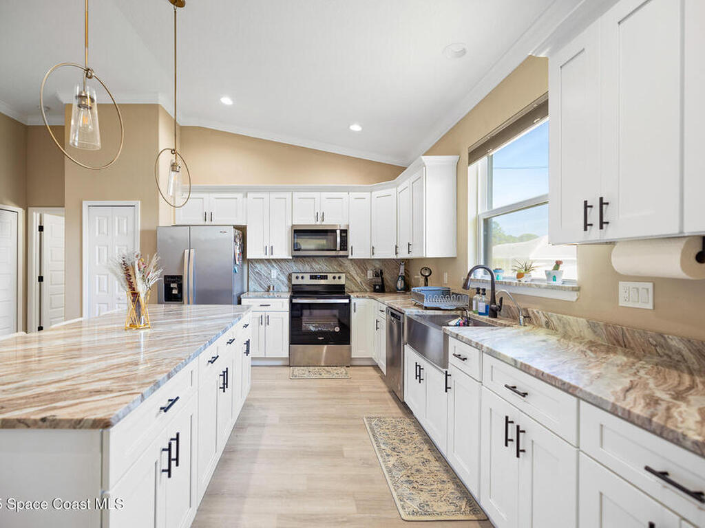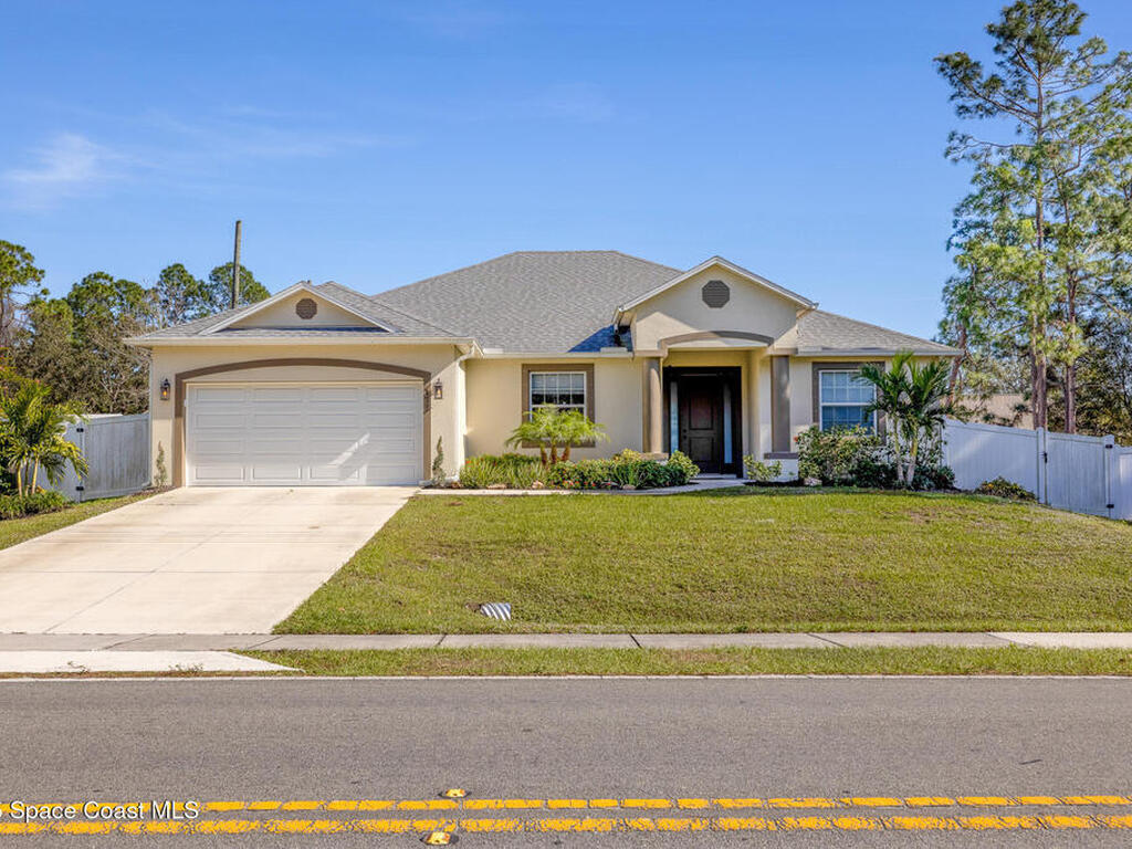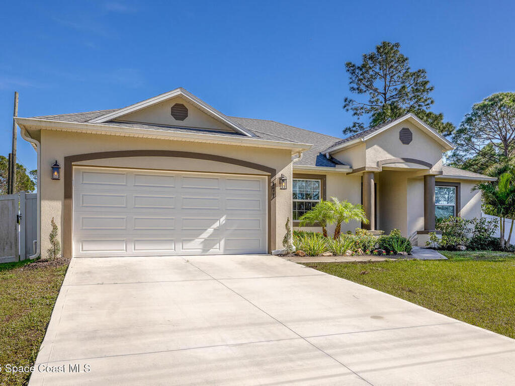 Welcome to this meticulously updated 4-bed, 3-full bath home built in 2022, offering a modern design with no detail overlooked. Step into an expansive family room, providing the perfect space for both relaxation and entertaining. The gourmet kitchen features a reverse osmosis system, custom cabinetry, upgraded granite countertops, and a large island with enhanced lighting. Designer tile flows throughout the home, creating a seamless and sophisticated look.Additional highlights include a water softener system, epoxied garage floor, newly fenced backyard, upgraded window treatments and ceiling fans. With high ceilings and no carpeting, this home boasts a bright and open floor plan that is perfect for daily living and hosting guests. The primary suite provides dual sinks, a spacious shower and two oversized closets. No HOA, minutes from a brand-new Publix shopping center, don't miss out on this beautifully upgraded, new home! Furniture negotiable for a turn key option.
