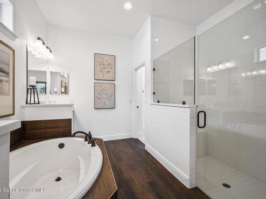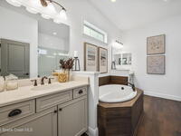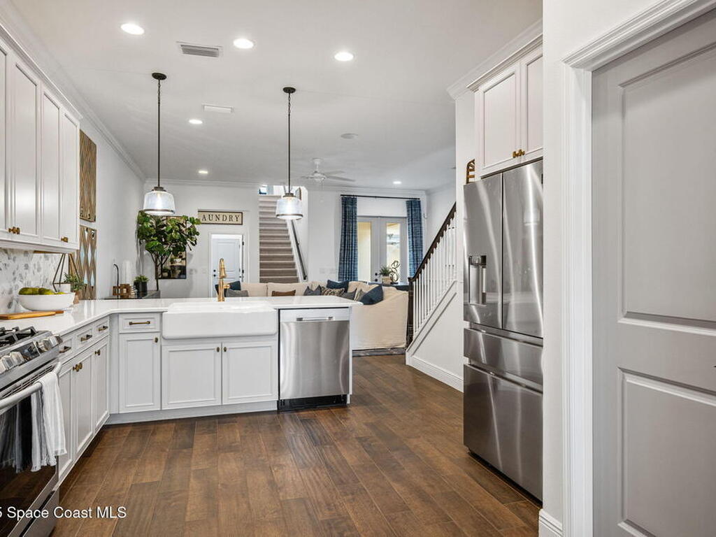 * FANTASTIC OPPORTUNITY * FORMER MODEL HOME & HAS NEVER BEEN LIVED IN * LOADED With UPGRADES * This stunning Spanish Colonial-inspired home evokes a sense of timeless romantic charm. The Kitchen is stylishly appointed w/Maple Glazed cabinets, quartz countertops, built in refrigerator, gas range, farmhouse sink, bronze hardware, walk-in pantry with formal dining room adjacent. Down the hall is the wine nook with wine chiller - so chic! The Primary Suite is conveniently located on the first floor, featuring picturesque windows that invite the beauty of the outdoors in. The luxurious ensuite includes double vanities, a soaking tub, a walk-in shower, and a spacious walk-in closet. Beside three other bedrooms, the home features a bonus room w/4th bath, media center, Laundry room with tub, oversized 2 car garage with golf cart option, and a spacious, fenced in paver courtyard with lanai and pergola creating a private tropical oasis. HOA covers lawn care, irrigation and exterior painting!