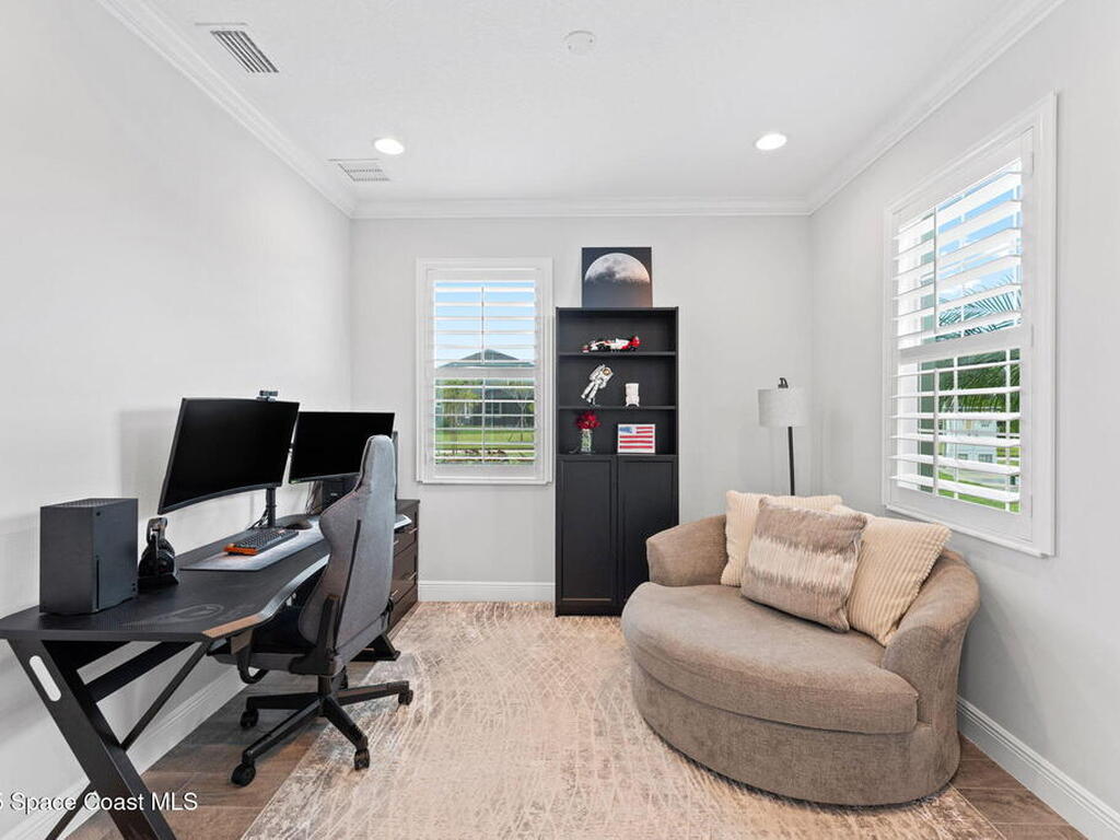 Welcome to your 4 bedroom + office, 3.5 bath slice of Viera fabulousness! This home is rocking an open floor plan (Acacia) with 8' doors, plantation shutters, quartz counters, and a kitchen island big enough to host all your friends - or at least the ones who bring wine. Gas range? Check. Sunny breakfast nook? Double check. Walk-in closets and smart upgrades (thermostat, security system, tankless water heater) keep life equal parts stylish and stress-free. Throw legendary BBQs on the oversized screened patio with electric awning while the fenced backyard keeps the party contained. Extended driveway plus oversized 2-car garage = room for cars, toys, and yes, bragging rights. Community amenities, A-rated schools, shopping, and dining are just minutes away, so basically, your social calendar fills itself. This isn't just a house, it's your lifestyle glow-up. Your Viera paradise is calling...are you picking up?