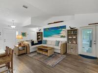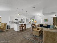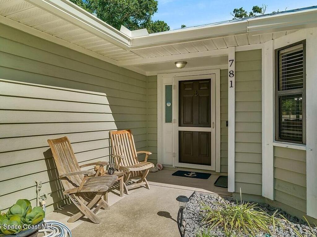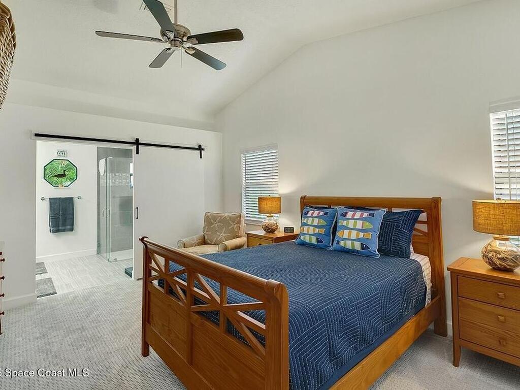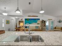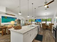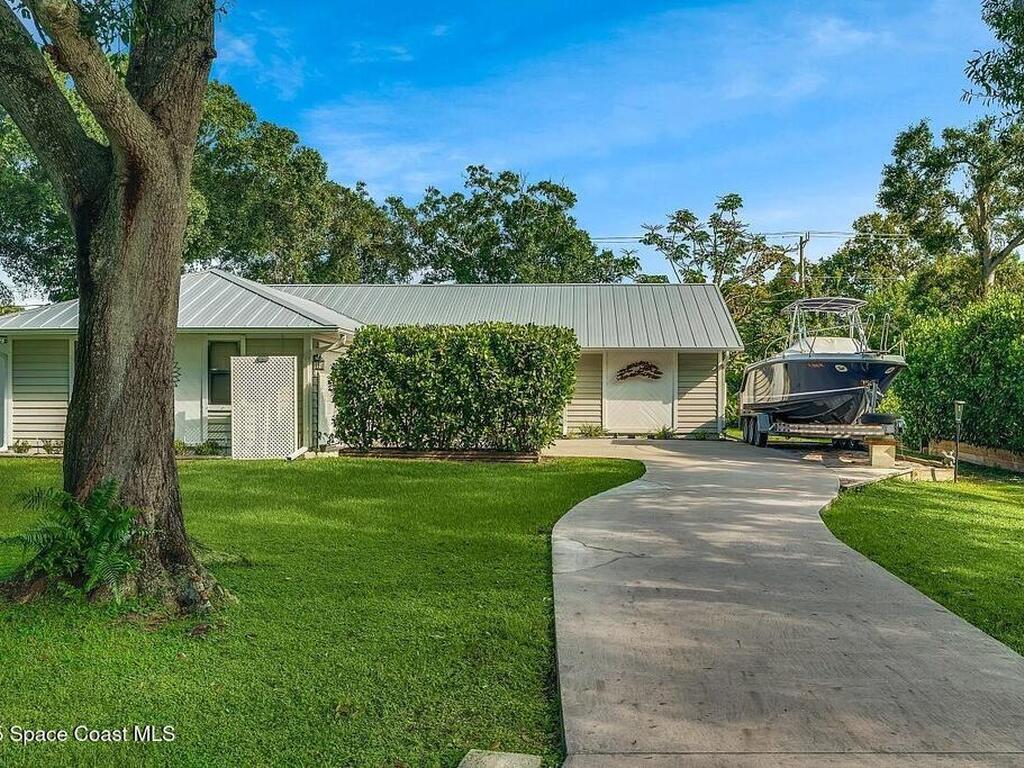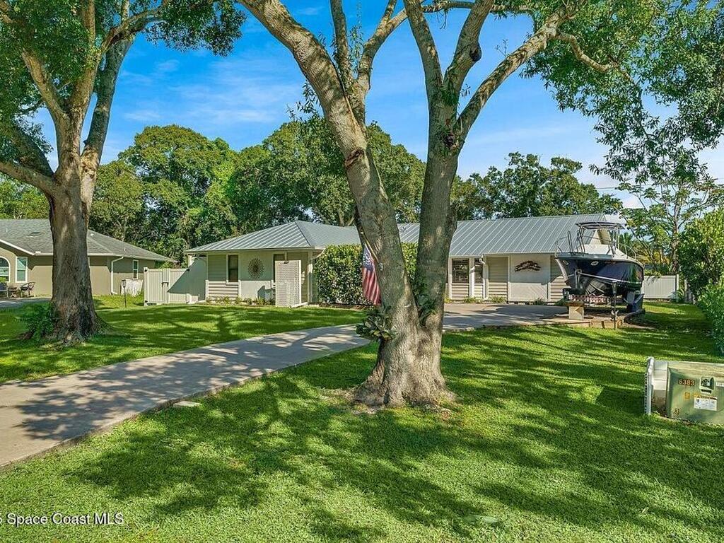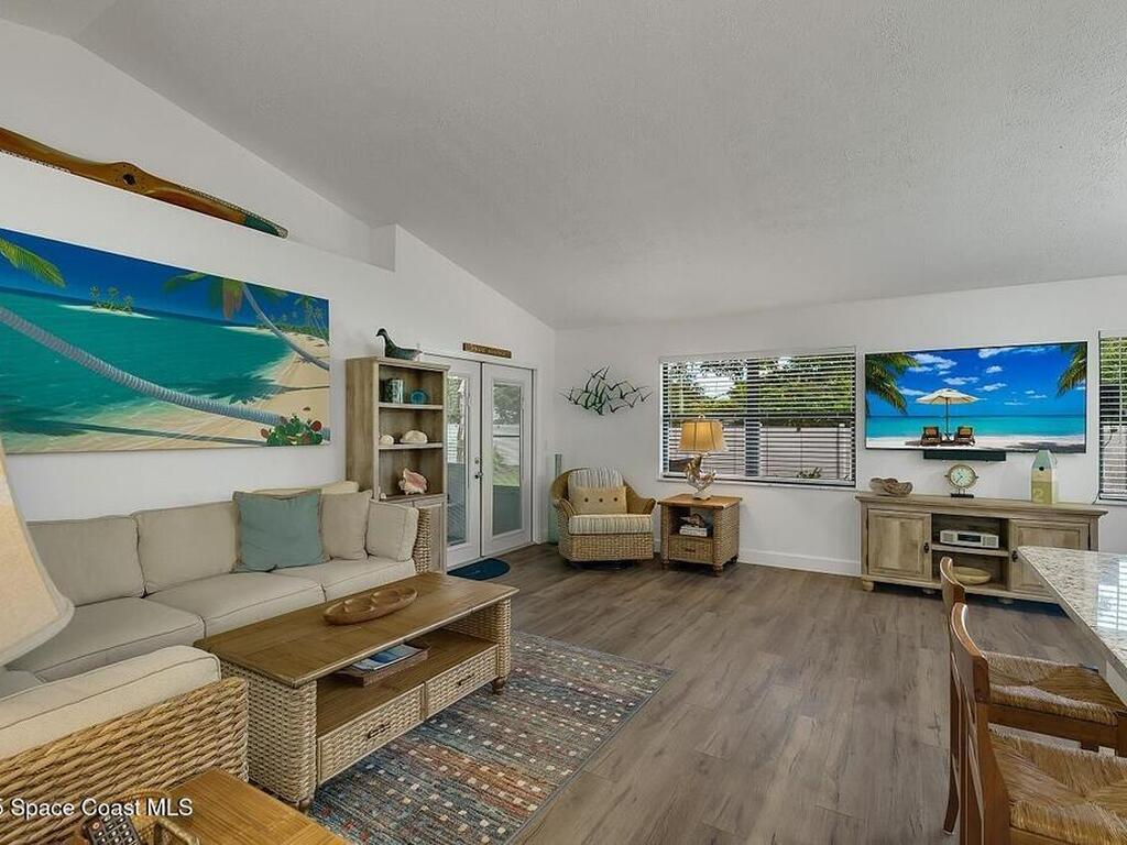 Experience Florida living at its finest in this 3-bed, 2-bath coastal dream home. Upgraded from top to bottom with a desirable split floor plan & vaulted ceilings. Open layout creates a bright, airy feel. The modern kitchen has crisp white cabinetry, granite counters, bar seating with massive island & stainless steel appliances. French doors open to a screened patio, perfect for relaxing or entertaining in the backyard. The primary suite features dual vanities, vaulted ceiling, a huge tiled full glass shower & built in closet shelving. 2020 standing seam metal roof, 2020 water heater & 2013 AC