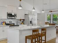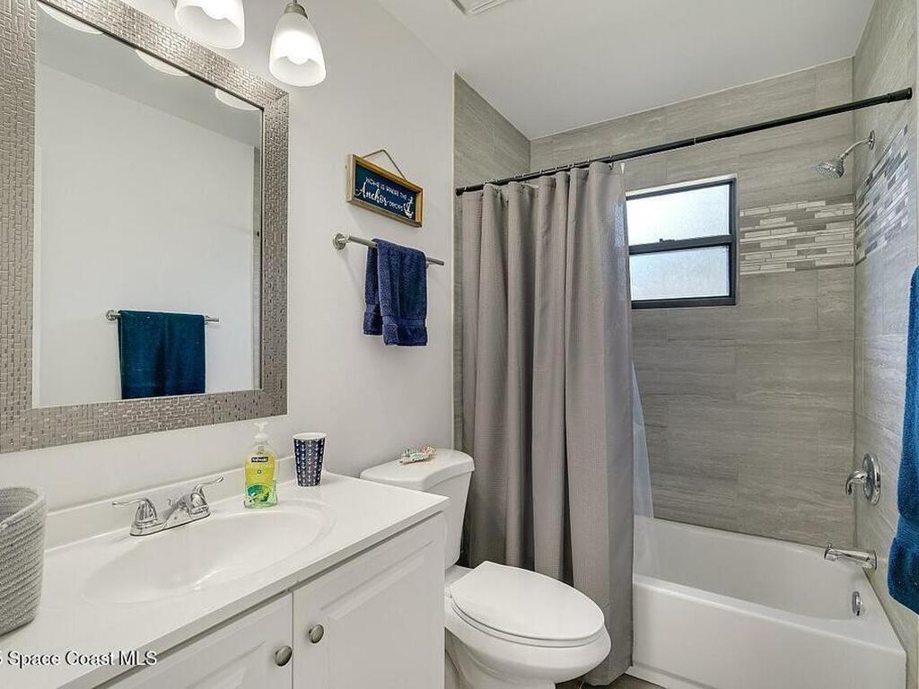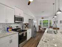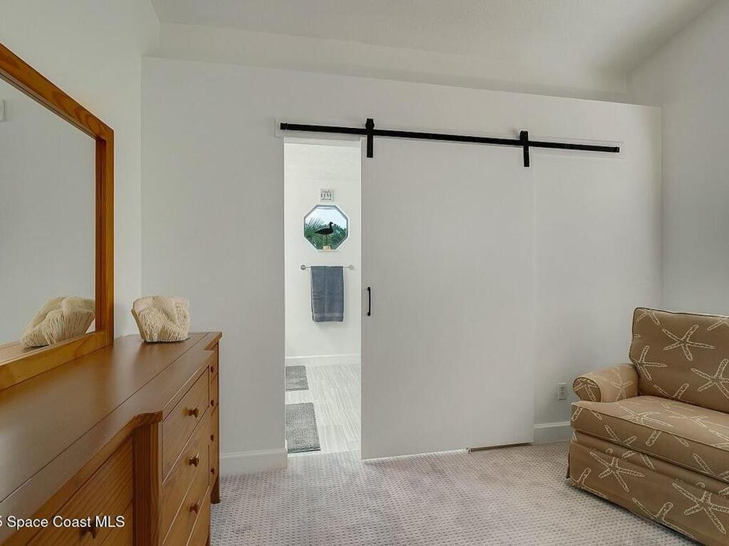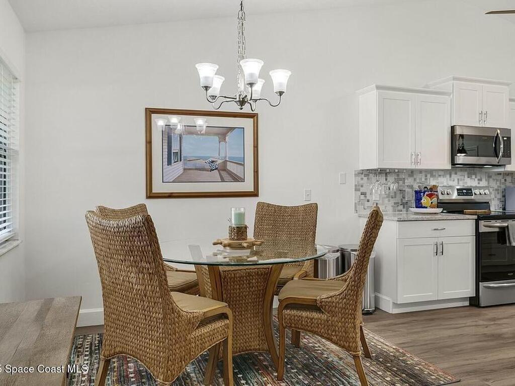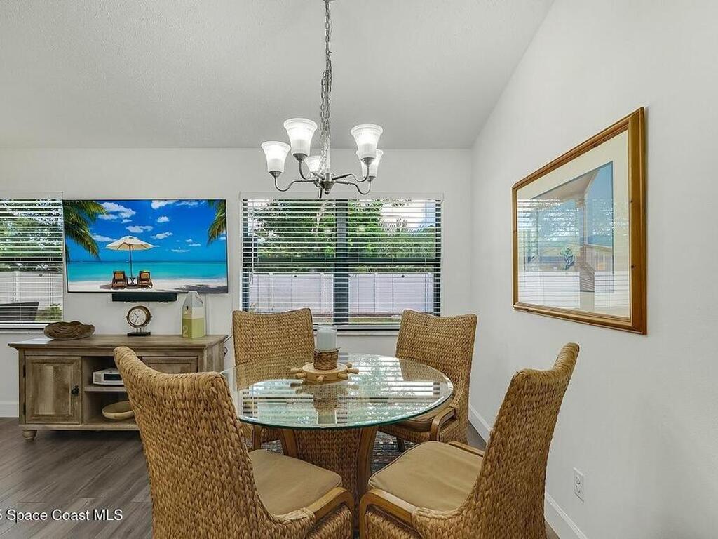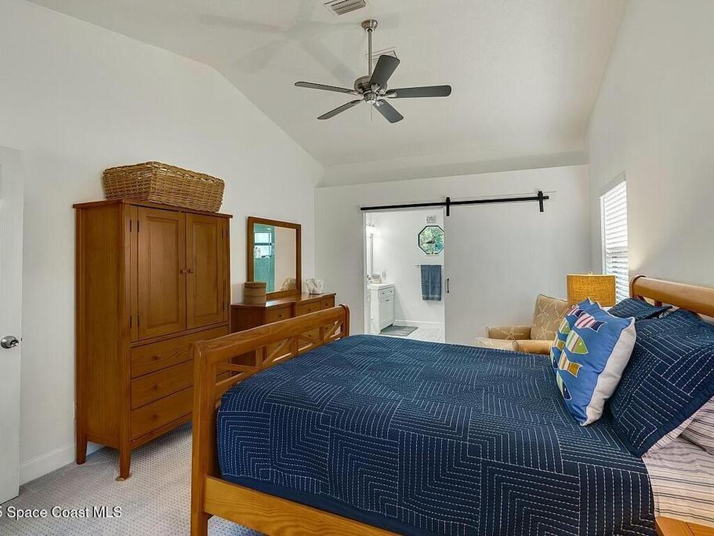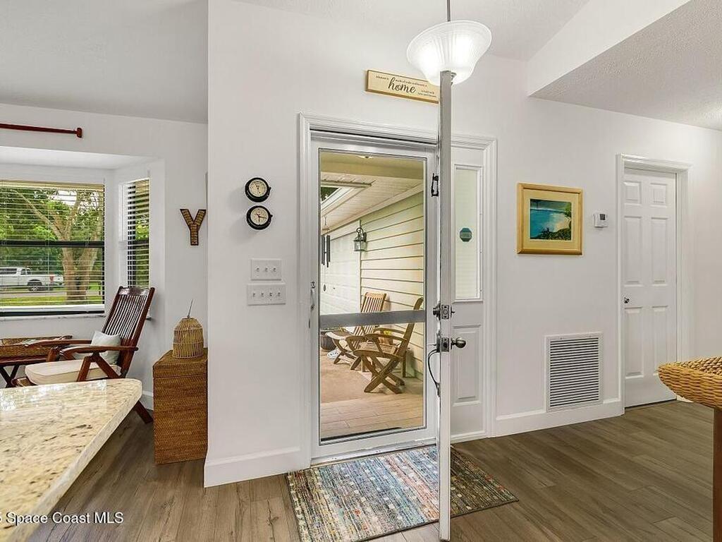 Experience Florida living at its finest in this 3-bed, 2-bath coastal dream home. Upgraded from top to bottom with a desirable split floor plan & vaulted ceilings. Open layout creates a bright, airy feel. The modern kitchen has crisp white cabinetry, granite counters, bar seating with massive island & stainless steel appliances. French doors open to a screened patio, perfect for relaxing or entertaining in the backyard. The primary suite features dual vanities, vaulted ceiling, a huge tiled full glass shower & built in closet shelving. 2020 standing seam metal roof, 2020 water heater & 2013 AC