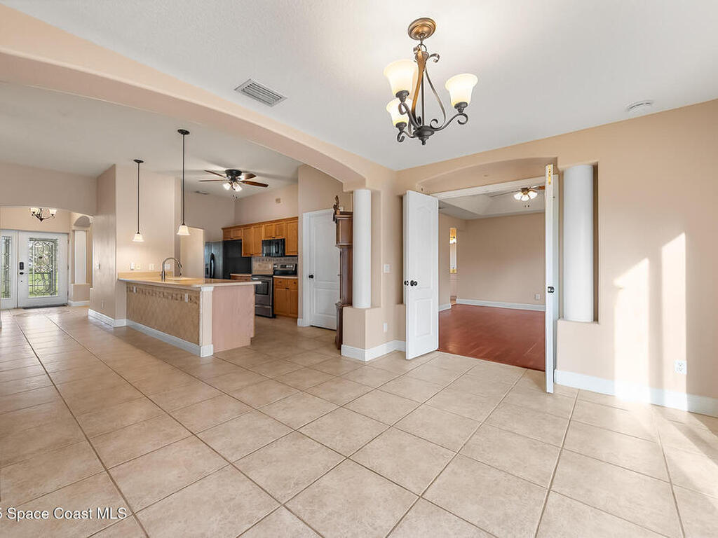 Welcome to this beautifully maintained 4 bedroom, 2 bathroom home offering serene views and a thoughtfully designed open floor plan. This home includes a formal living room and dining room--perfect for entertaining--as well as a huge eat-in kitchen with ample cabinet and counter space, ideal for any home chef. The primary suite is a true retreat, featuring double door entry, tray ceilings, a large walk-in closet, and an ensuite bath with a Jacuzzi tub, linen closet, and separate shower. The laundry room is conveniently located off the kitchen and includes a utility area and additional storage. Outdoor highlights: Multiple mature fruit trees: Glenn Mangoes, Everbearing Mulberry, Suriname Cherry, Jaboticaba, Blue Java Banana Trees, Red & White Dragon Fruit. Irrigation is on well water to keep the yard lush! This unique property combines comfort, efficiency, and natural beauty -- a must-see for those seeking space and sustainability!