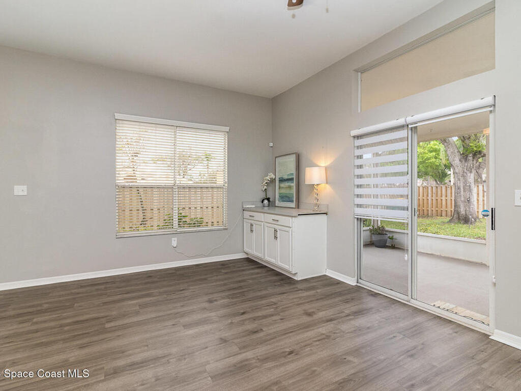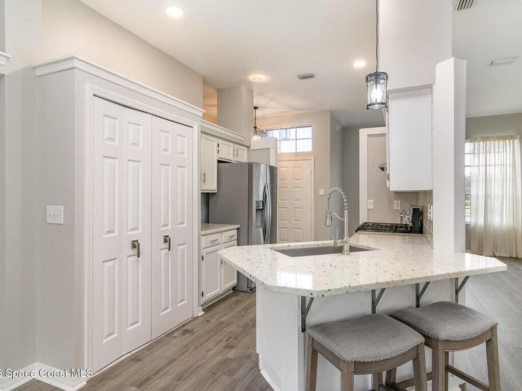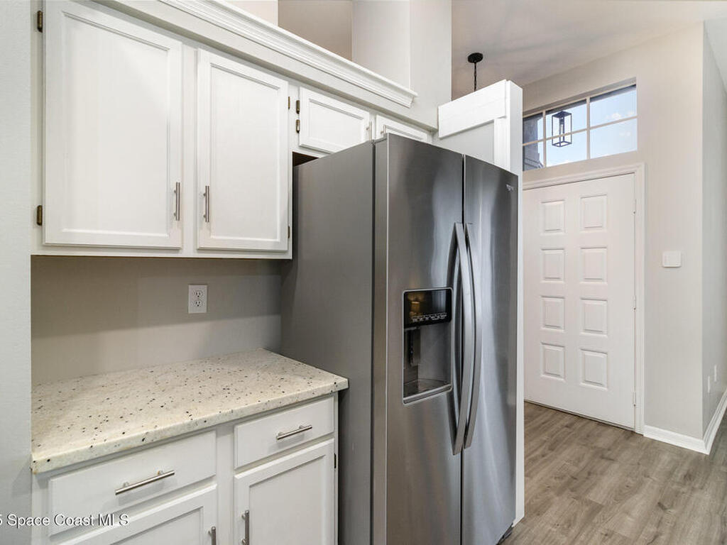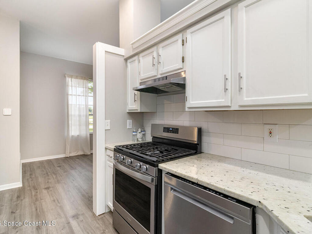 Beautifully updated 3BR/2BA home located in the heart of Viera. This move-in-ready property features luxury vinyl plank flooring throughout, energy-efficient LED lighting, and a modern kitchen with stainless steel appliances, GAS RANGE, granite countertops, and stylish cabinetry. Both bathrooms have been fully renovated with updated vanities, tiled showers and floors, and new commodes.Enjoy a private, fenced backyard with a wood deck and party lights--perfect for entertaining or relaxing outdoors. Additional features include an indoor laundry area with washer and dryer included, EV plug in the garage, Ring doorbell, and an optional alarm system. Lawn care is included. Owner will consider one small dog.Community amenities include a park at the entrance and a walking trail leading to Woodside Park and Pieloch Dog Park. Conveniently located near shopping, dining, major highways, and the beaches. Don't miss this exceptional Viera home