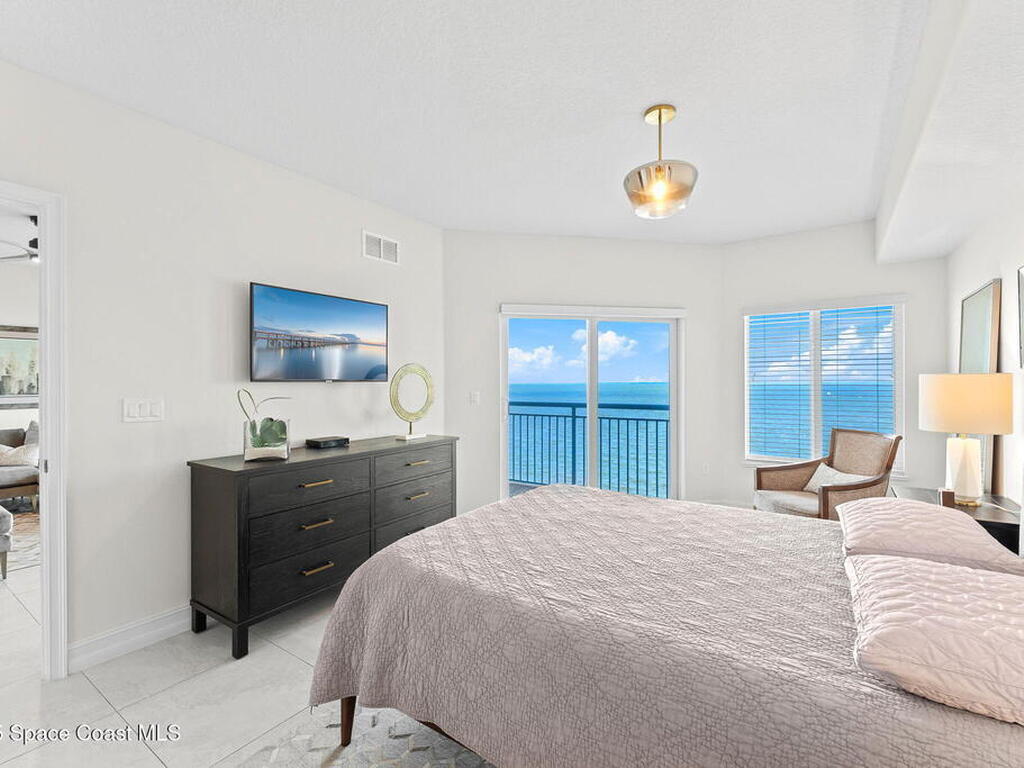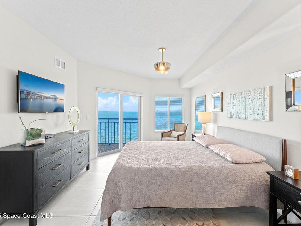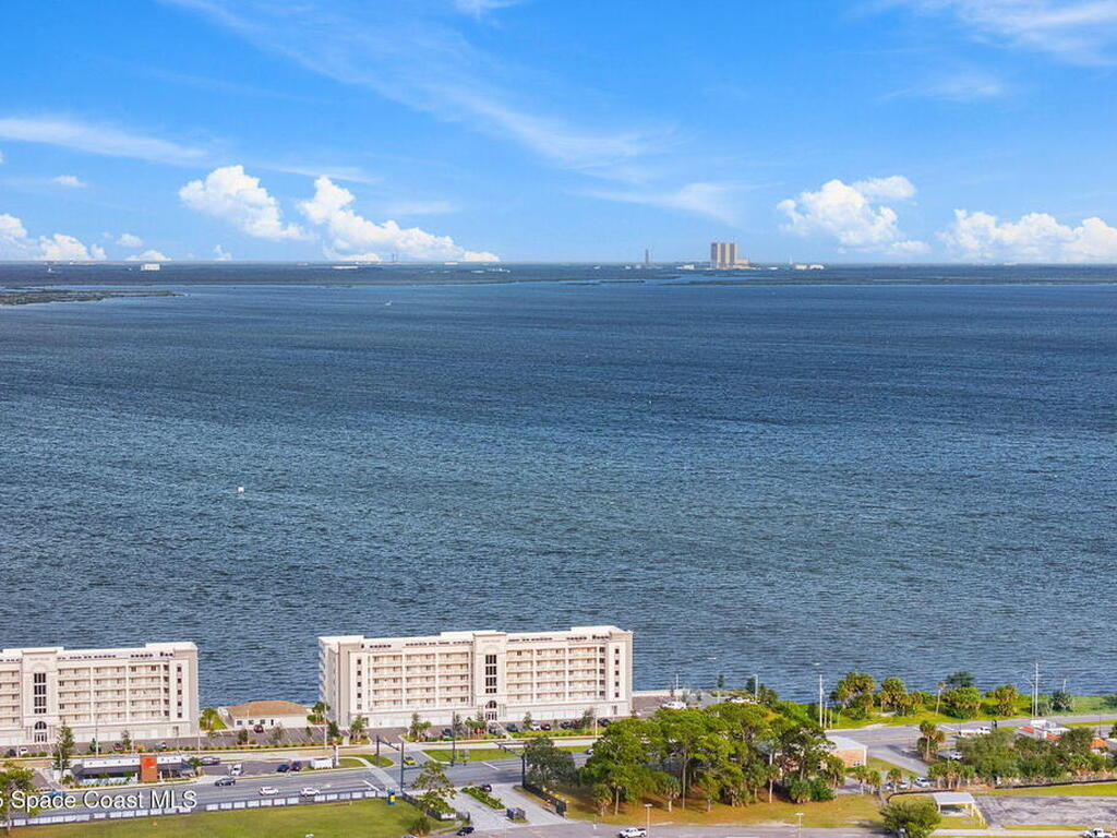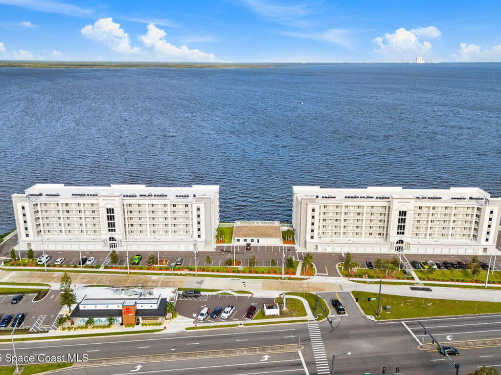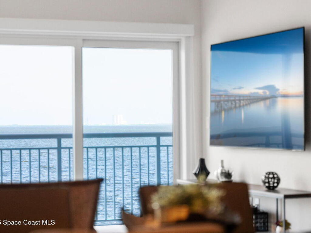 Luxury River Palms Riverfront Community on Florida's prestigious Space Coast in Titusville! Exquisite furnished Waterfront condo with breathtaking sunrises above the Indian River and views to spectacular rocket launches, and dolphins and manatees playing right beneath your balcony. Features gourmet kitchen with premium cabinetry and fixtures, oversized countertops, marble mosaic and high-end appliances. Upgraded bathrooms and laundry include designer cabinets, sinks and fixtures. Offered furnished with exquisite taste, featuring interiors from Ethan Allen, Scan Design, West Elm, Pottery Barn, CB2, and Tempur-Pedic. Includes two covered parking spaces (#11 indoor and #56 private garage). Minutes commute to Kennedy Space Center; walking distance to Titus Landing shopping, dining, and entertainment. Move into your gorgeous new Space Coast home just in time to witness history with the upcoming Artemis II Launch!