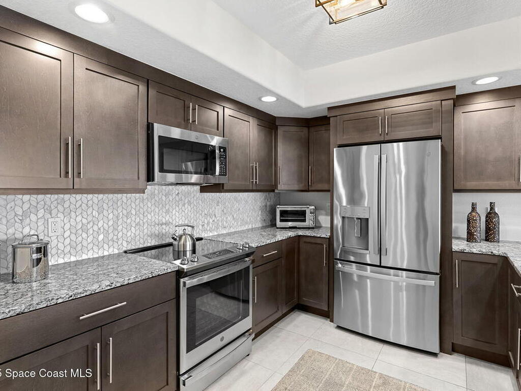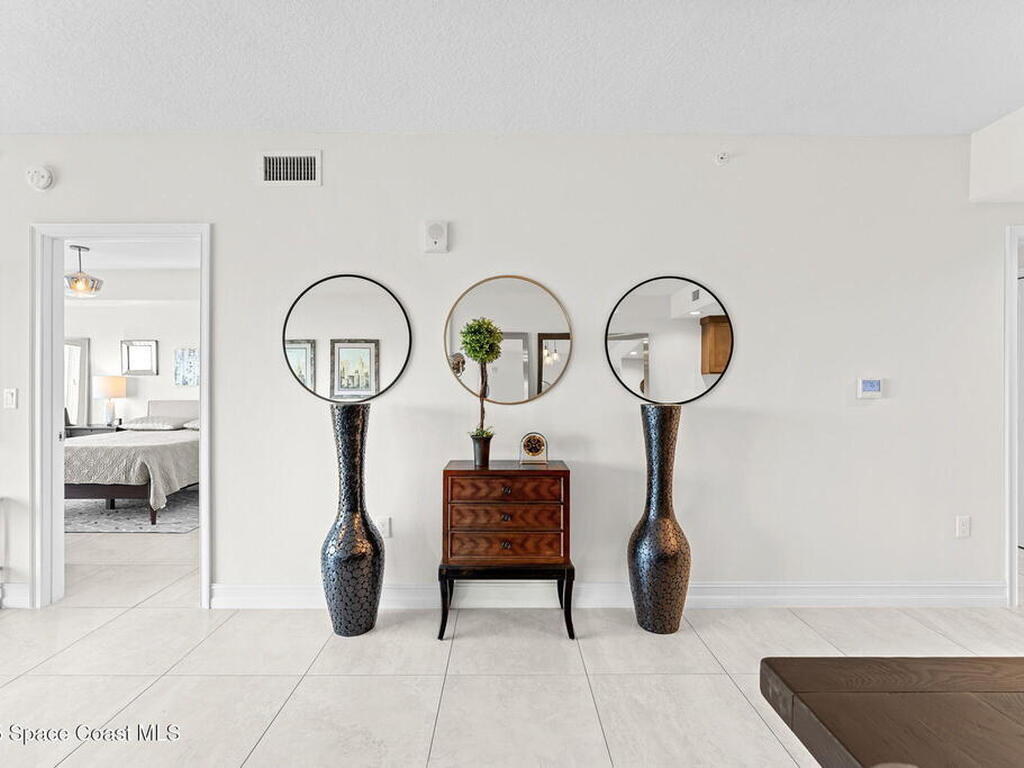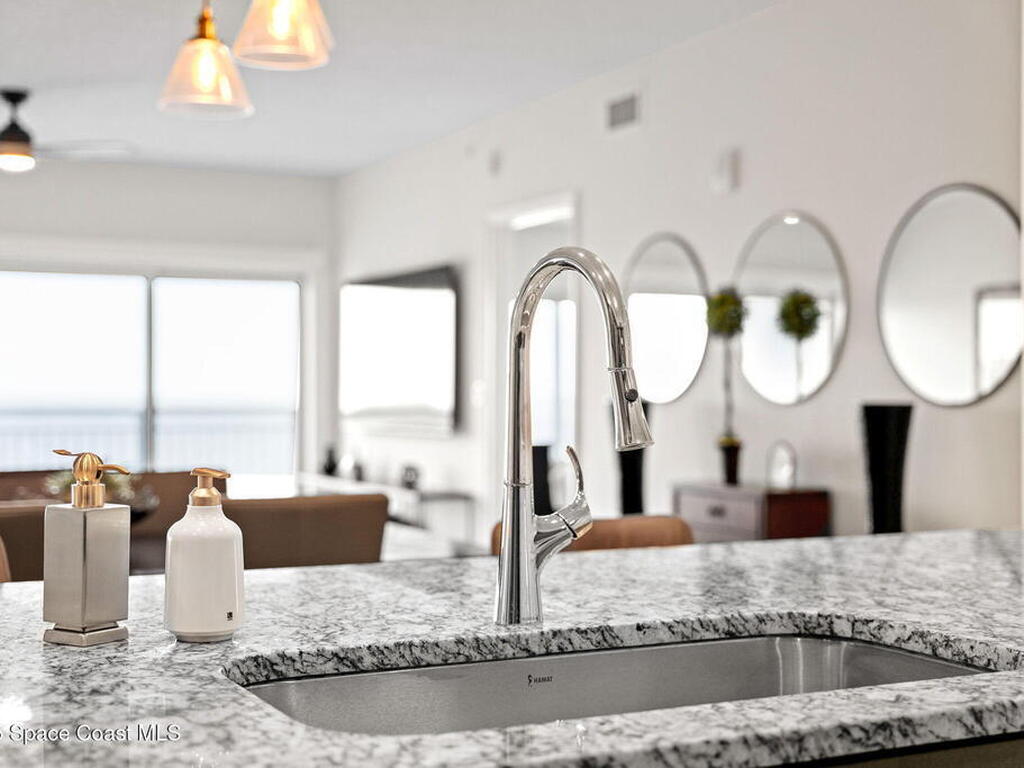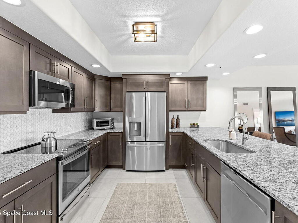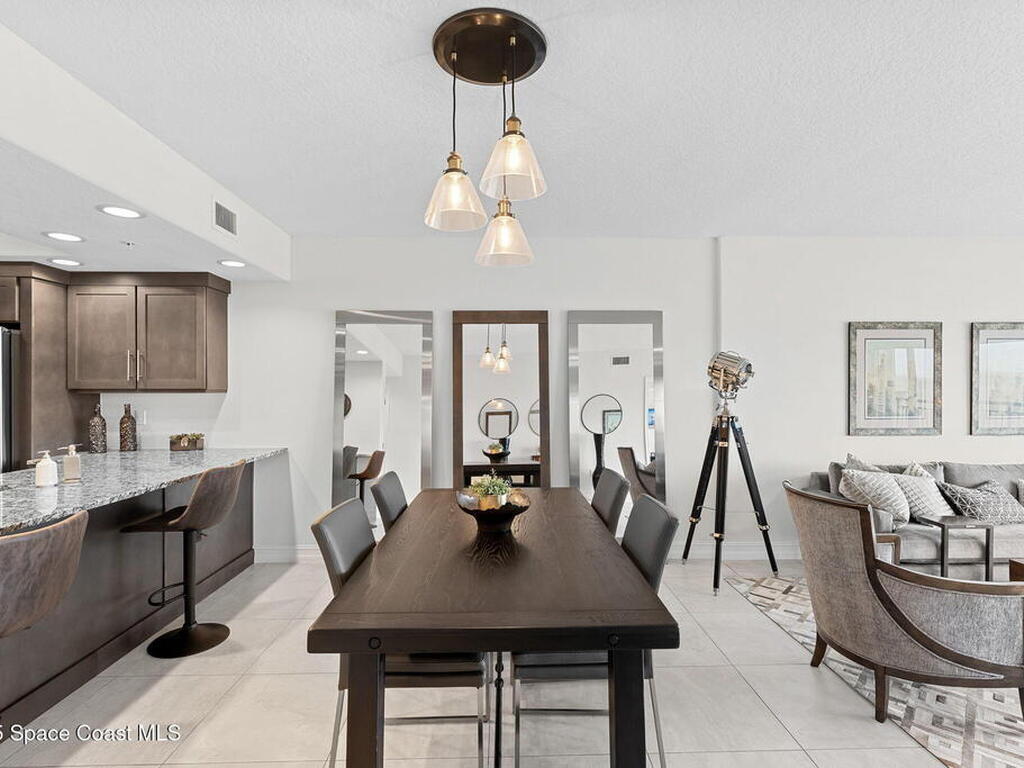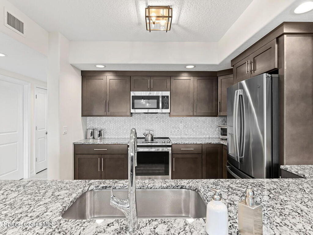 Luxury River Palms Riverfront Community on Florida's prestigious Space Coast in Titusville! Exquisite furnished Waterfront condo with breathtaking sunrises above the Indian River and views to spectacular rocket launches, and dolphins and manatees playing right beneath your balcony. Features gourmet kitchen with premium cabinetry and fixtures, oversized countertops, marble mosaic and high-end appliances. Upgraded bathrooms and laundry include designer cabinets, sinks and fixtures. Offered furnished with exquisite taste, featuring interiors from Ethan Allen, Scan Design, West Elm, Pottery Barn, CB2, and Tempur-Pedic. Includes two covered parking spaces (#11 indoor and #56 private garage). Minutes commute to Kennedy Space Center; walking distance to Titus Landing shopping, dining, and entertainment. Move into your gorgeous new Space Coast home just in time to witness history with the upcoming Artemis II Launch!