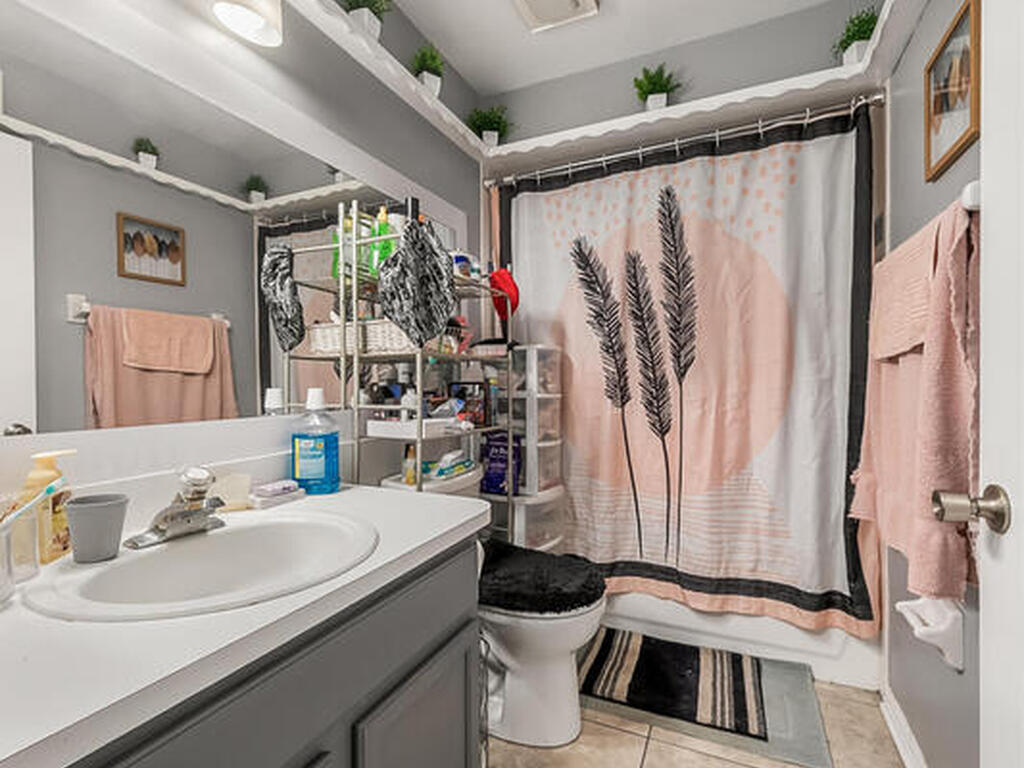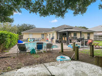 Spacious 4-bedroom pool home on a wooded lot with vaulted ceilings and an open layout. Features a privacy-fenced yard, sparkling resurfaced pool, wood deck shaded by a large oak, and updated kitchen appliances. Wood and tile floors in main areas, carpeted bedrooms, bonus room, and indoor utility room. Conveniently located near I-95, shopping and the airport. New roof 2018. Easy to show.