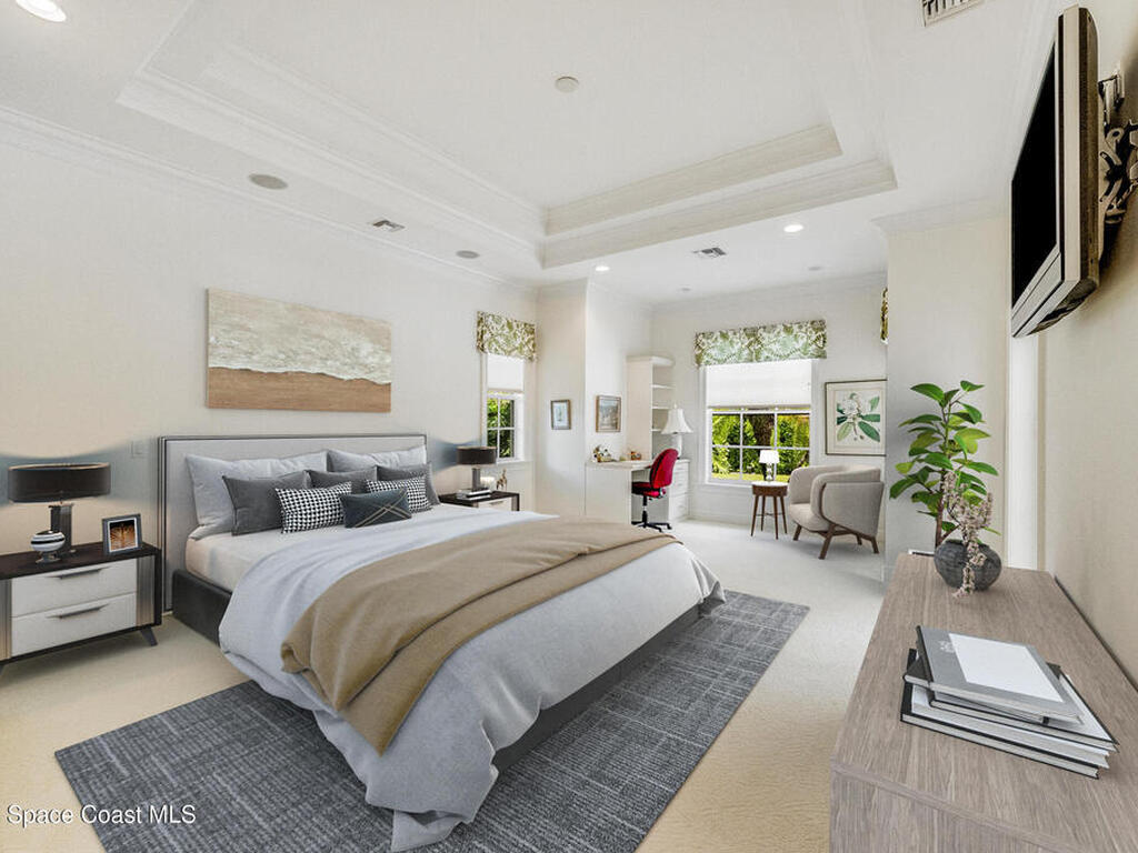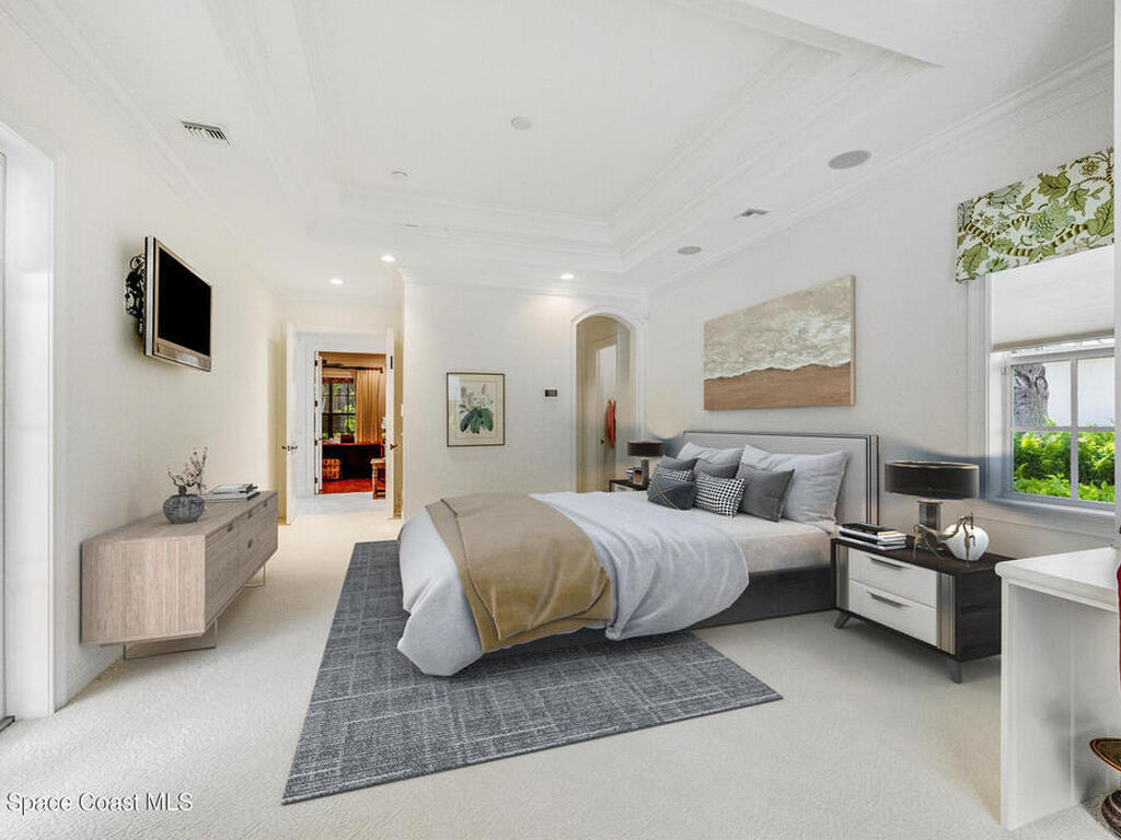 Beautiful Carriage home in Palm Island Plantation, blending West Indies architectural elegance with 'Old Florida' charm. Situated on an oversized lot, 3000 + sq ft, split plan, 3 ensuite bedrooms, half bath, 2019 standing seam metal roof, separate office, pool, and fireplace are only a few of the custom features.This river to ocean community has two (2) pools, (oceanfront & main), fitness center and a Beach Club. An open eat in kitchen features a sub-zero refrigerator, high end appliances, and beverage cooler, An additional dining area with abundant light cascades the shimmering pool and backyard view.
