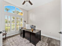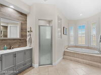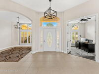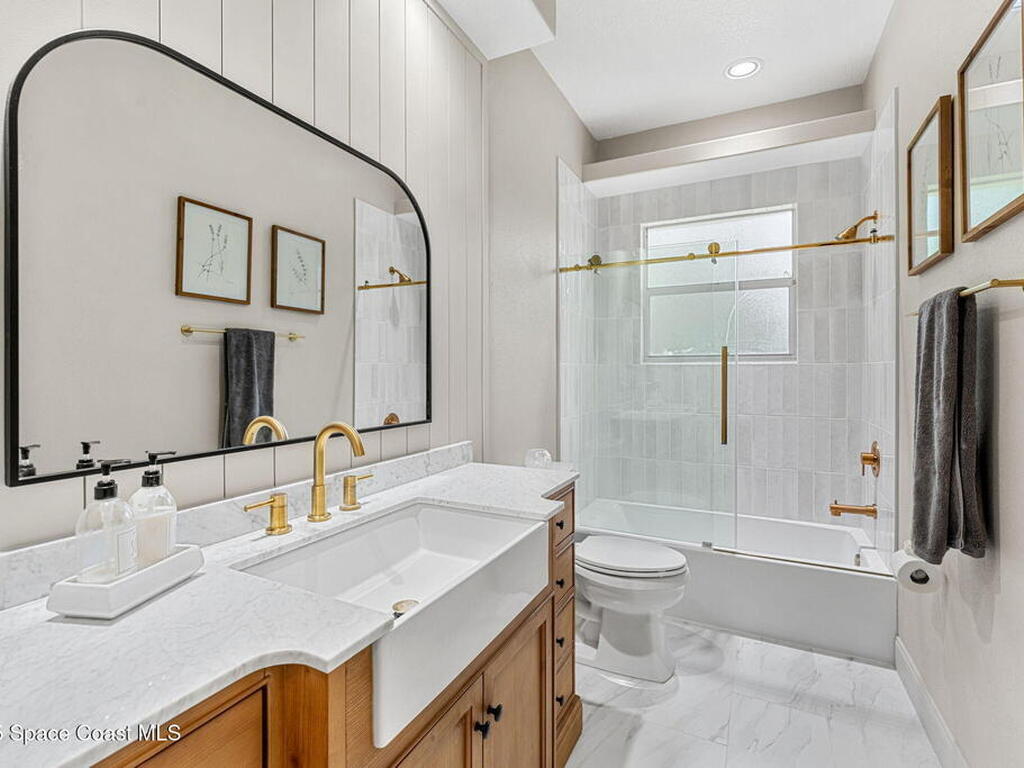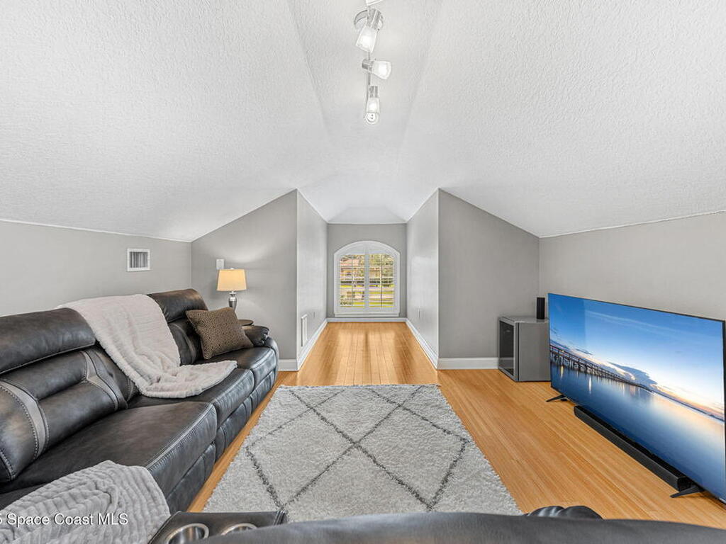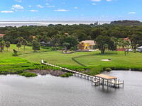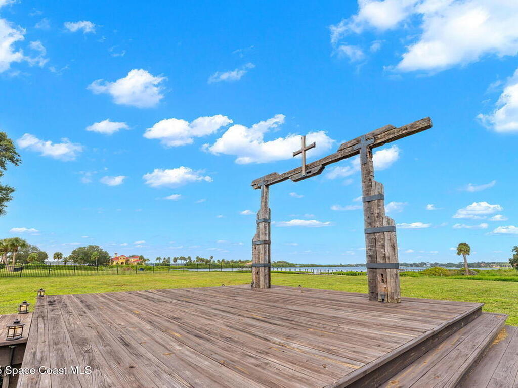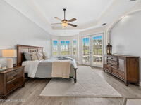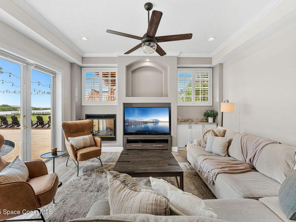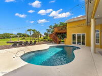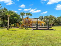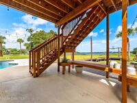Luxury living awaits you in this one-of-a-kind Merritt Island Estate. Boasting over 2 acres of property, this pool home is situated on Honeymoon Lake, providing breathtaking views and direct access to the Indian River. The owner's suite is complete with double walk-in closets, separate tub & shower, and dual vanities. Tall white cabinets, granite countertops & backsplash, and stainless steel appliances give the kitchen a bright and sleek look while the breakfast bar, kitchen island, and ample countertops make it perfect for hosting. Two separate upstairs areas provide flexibility for your lifestyle, allowing you to use them as extra bedrooms, gyms, or bonus rooms. Whether from the balcony or from the solar-heated pool, the backyard's northern exposure allows for stunning views of sunrise and sunset. With 2018 barrel tile roof, two new HVACs, and a boat lift already in place, this home is truly turnkey, all you need to do is pull up in the boat!
