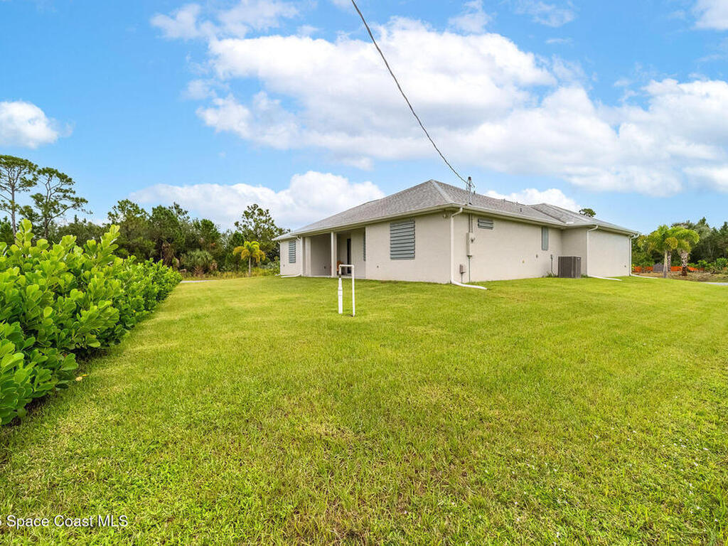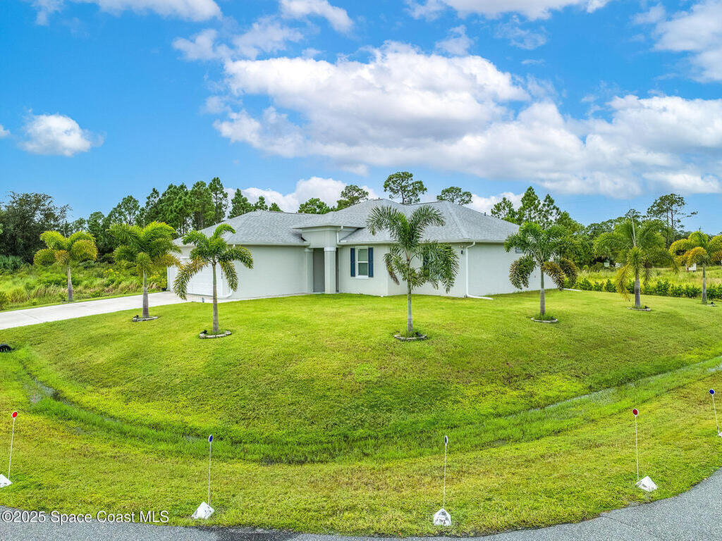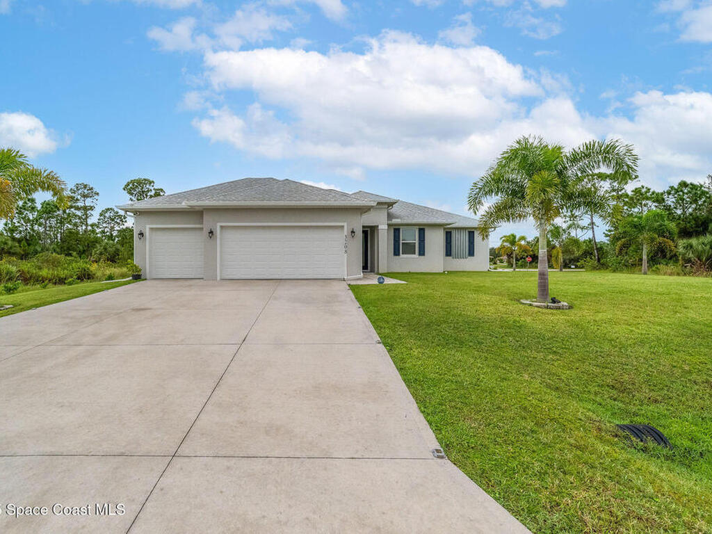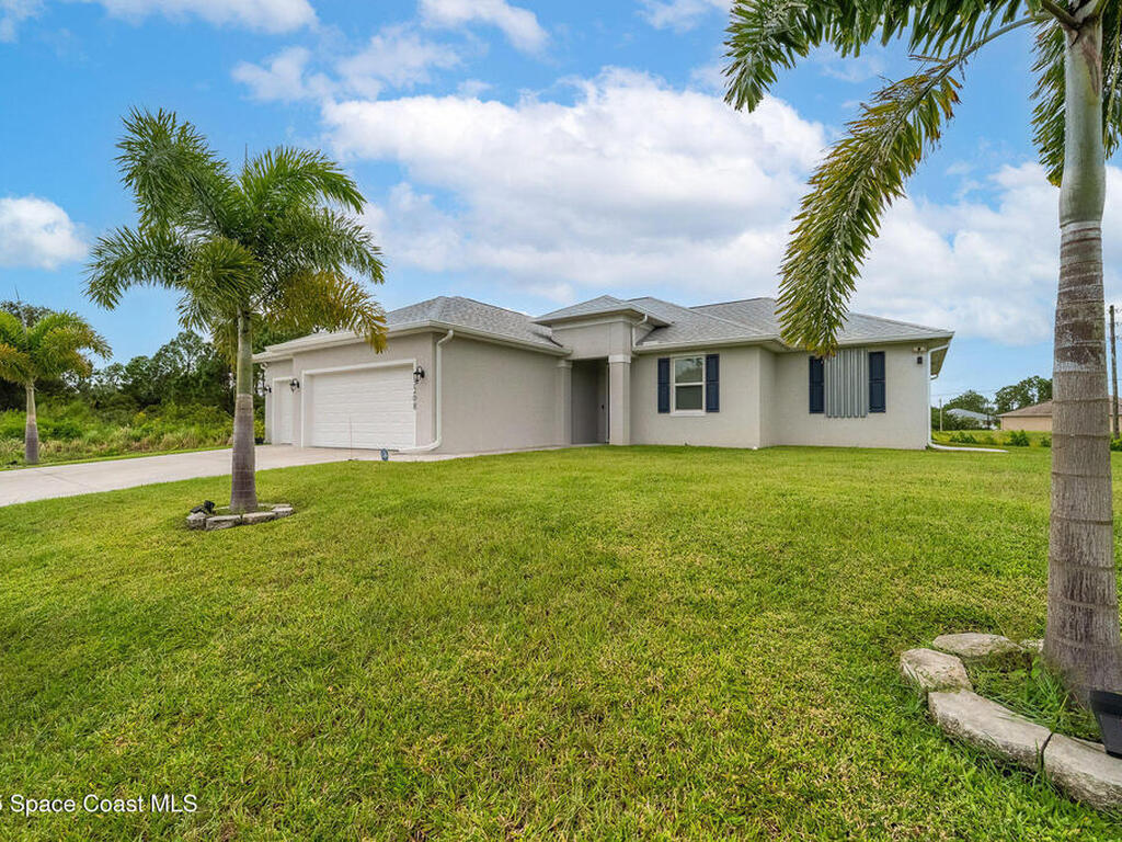 You can't miss this stunning 2021 custom-built home in Southeast Palm Bay on a large lot! Tucked away in a peaceful, quiet neighborhood, this super clean home features an open floor plan filled with natural light that welcomes you the moment you step inside. A bonus room provides the perfect space for a home office, playroom, or creative studio. The third bedroom had a second door added for extra convenience and privacy!! The 3-car garage offers ample space for vehicles, tools, and toys, with additional attic storage for seasonal items. Love to cook? The gourmet kitchen is a chef's dream with granite countertops, custom backsplash, generous cabinet space with soft close doors and drawers, and a reverse osmosis system for clean, fresh drinking water. Modern, stylish, and move-in ready--this home truly has it all. Don't wait to make it yours!!