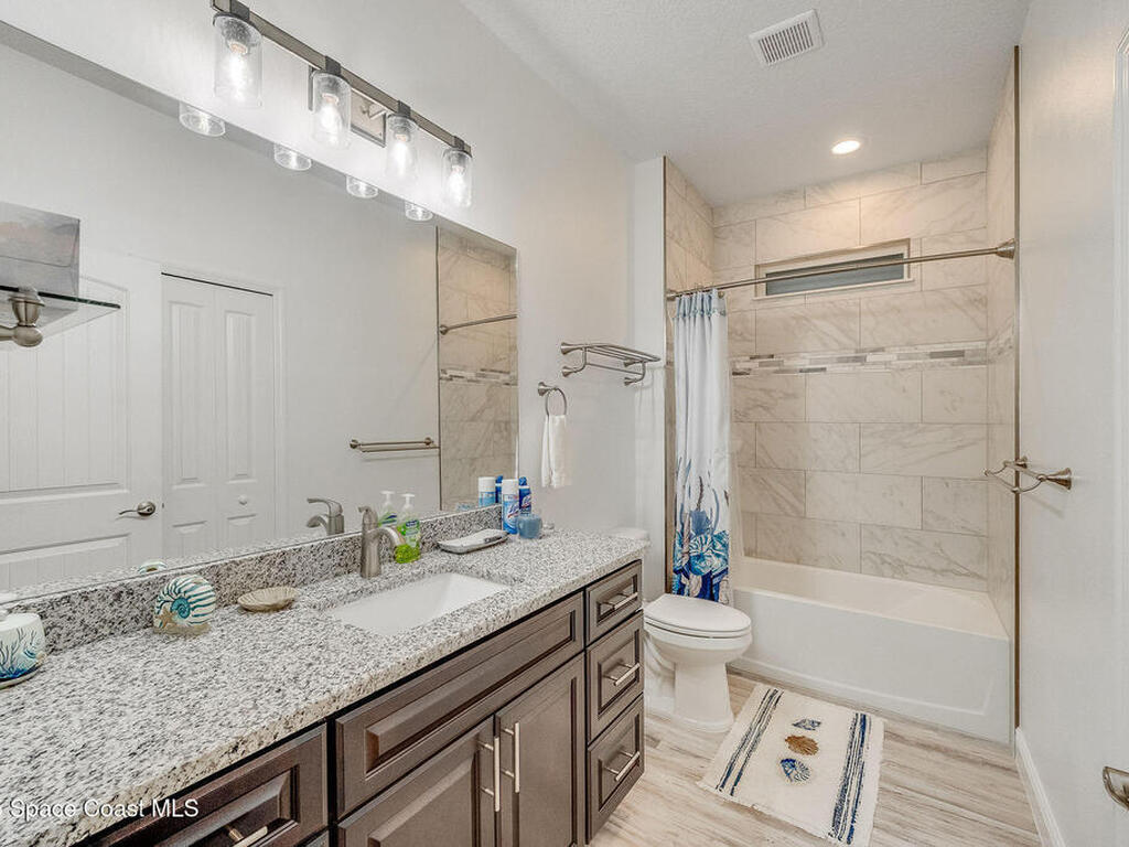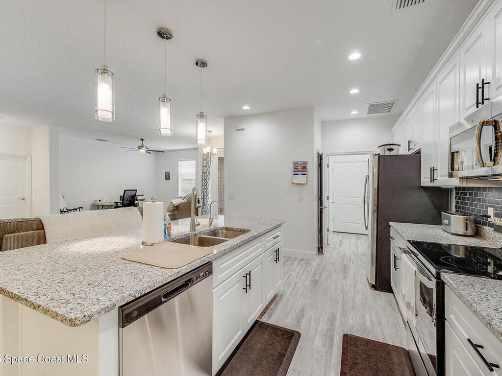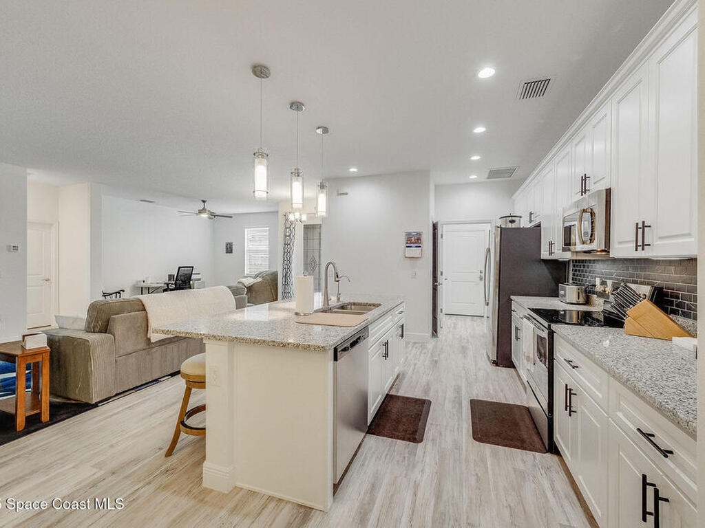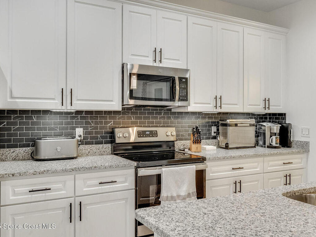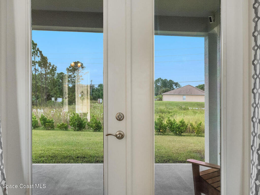 You can't miss this stunning 2021 custom-built home in Southeast Palm Bay on a large lot! Tucked away in a peaceful, quiet neighborhood, this super clean home features an open floor plan filled with natural light that welcomes you the moment you step inside. A bonus room provides the perfect space for a home office, playroom, or creative studio. The third bedroom had a second door added for extra convenience and privacy!! The 3-car garage offers ample space for vehicles, tools, and toys, with additional attic storage for seasonal items. Love to cook? The gourmet kitchen is a chef's dream with granite countertops, custom backsplash, generous cabinet space with soft close doors and drawers, and a reverse osmosis system for clean, fresh drinking water. Modern, stylish, and move-in ready--this home truly has it all. Don't wait to make it yours!!