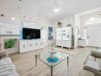Charming Updated Coastal Home. Move-In Ready! Welcome to this beautifully updated 3 bedroom, 2 bath coastal charmer, where comfort meets style in every detail. Step into a spacious screened porch that opens to a peaceful, low-maintenance backyard backing up to serene woods creating your own private garden oasis. Unwind in the hot tub on the patio and enjoy the quiet, calming atmosphere. Inside, you'll find thoughtful upgrades throughout, including luxury vinyl flooring, updated lighting and ceiling fans, refreshed kitchen cabinets with modern hardware, an added primary closet for extra storage, and a brand-new shower in the primary bath. Major systems have been recently updated too, with a new AC (2024) and roof (2023). This is a move-in ready gem that blends coastal charm with modern touches that is perfect for relaxing or entertaining. Come see it for yourself and fall in love!