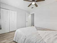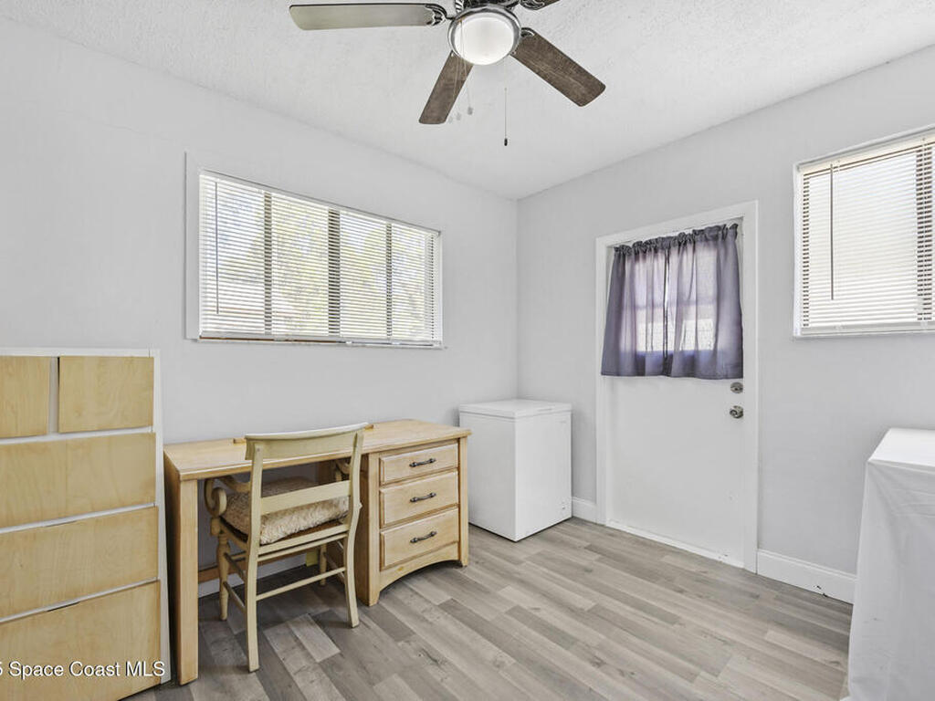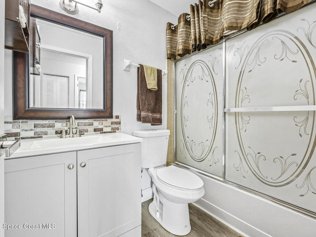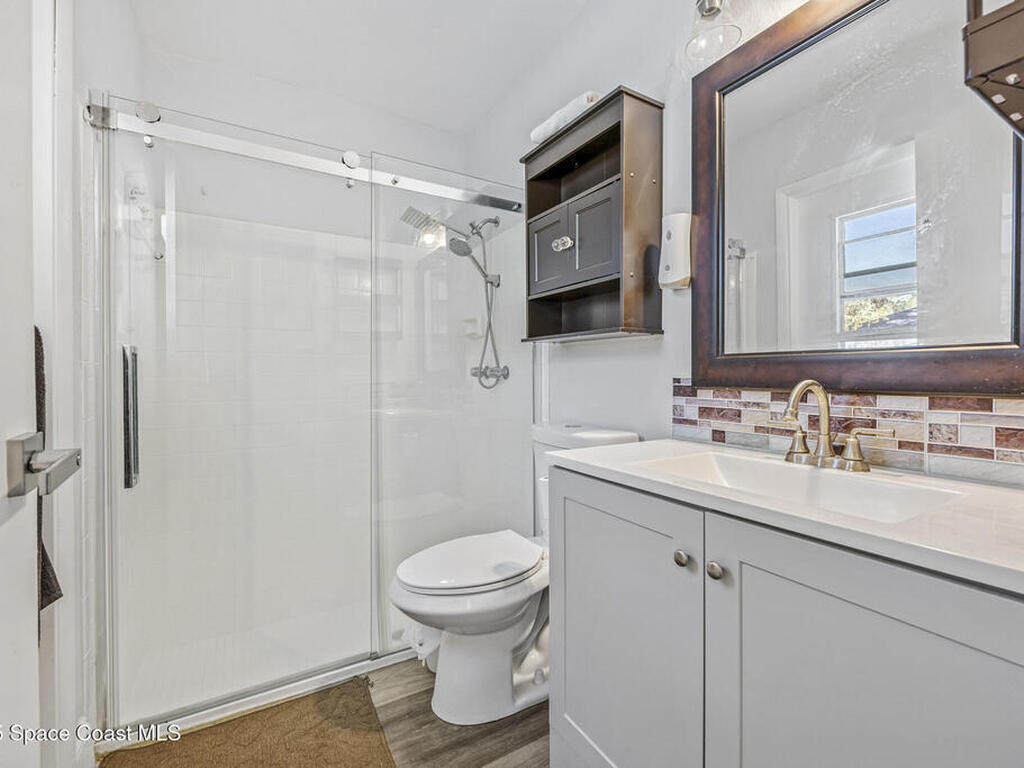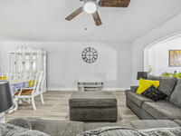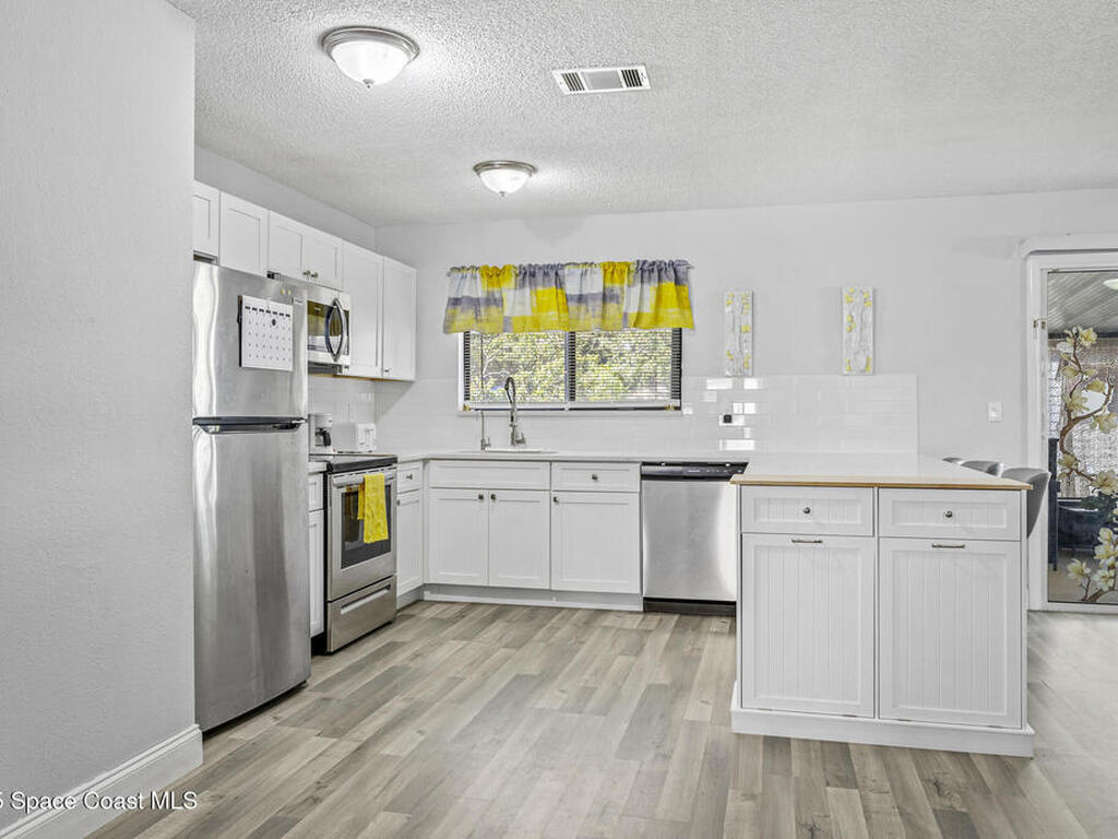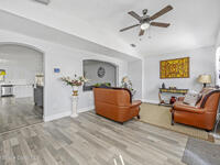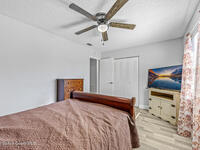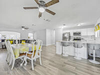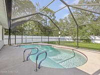 Beautiful home packed w/ upgrades and a newly replaced roof (10/2024)! Inside, enjoy vinyl flooring, modern fixtures, and a versatile bonus room. The kitchen features quartz countertops, soft-close shaker cabinets, subway tile backsplash, and stainless steel Frigidaire appliances (2022). Both bathrooms have updated vanities and fixtures. Additional features include a washer/dryer, water treatment system (2022), security system, and solar panels (2022). Outside, relax by the screened pool and covered lanai surrounded by manicured landscaping and a white vinyl fence (2022). Hurricane shutters, a storage shed, and a replaced pool pump (2023) add even more value. Located on a quiet street with no HOA, close to schools, shopping, and beaches--this home offers the perfect blend of comfort, efficiency, and Florida lifestyle.