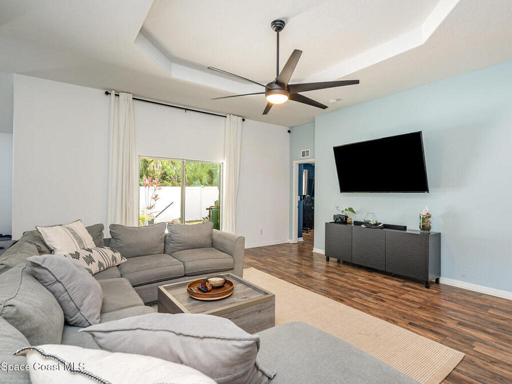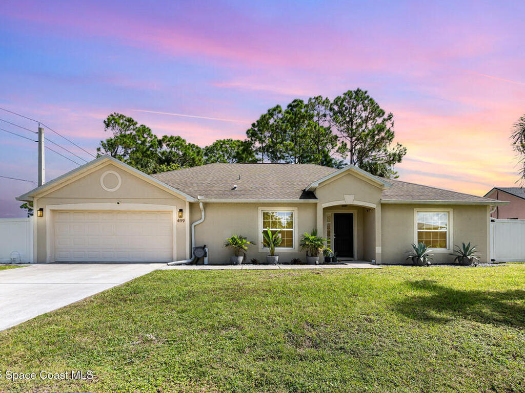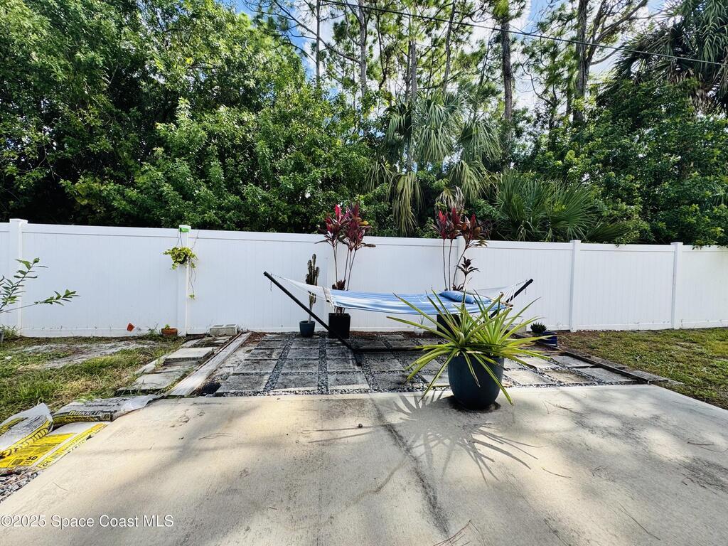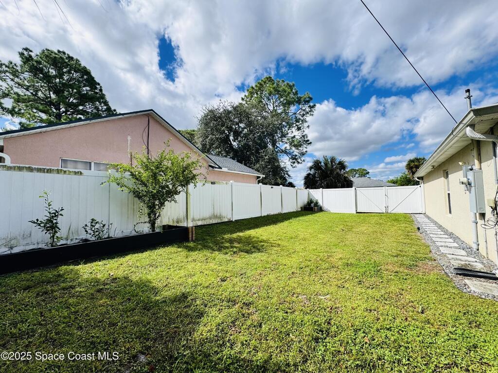 Move-In Ready! This beautifully maintained concrete block home sits on a spacious lot with City Water, Sewer, and no HOA! Offering nearly 1, 900 sq. ft. of living space, this home features high ceilings and an open-concept layout designed for modern Florida living.The spacious kitchen boasts granite countertops, ample cabinetry that flows seamlessly into the dining area and family room perfect for entertaining or everyday comfort.The split floor plan provides privacy, with a generous primary suite featuring a walk-in closet, double sinks and shower.Enjoy outdoor living on the covered patio overlooking a large backyard with plenty of room for a pool, garden, or play area. The property also features an assortment of fruit trees, including lime, lemon, cherry, avocado, papaya, coconut, banana, and soursop, creating your own tropical oasis.Conveniently located near schools, shopping, dining, and I-95, this home combines comfort, convenience, and a true Florida living.