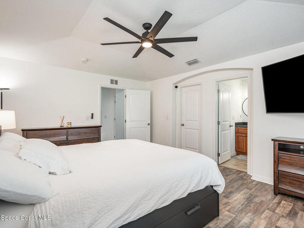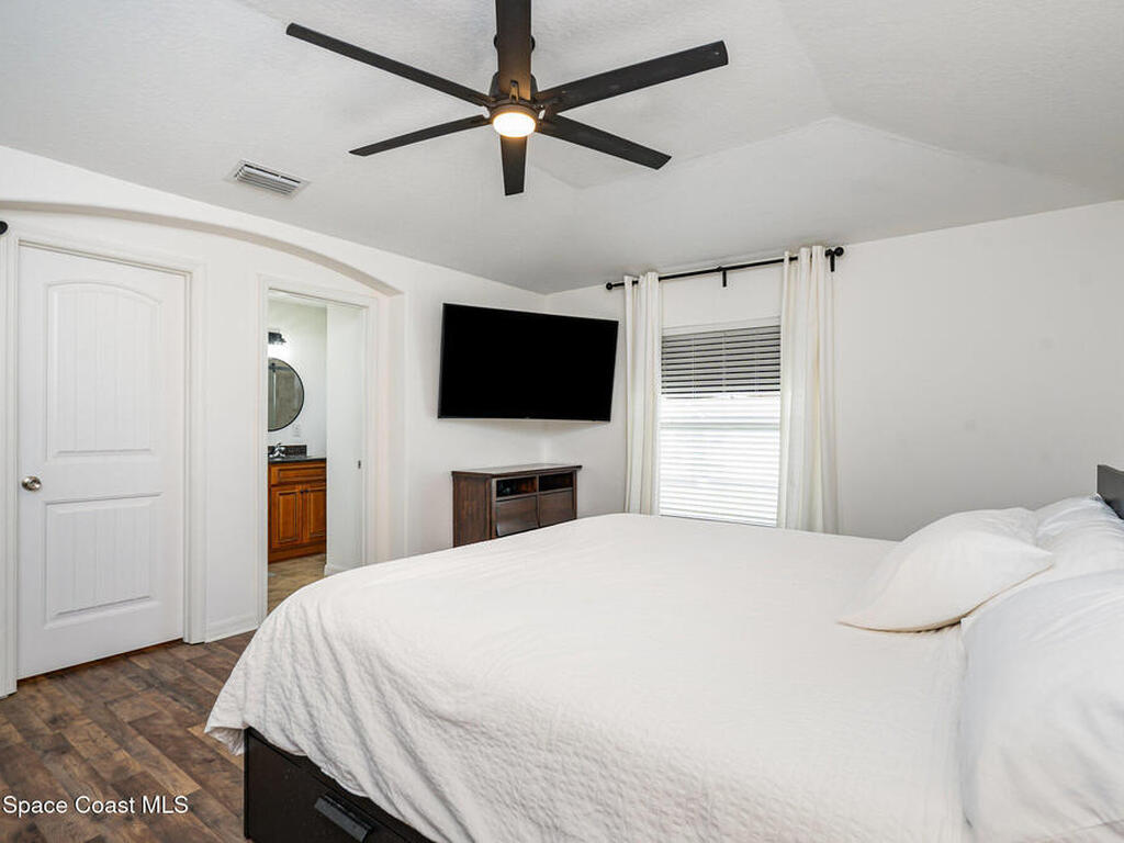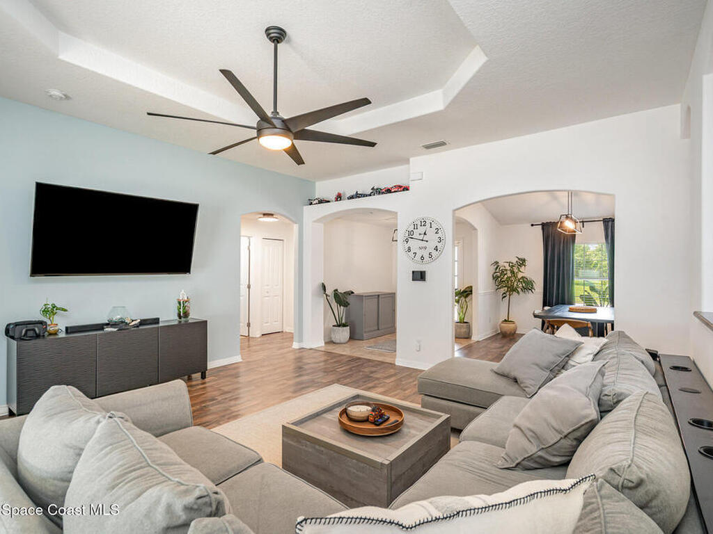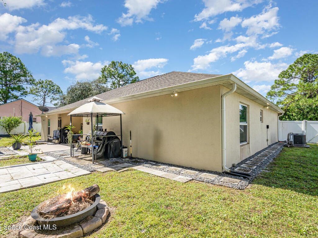 Move-In Ready! This beautifully maintained concrete block home sits on a spacious lot with City Water, Sewer, and no HOA! Offering nearly 1, 900 sq. ft. of living space, this home features high ceilings and an open-concept layout designed for modern Florida living.The spacious kitchen boasts granite countertops, ample cabinetry that flows seamlessly into the dining area and family room perfect for entertaining or everyday comfort.The split floor plan provides privacy, with a generous primary suite featuring a walk-in closet, double sinks and shower.Enjoy outdoor living on the covered patio overlooking a large backyard with plenty of room for a pool, garden, or play area. The property also features an assortment of fruit trees, including lime, lemon, cherry, avocado, papaya, coconut, banana, and soursop, creating your own tropical oasis.Conveniently located near schools, shopping, dining, and I-95, this home combines comfort, convenience, and a true Florida living.