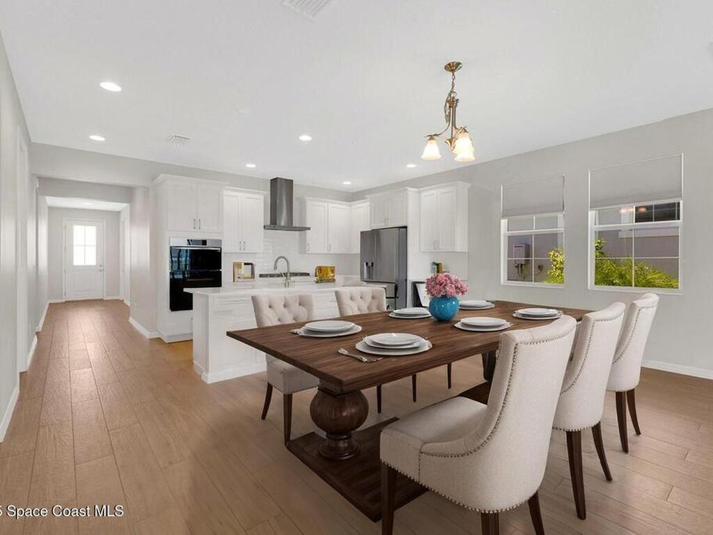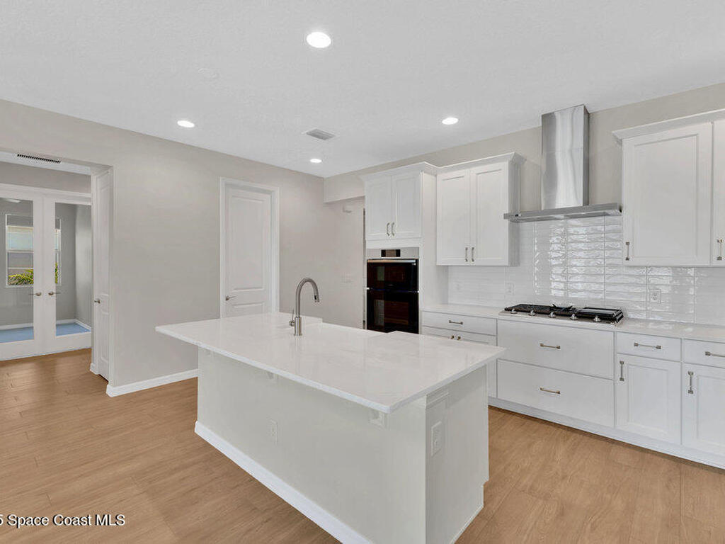 Experience luxurious Viera living in this stunning 4-bedroom pool home, complete with a versatile flex room. Enjoy spectacular sunsets from your private backyard oasis, featuring a sparkling pool perfect for relaxing or entertaining. The gourmet kitchen is a chef's dream, showcasing premium finishes, a gas stove, stainless steel appliances, and beautiful quartz countertops. Elegant upgraded lighting and designer hardware add a modern touch throughout. Enjoy peace of mind with impact-resistant windows, and a low-maintenance lifestyle with lawn care included in the HOA fee. An open-concept design with natural light fills the spacious living areas. The large master suite offers serene lake views, a huge walk-in closet, and a double-sink walk-in shower. Outside, a beautifully landscaped yard enhances the curb appeal. Located near top-rated schools, premier shopping, and dining, this home is a gem in one of Viera's most sought-after communities.