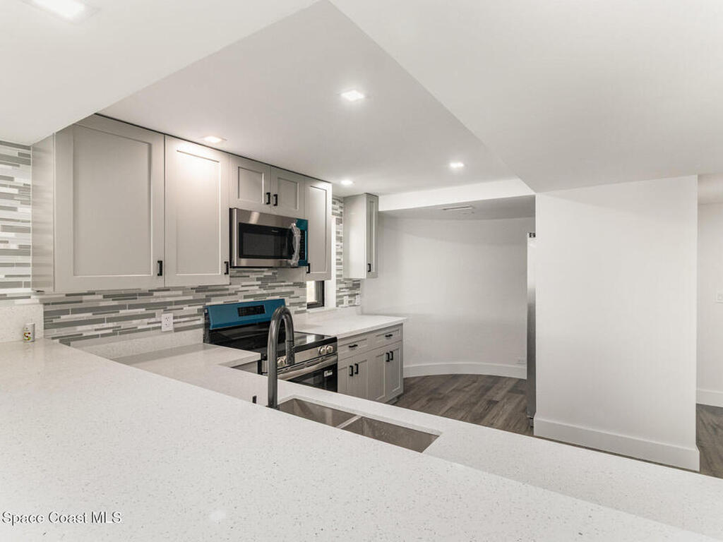 Welcome to your coastal retreat, this beautifully remodeled end-unit condo offers the perfect blend of modern style and beachfront relaxation. Bright and spacious, the open-concept layout flows effortlessly from the brand-new kitchen, featuring solid-surface countertops, new appliances, and a coastal-chic backsplash, to the open living area and oversized balcony with stunning ocean views.Wake up to sea breezes and enjoy your morning coffee at the breakfast bar or outside with the sound of the waves. Both bedrooms are generously sized with more than enough storage, and the updated bathrooms feature sleek, contemporary finishes. An in-unit washer and dryer add everyday convenience.Located just steps from everything downtown Cocoa Beach has to offer, local dining, shops, live music, the iconic pier, and, of course, miles of sandy shoreline, you're perfectly positioned to enjoy the best of beachside living.