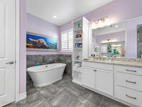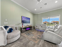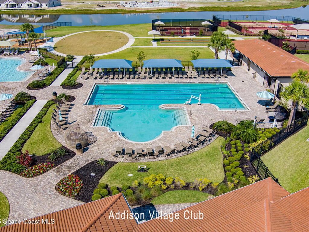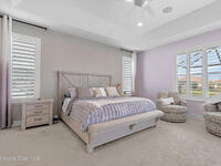 This lakefront pool home is in the heart of Viera, and once the model for the neighborhood. Located behind the gates of the Stonecrest subdivision which is less than 1 mile from I-95 and in the heart of and in Brevard's premier school district. This gorgeous 5 bedroom, 4 bathroom lake front home is LOADED with extras. This spacious gourmet kitchen has a gas stove. IMPACT WINDOWS throughout home. The garage is air conditioned with a separate workspace/office (the living sq ft doesn't include the garage). The outdoor living has a large porch & screened pool with tranquil waterfront views. The floor plan is well versed with office/den in the front of home plus a HUGE bonus room bath and the 5th bedroom on the second level. This golf cart friendly subdivision has a community pool, exquisite clubhouse, multiple pickleball and tennis courts and even a shaded playground with many walking paths to venture along. Home is turnkey, and ready for a new family for immediate occupancy.