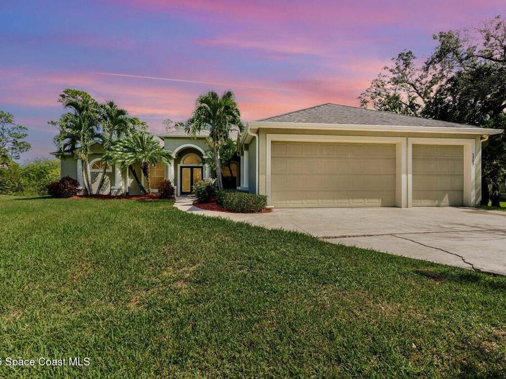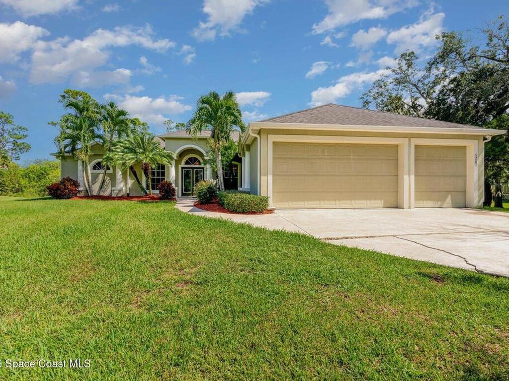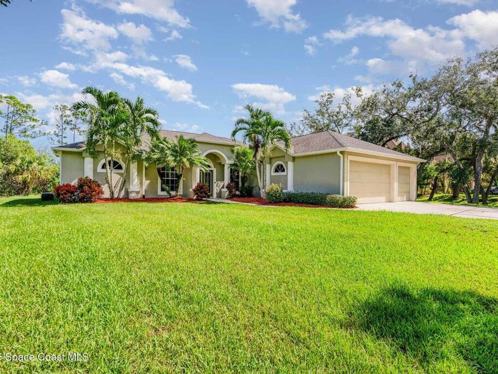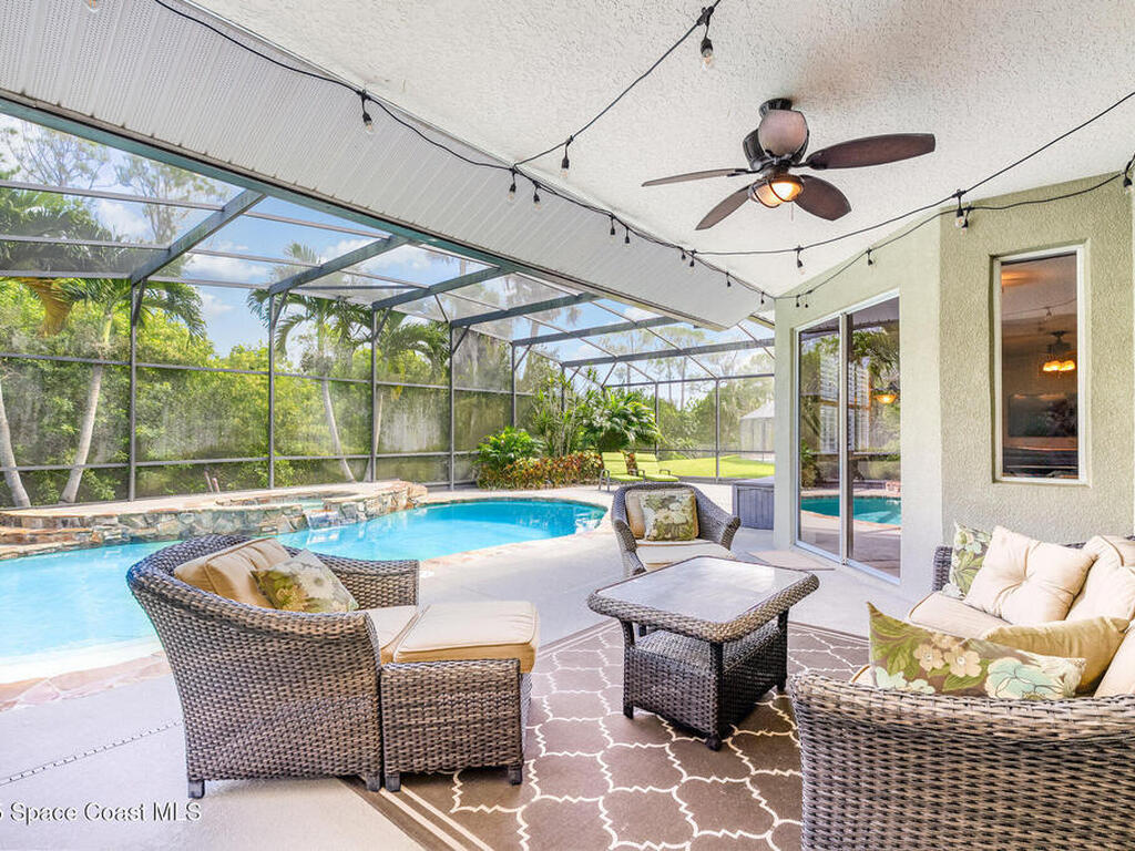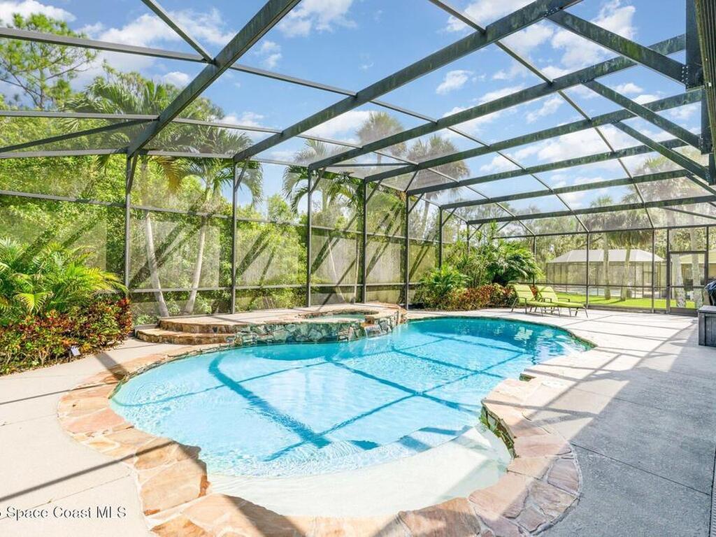 WELCOME HOME to your own private piece of FLORIDA paradise! Nestled in the lovely OTTER TRACE community of Merritt Island, this beautifully maintained 4 BED / 3 BTH Residence sits on a 1/2-acre lot surrounded by lush trees & natural serenity. Designed for effortless indoor-outdoor living, the home features a sparkling pool, tropical landscaping and multiple outdoor areas - perfect for entertaining OR relaxing in complete privacy. Inside, you'll find a bright, open floor plan with soaring ceilings, generous living spaces and a chef-inspired kitchen - ideal for gatherings both large & small. The thoughtful split-bedroom layout offers comfort & flexibility for family and guests, while the spacious primary suite provides peaceful views of the pool and greenery beyond. Enjoy peace of mind with a BRAND NEW ROOF -- and the added bonus of CHOOSING your own shingle color before installation! Conveniently located near Blue Origin, Port Canaveral, A+ Schools, Orlando and our Space Coast Beaches!