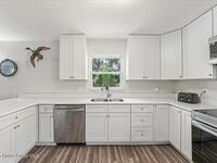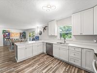 This beautifully updated four-bedroom, two-bath home offers the perfect blend of mid-century charm and modern comfort. Step inside to find an open, airy layout filled with natural light and stylish updates throughout. The heart of the home is the remodeled kitchen--featuring sleek two tone cabinetry, quartz countertops, a coffee bar, and an oversized island that opens to the family room, creating a true gathering space for family and friends. Both bathrooms have been tastefully renovated with thoughtful touches like built-in shower niches and modern light fixtures. Enjoy peace of mind with major upgrades already done for you: a brand-new roof, new AC system, hurricane-rated low-E windows, and a newer electrical panel. Every detail has been refreshed, from six-panel doors and baseboards to smooth wall textures and LED recessed lighting that brightens every corner. Nestled in a desirable neighborhood and complete with a two-car garage. Excellent location in the heart of Titusville.