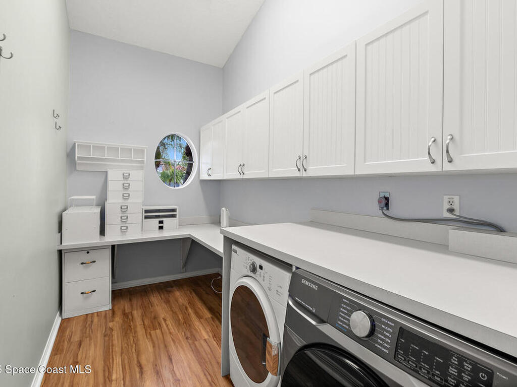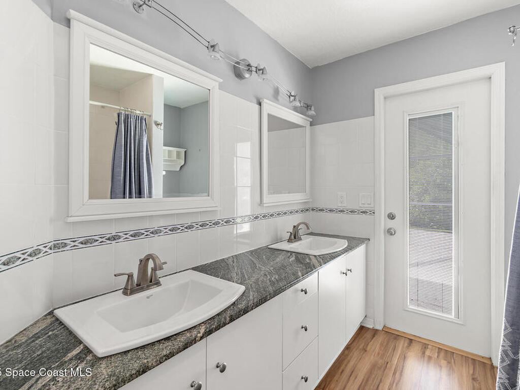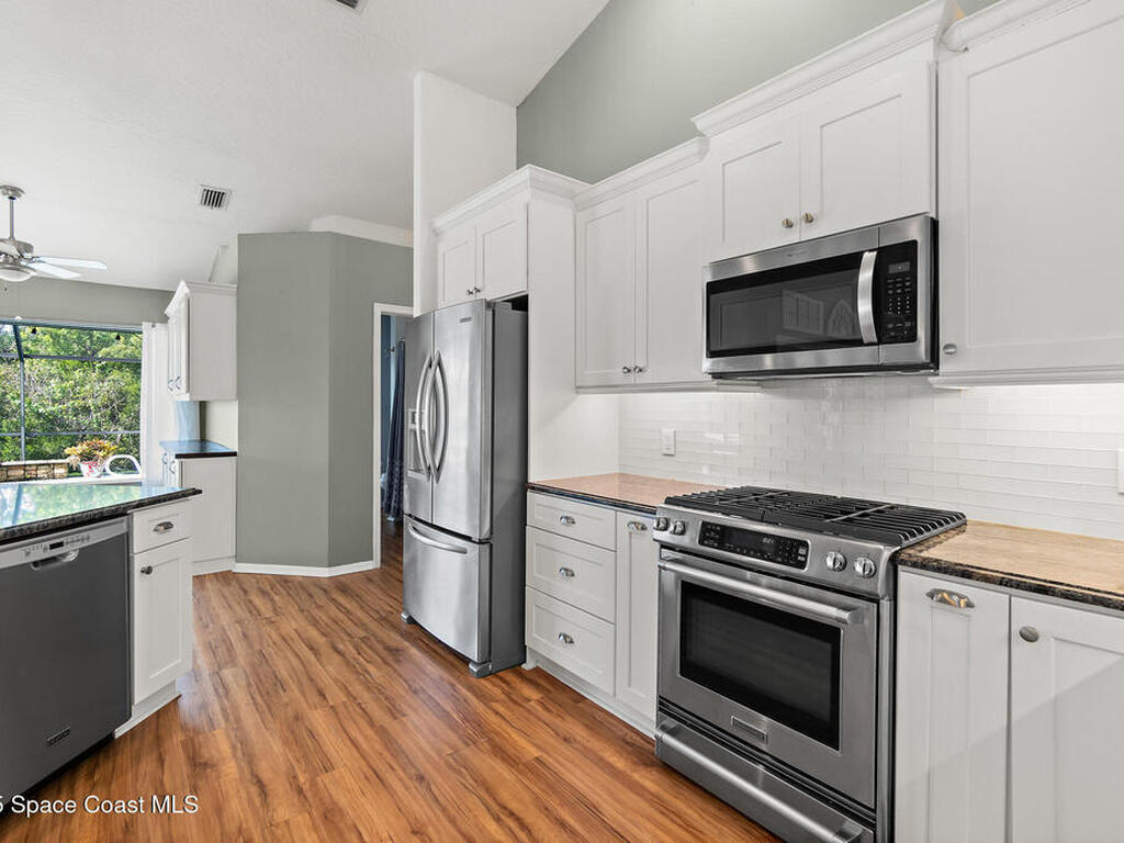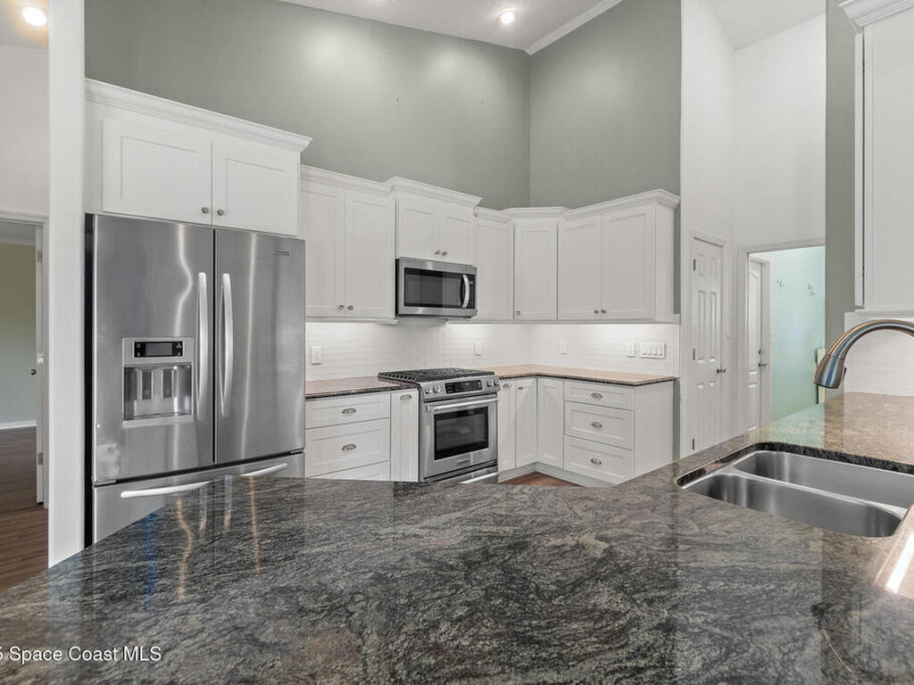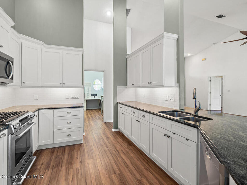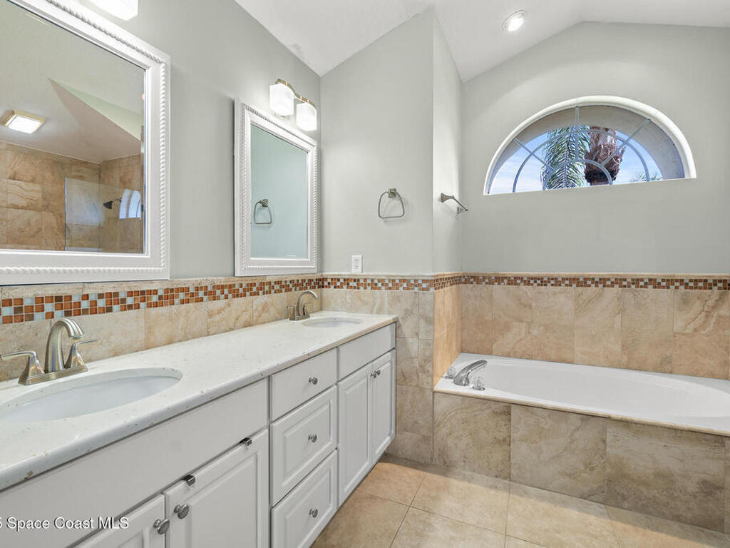NEW hot water heater on the way & newly resurfaced POOL at this beautiful Suntree home nestled beside a protected preserve. You will love the peaceful views & lush yard that flow seamlessly to your sparkling pool & covered lanai--ideal for year-round outdoor living. Step inside to an updated kitchen featuring granite countertops, classic white shaker cabinets, a subway tile backsplash & stainless appliances. The spacious laundry room, just off the kitchen, provides extra storage, a folding counter, and a built-in desk for convenience. The guest bath impresses with double granite sinks & direct access to the pool. Retreat to the expansive primary suite, complete with a soaking tub, tiled walk-in shower, dual closets (including a spacious walk-in) & direct lanai access. With a new 2024 roof, you'll enjoy lasting peace of mind. Located in the popular Suntree area--close to parks, shops, restaurants, golf & just 10 minutes from Melbourne's pristine beaches--this home is ready for you!