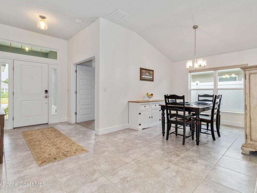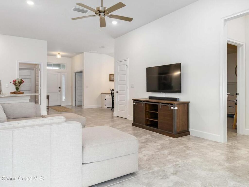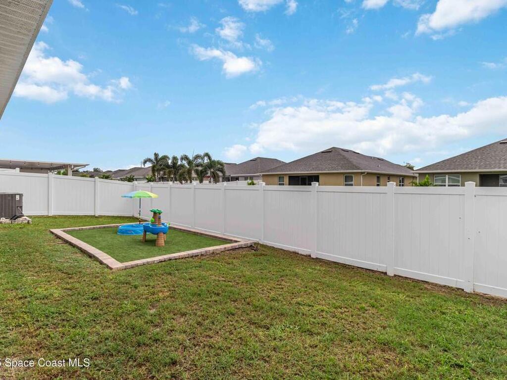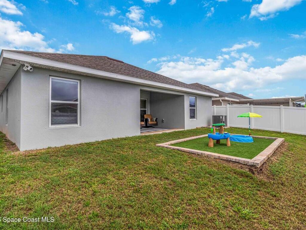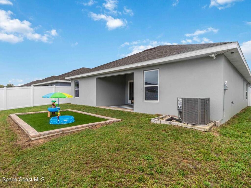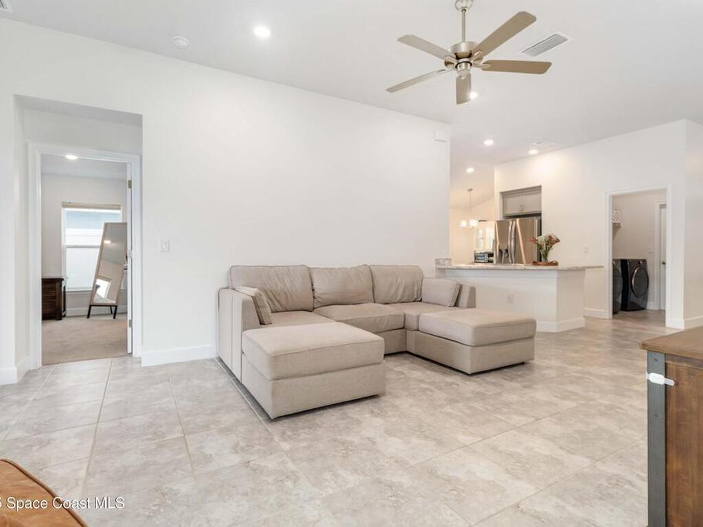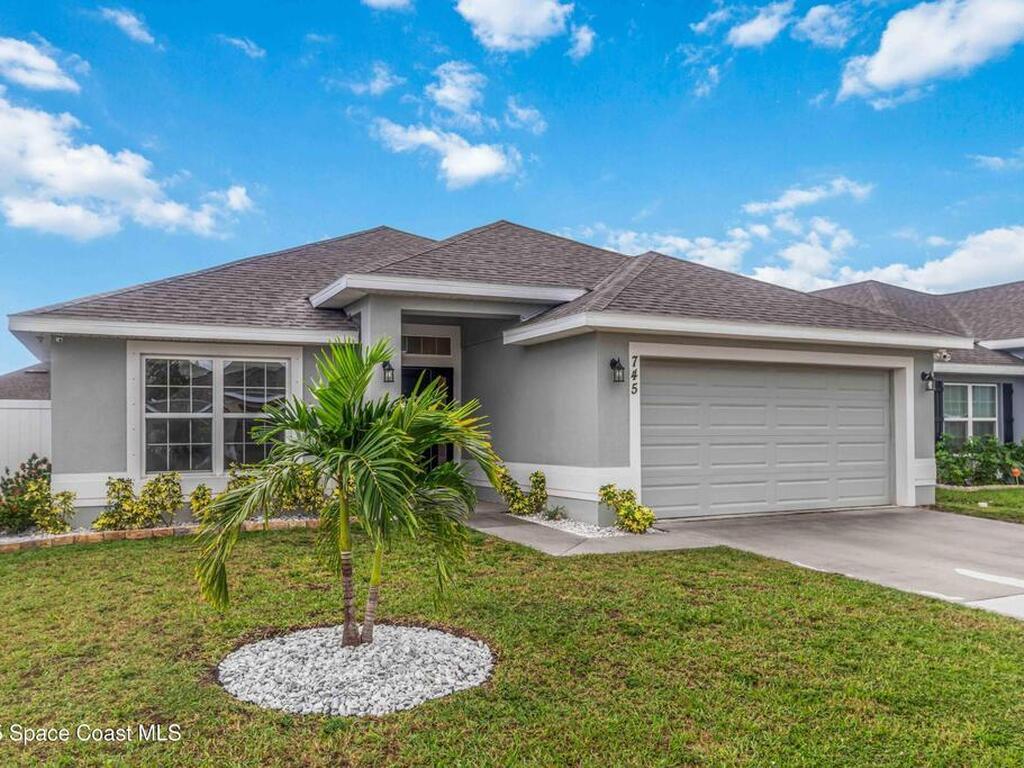 Why wait to build when you can enjoy this like-new, move-in ready home today? Every detail has been carefully maintained, offering the perfect blend of modern design & everyday comfort. The bright, open floor plan creates an inviting atmosphere, ideal for both entertaining & easy daily living. A stunning kitchen with modern finishes & stainless appliances opens to the spacious living room, while generously sized bedrooms provide room to unwind. Owner's suite boasts a large walk-in closet, and private bath with double sinks & walk-in shower. Guest bedrooms are adorned with board & batten & shiplap walls for that custom feel. Indoor laundry room with washer and dryer included. Irrigation system. Hurricane shutters for peace of mind. Backyard features a new paver outlined, turf play area. 2 car garage. Low HOA fee! Conveniently located near shopping, dining, less than 10 min to EFSC, 20 min to KSC, NASA, SpaceX, & Blue Origin, 20 min to beach, 40 min to Orlando airport & area attractions